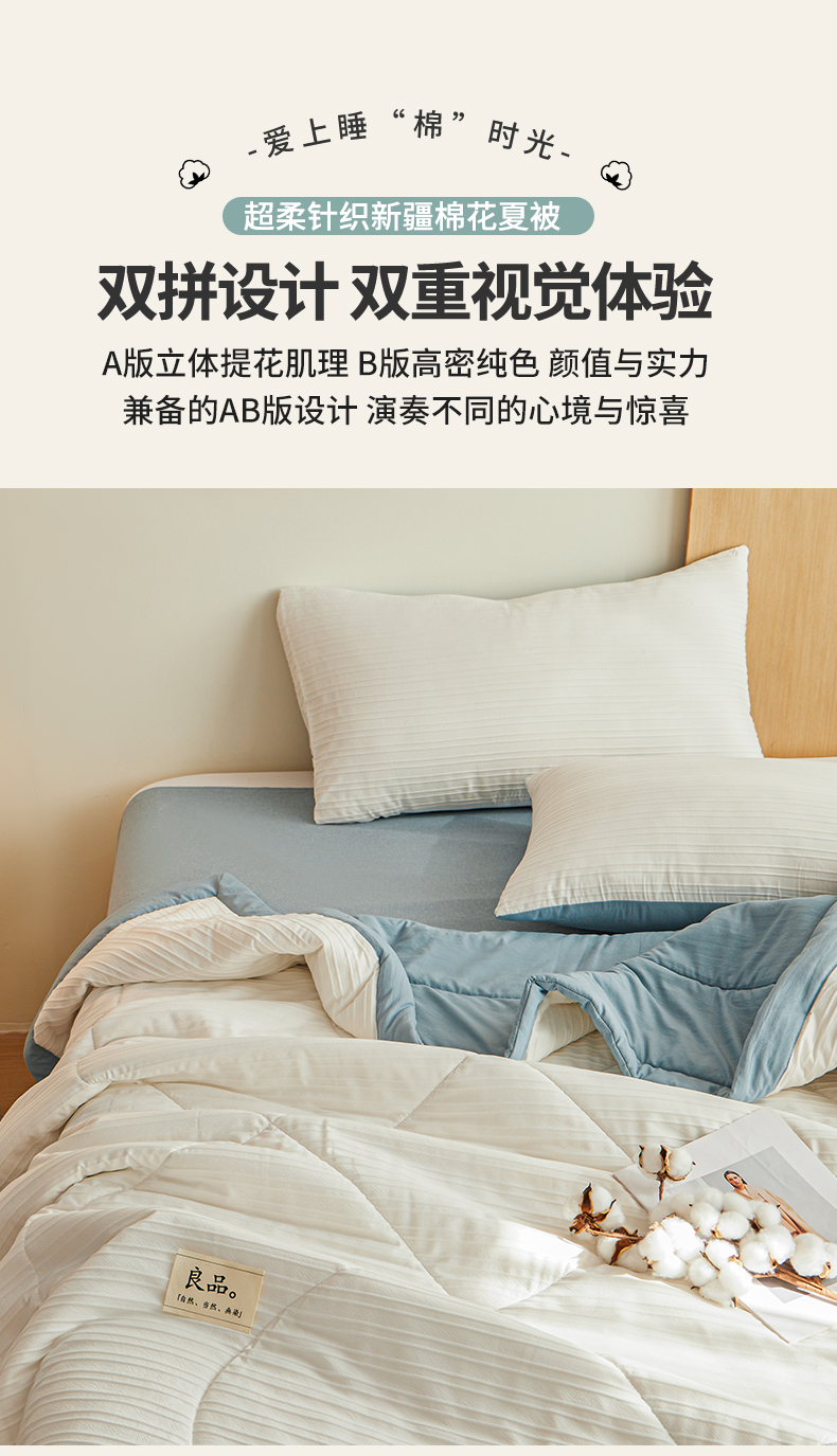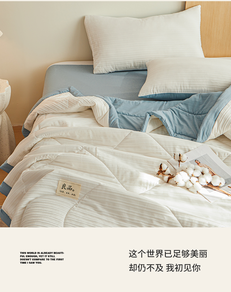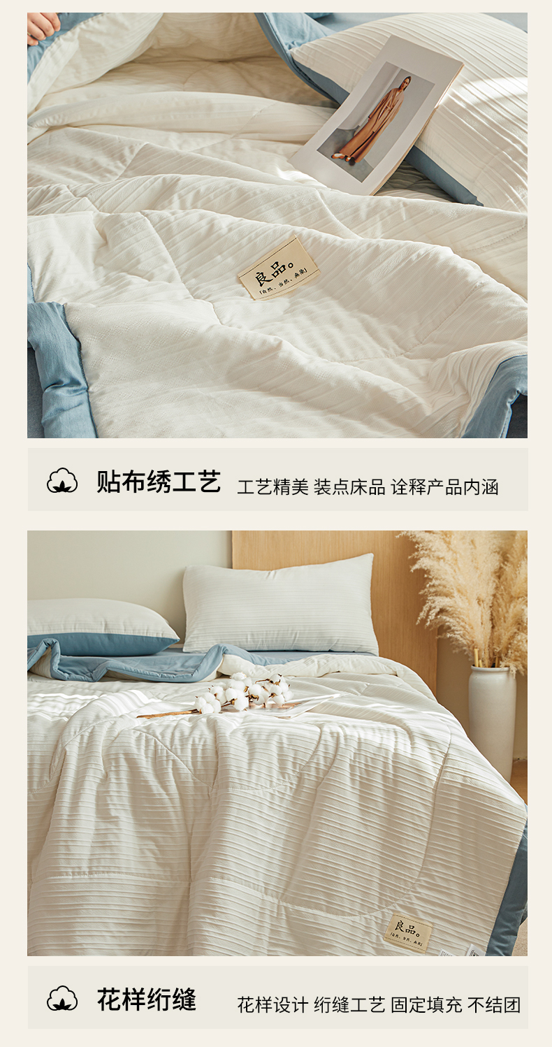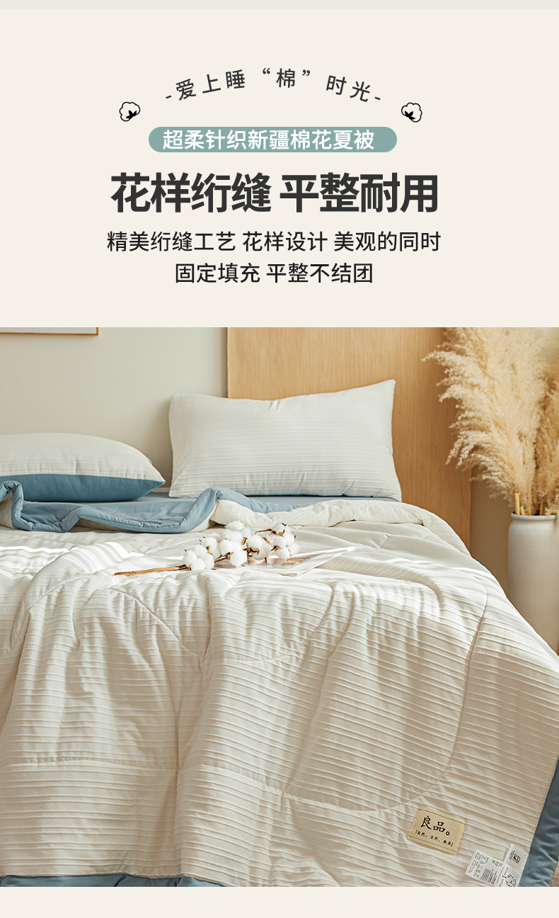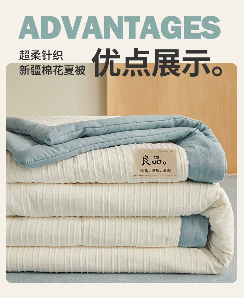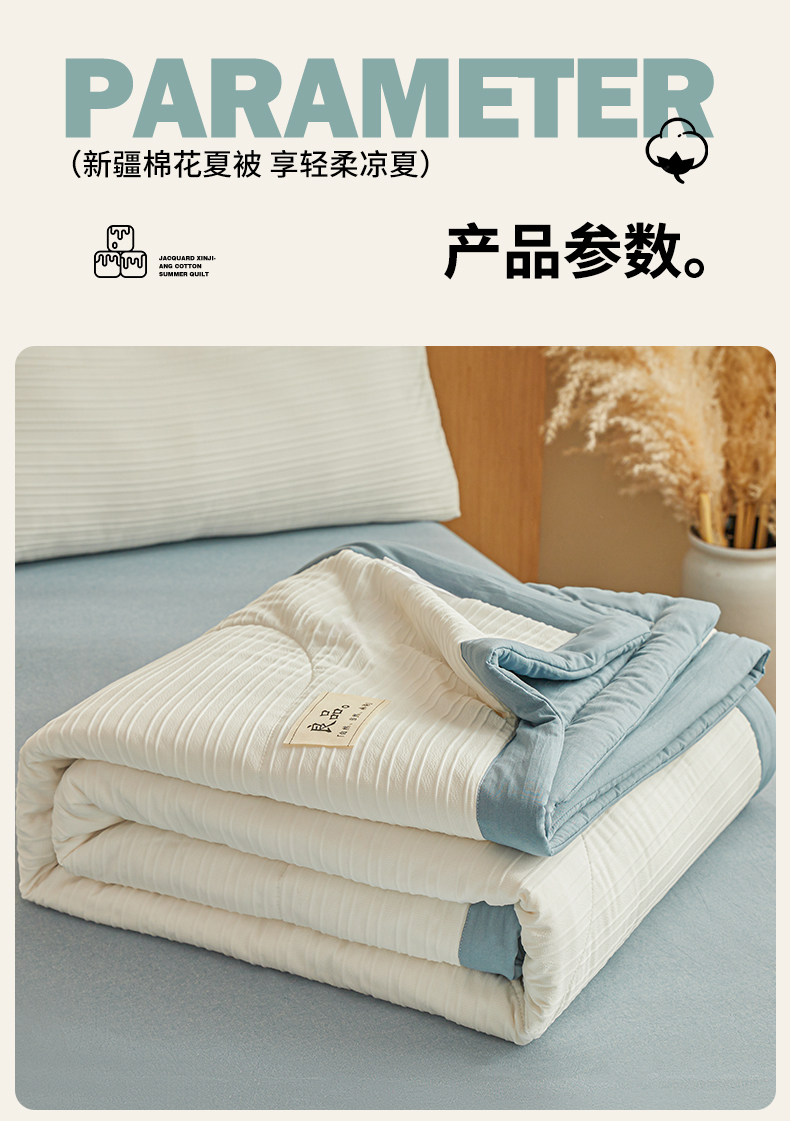 商品名称:尊妙被业 2026新款良品条白100%新疆棉花夏被 良品条白+蓝