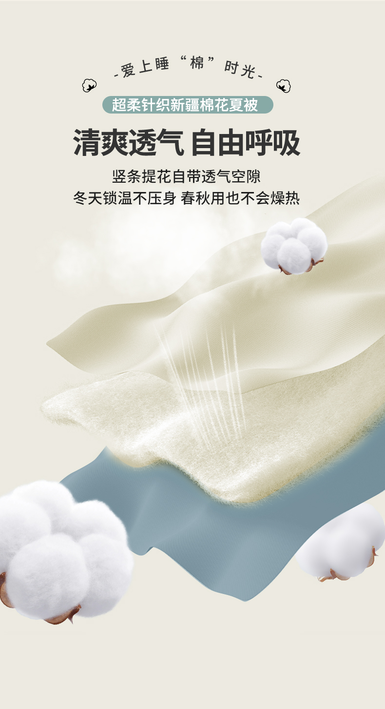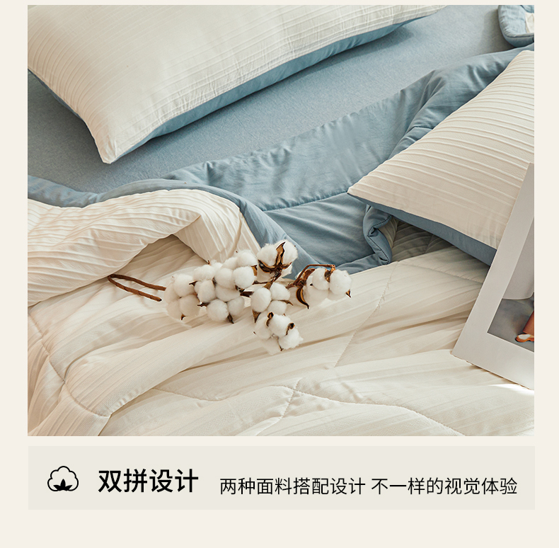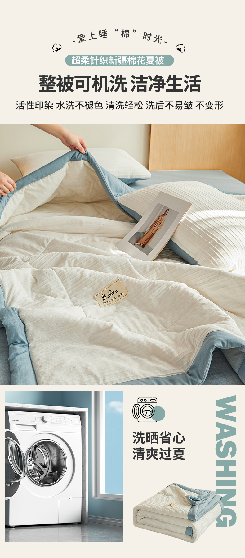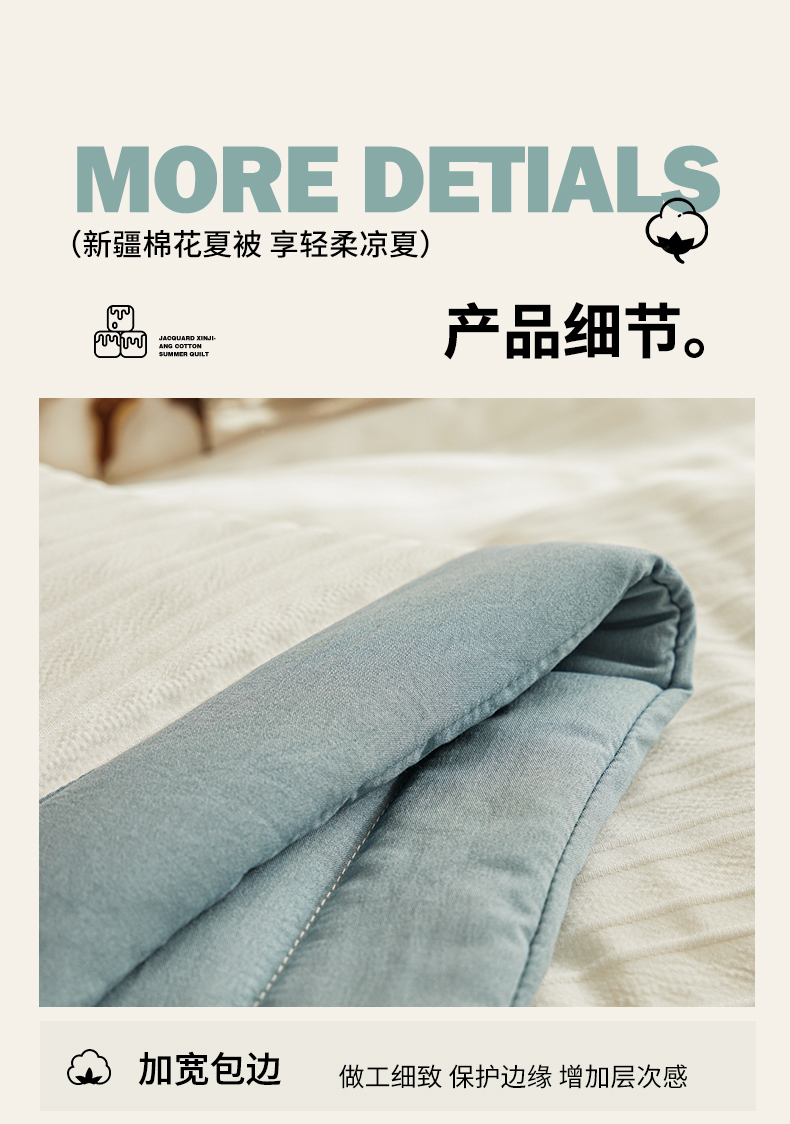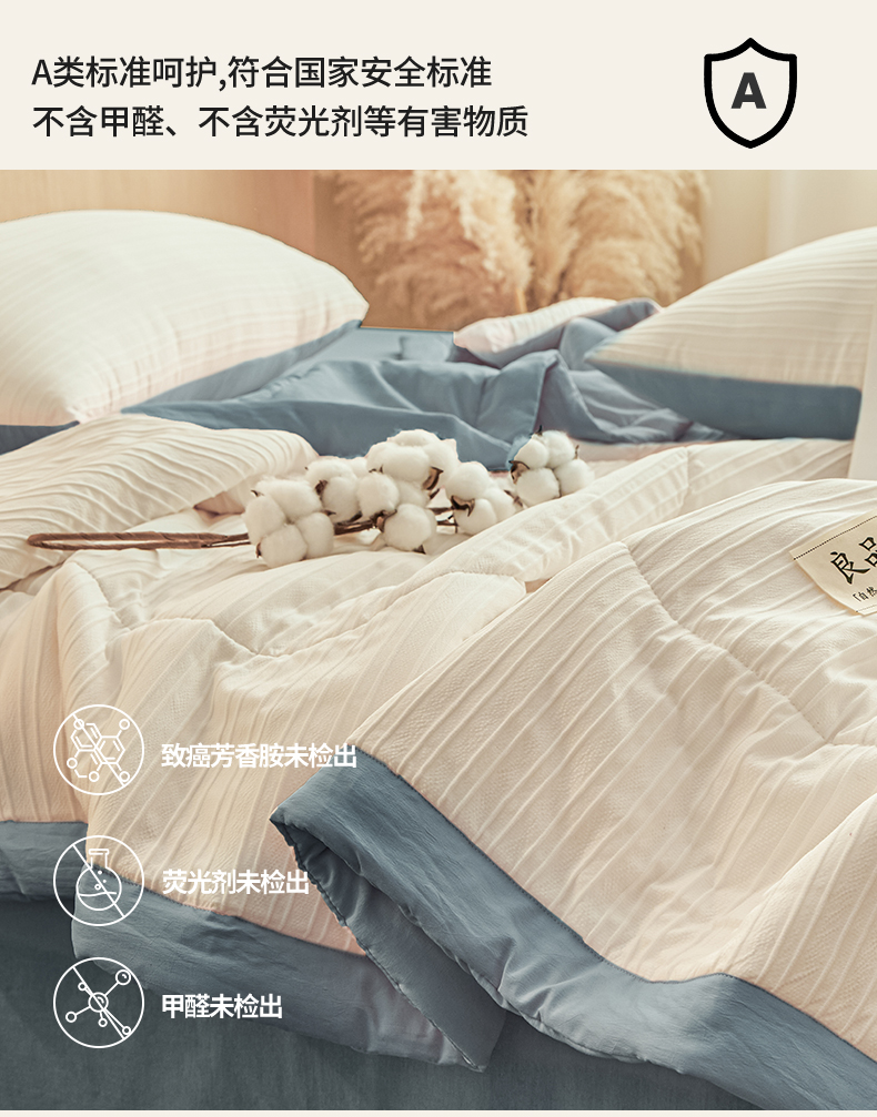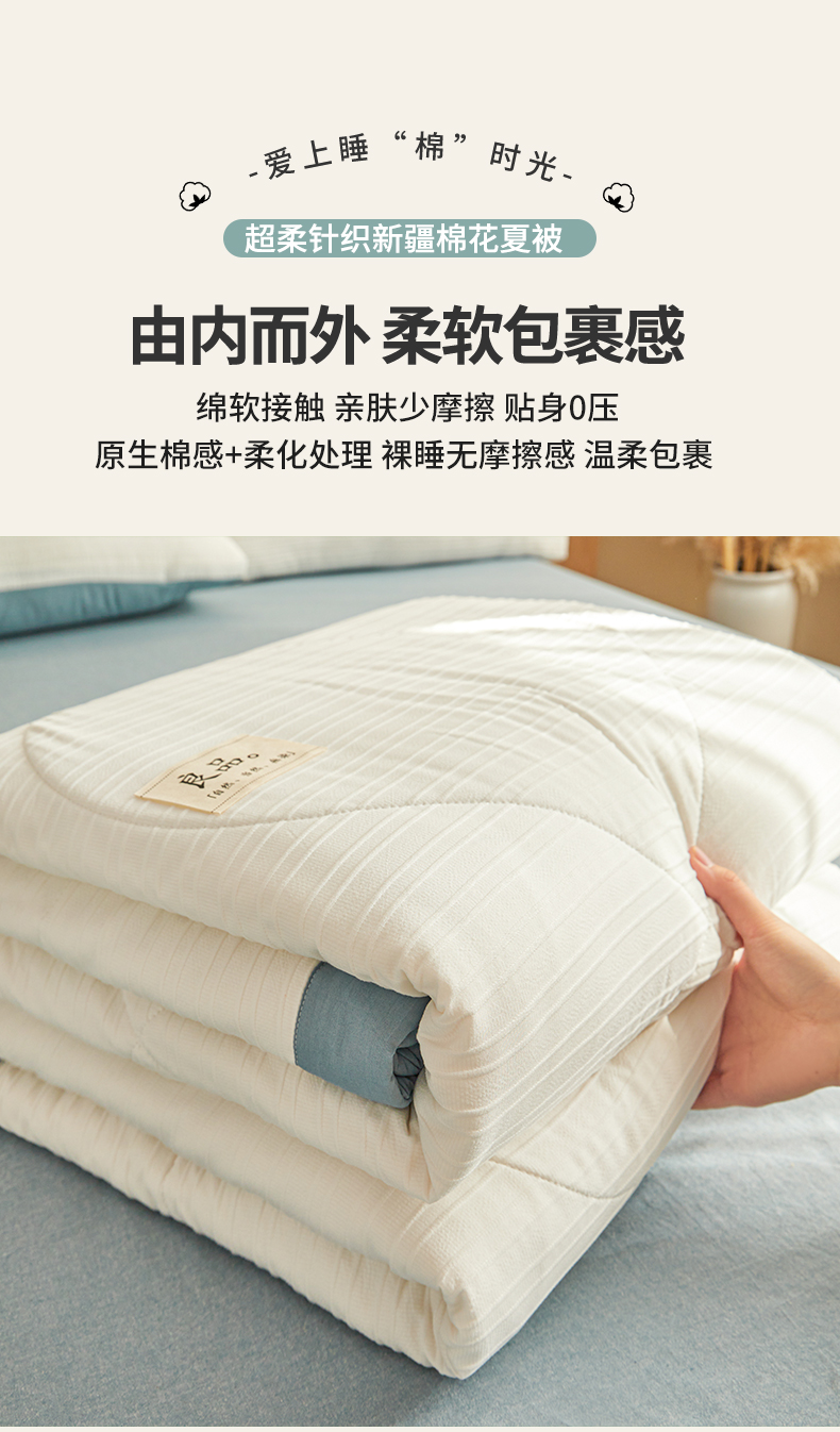 商品名称:尊妙被业 2026新款良品条白100%新疆棉花夏被 良品条白+蓝
