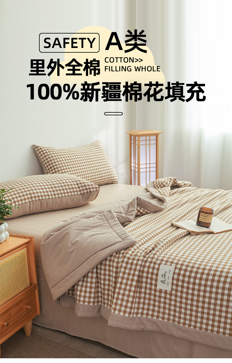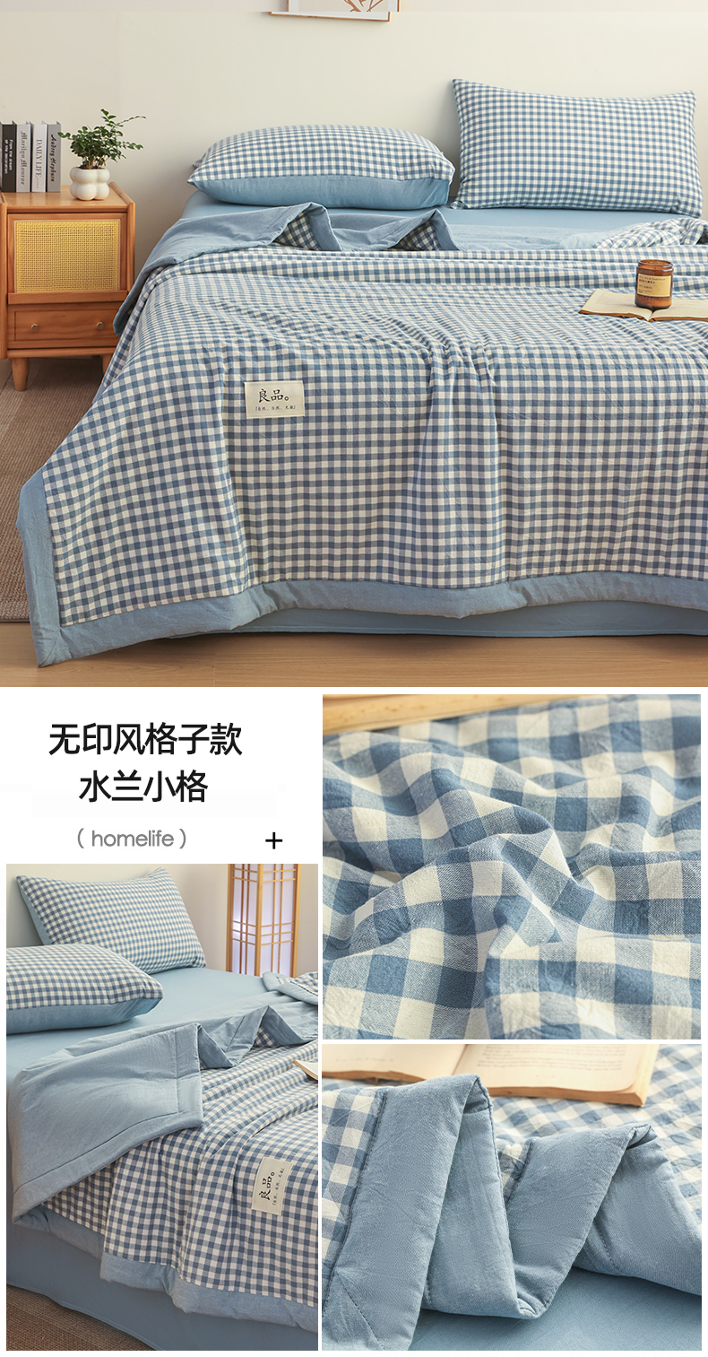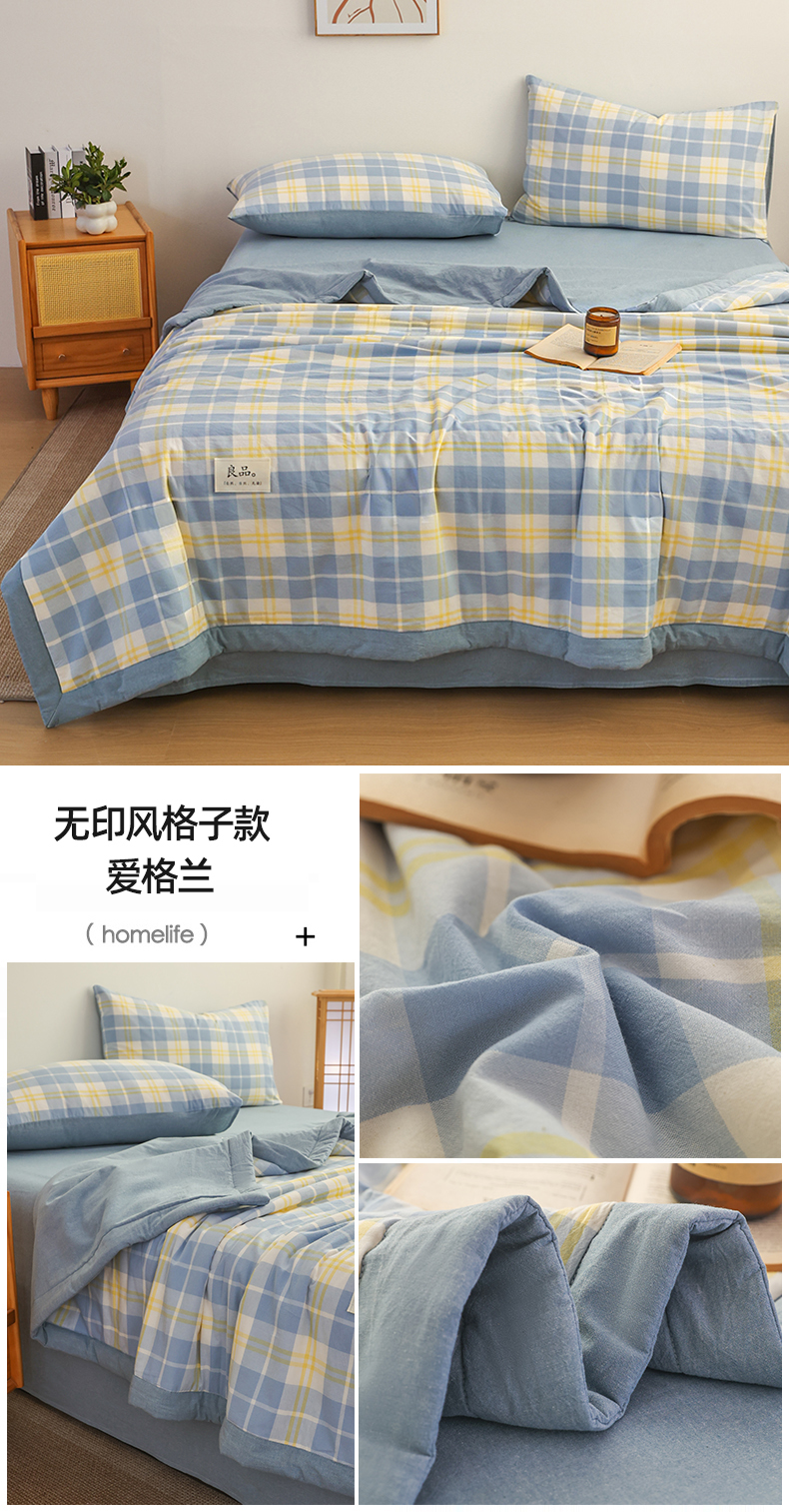 (总)尊妙被业 2026全棉色织水洗全棉棉花夏被 被子被芯 夏被四件套(格子款),贝拉咖,爱格,爱格兰,爱格绿,潮格白,粉小格,咖小格,蓝小格,绿小格