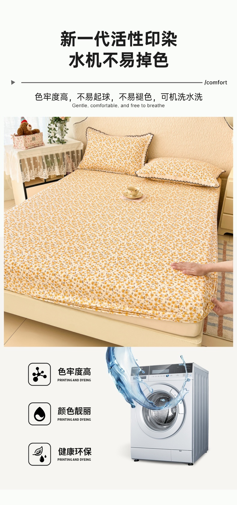 圣比熊 2026新款A类云朵棉亲肤四季款床笠席梦思床罩全包床单三件套 春日暖阳