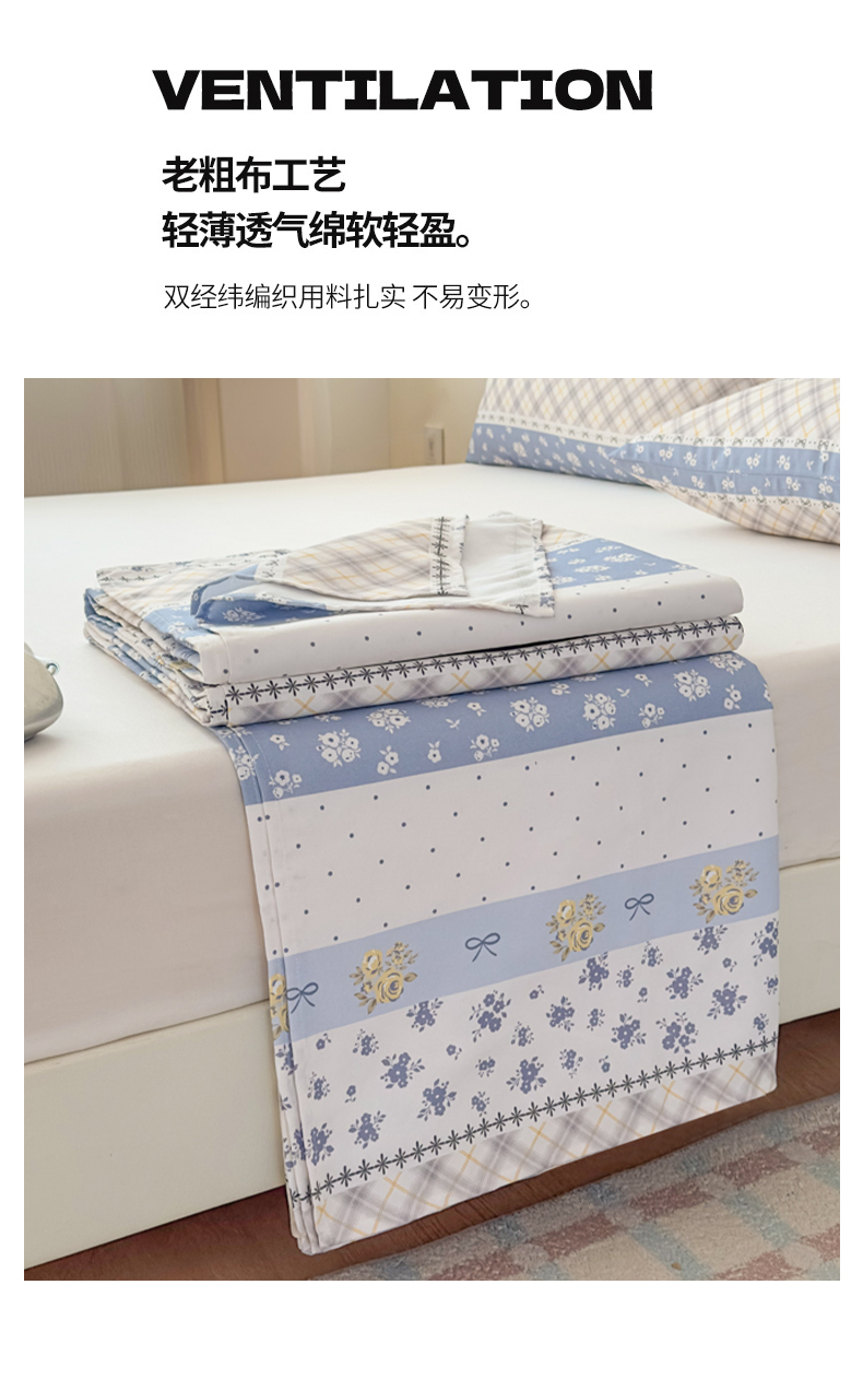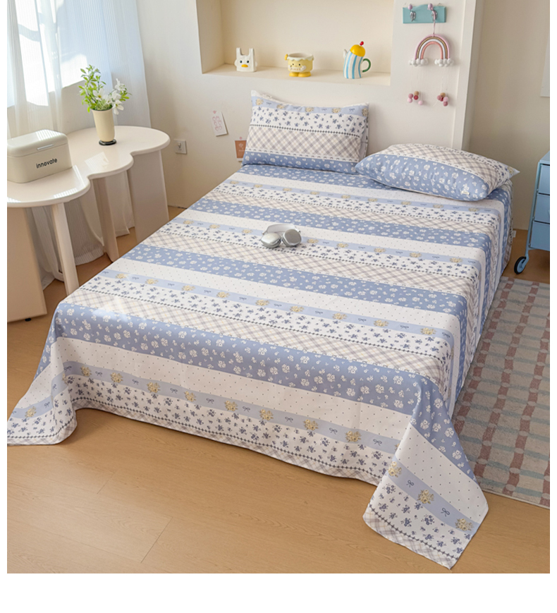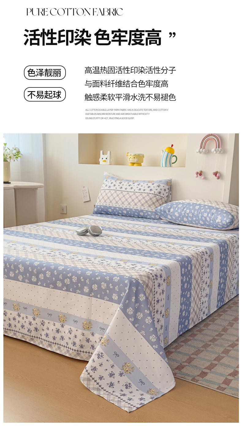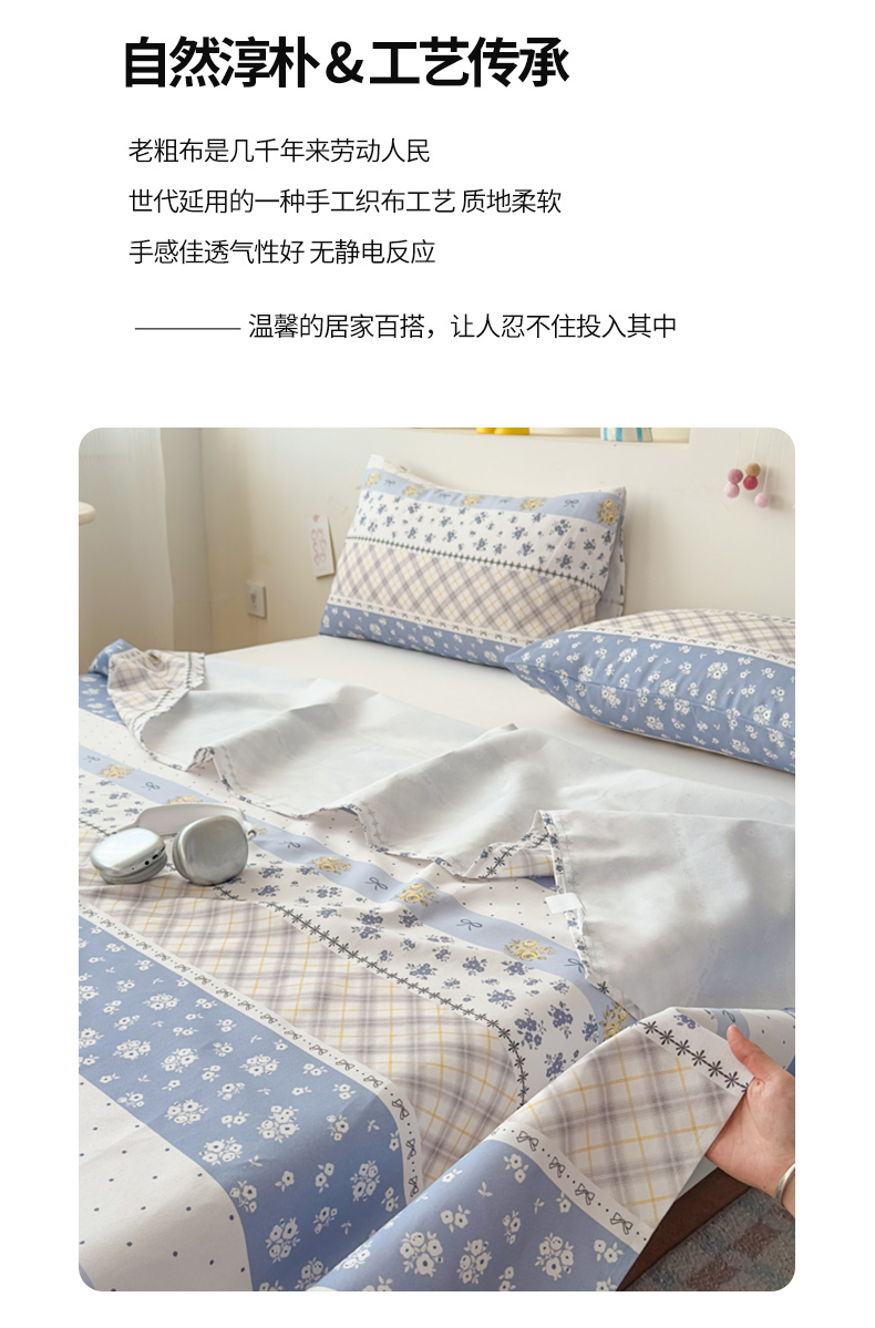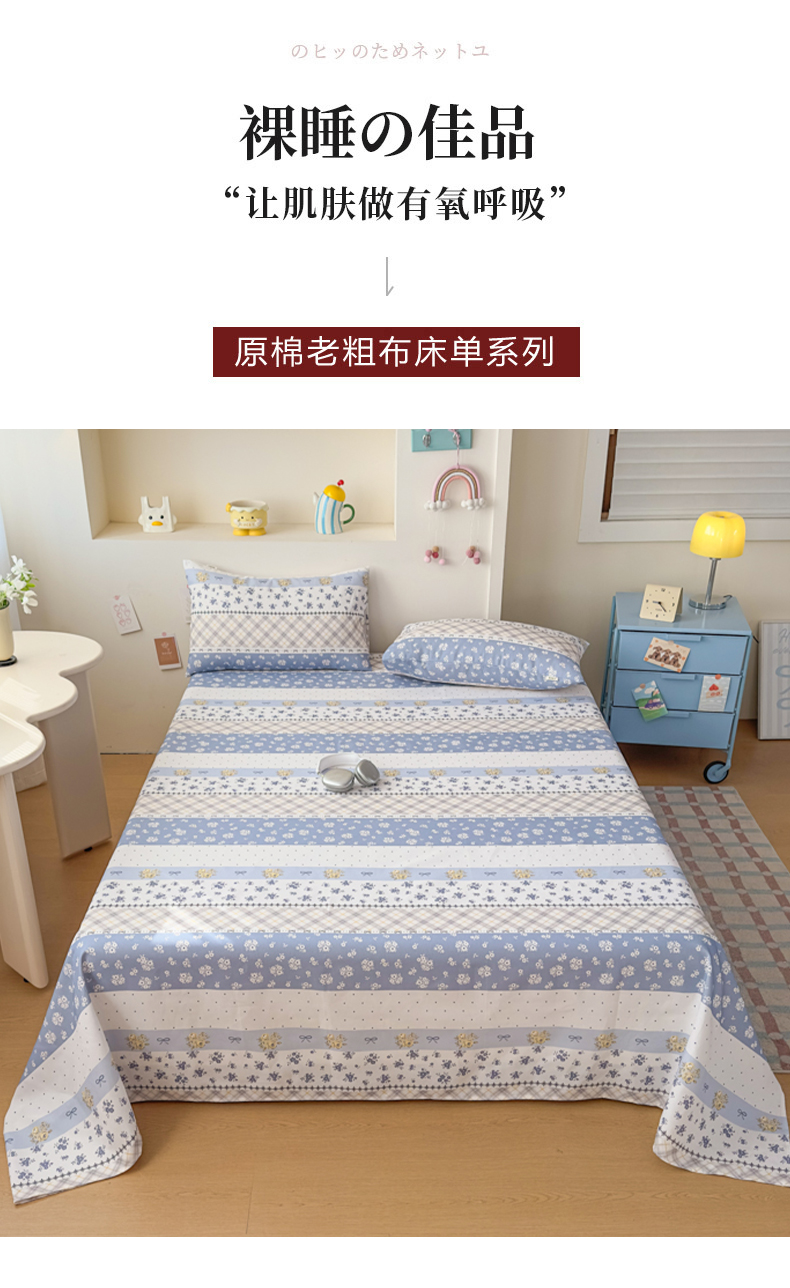 爱彼家纺 2026新款升级细沙印花老粗布床单单品床单床单单件-细沙系列四 蓝花序