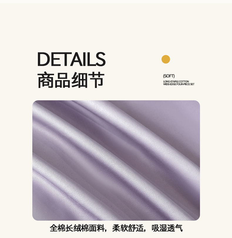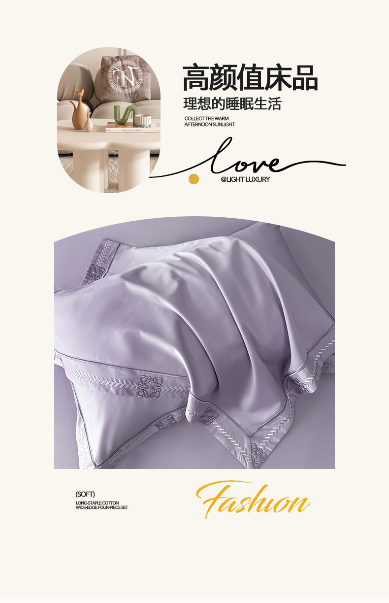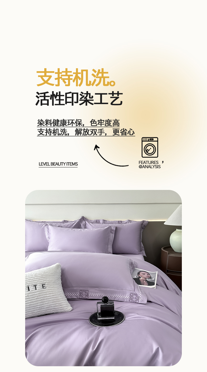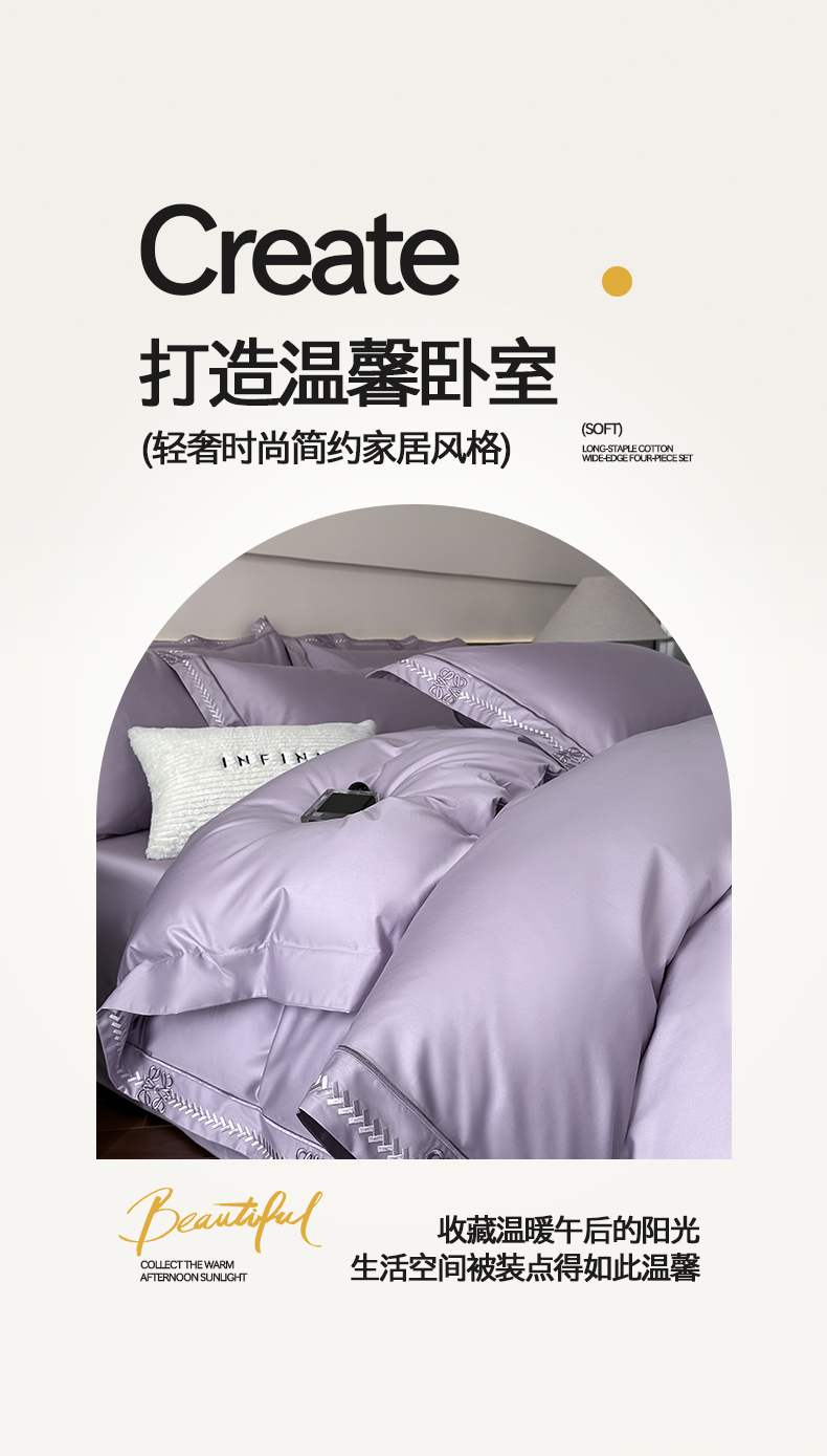 当前位置: 91家纺网 > 商品网购 > 床品套件 > 四件套 > 其它四件套 > 置顶家纺 2026春夏新款多伦多系列亲肤刺绣拼角四件套 多伦多-香芋紫