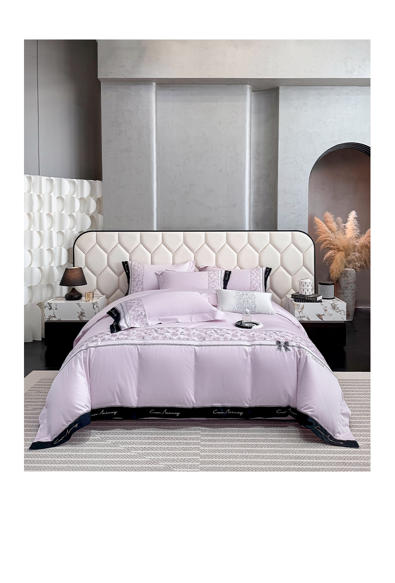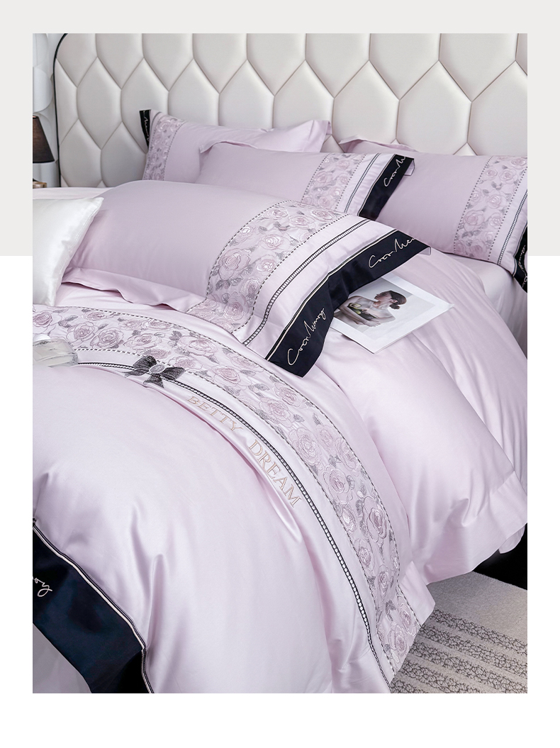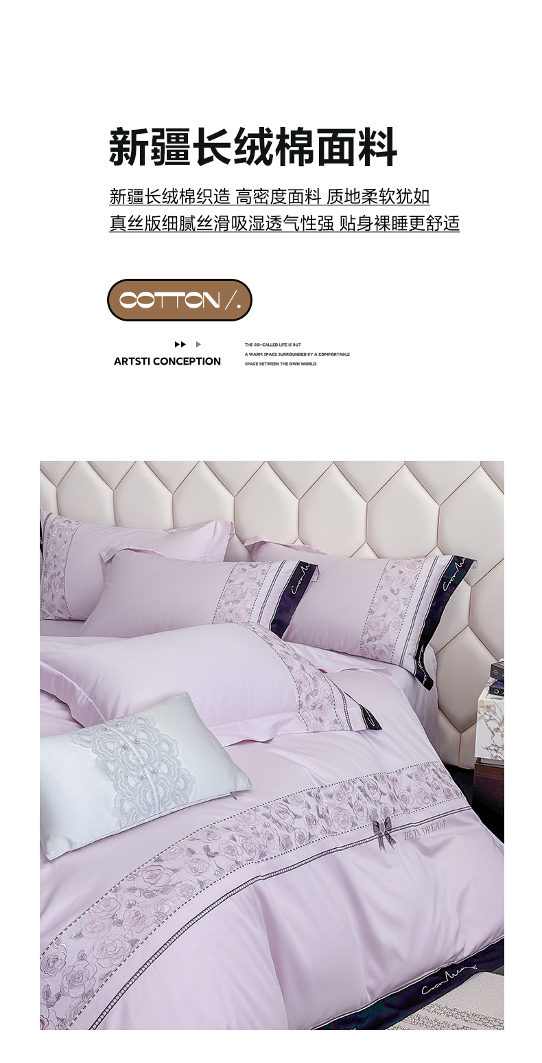 欣宜家纺 2026春夏新款60支A类新疆长绒棉刺绣全棉四件套纯棉床品套件 玛丽-香芋紫