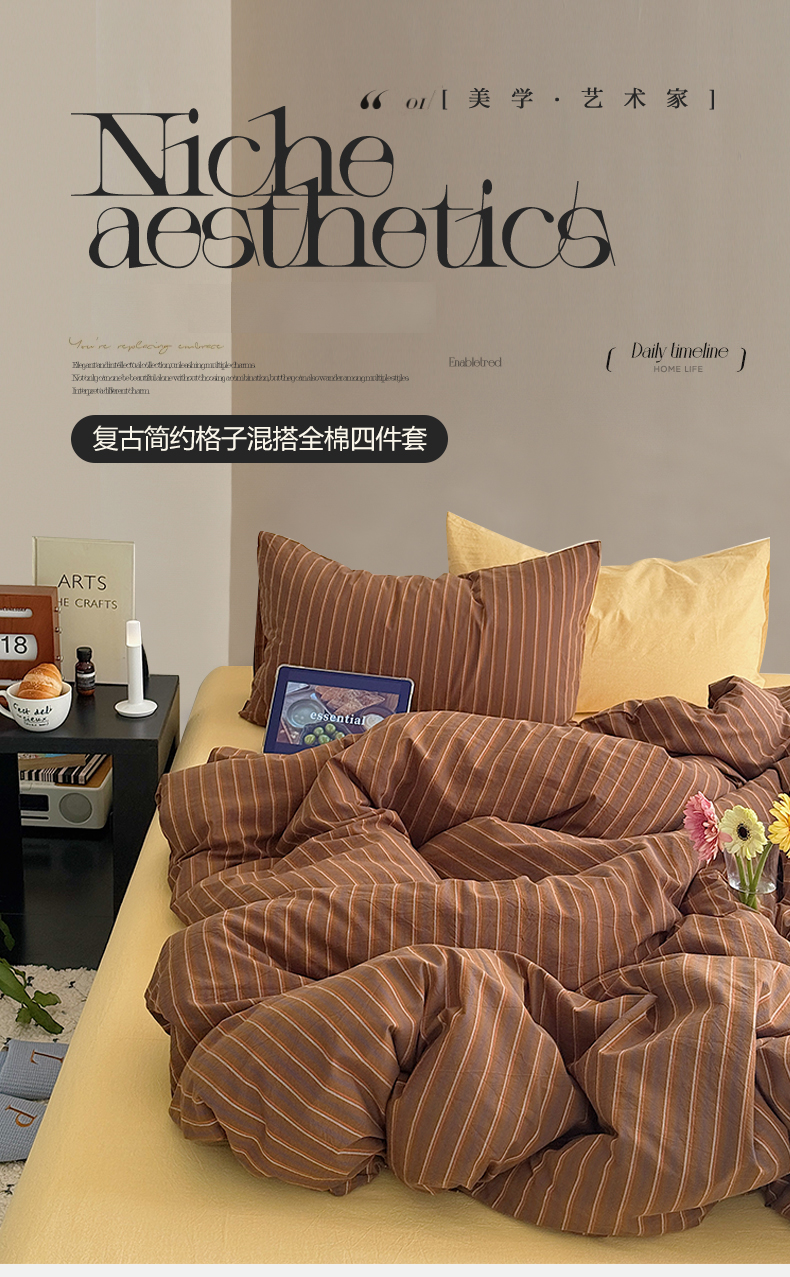 当前位置: 91家纺网 > 商品网购 > 床品套件 > 四件套 > 全棉普通四件套 > 三朵家纺 2026新款复古简约格子混搭全棉纯棉色织水洗棉四件套 波士顿