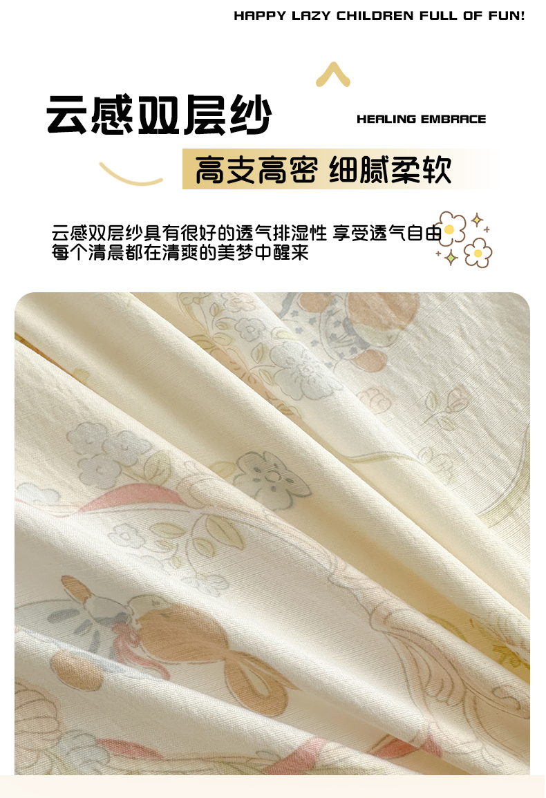 (总)多品家纺 2025新款超柔云感双层纱四件套,布丁猫,花城粉,花城兰,可爱贝贝,兰花园,蓝蝶,绿格,绿藤,漫步花庭,梦境紫,米塔丫丫,魔法新新,泡芙兔兔,清荷,五彩草莓,心动,幽香,紫烟