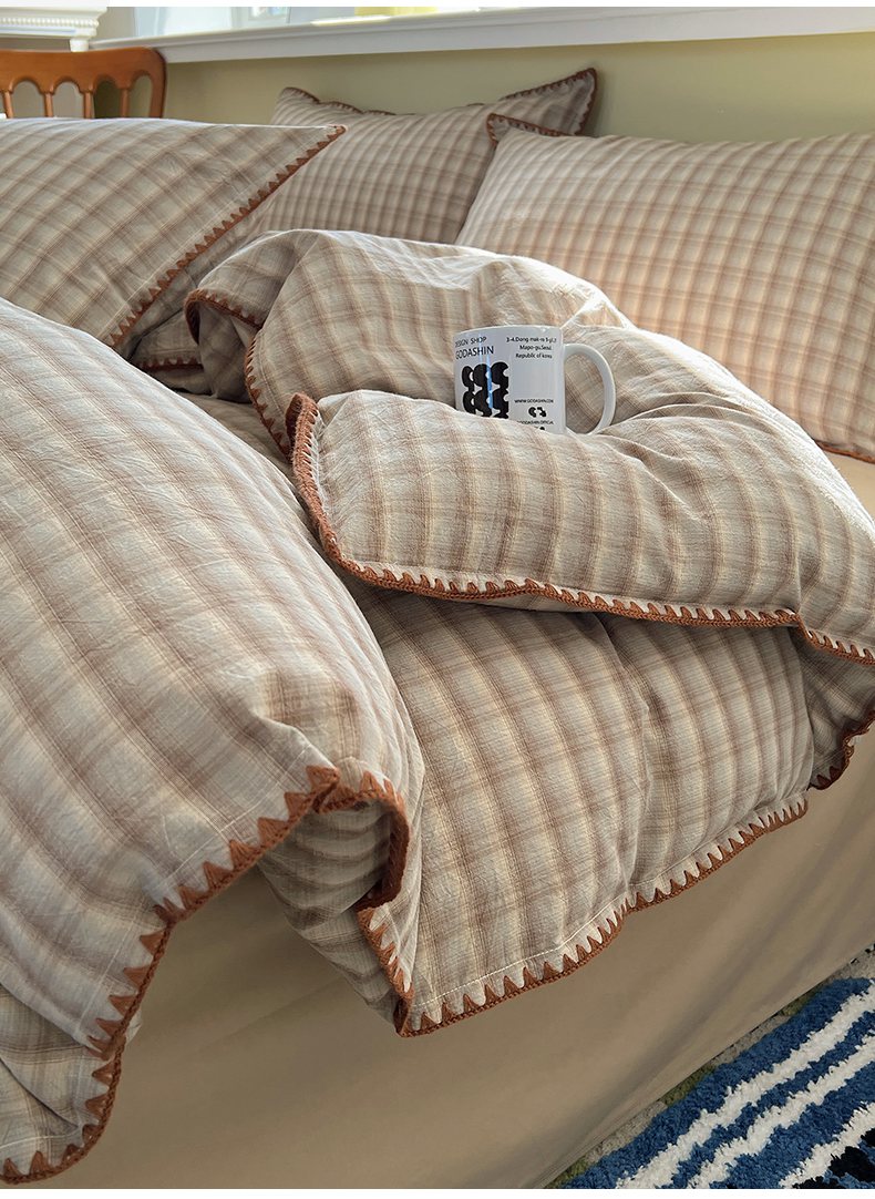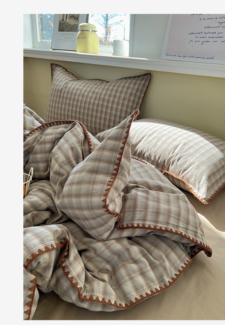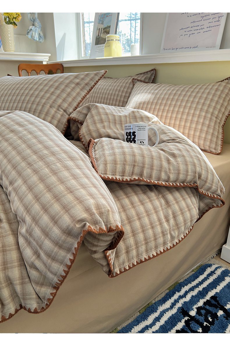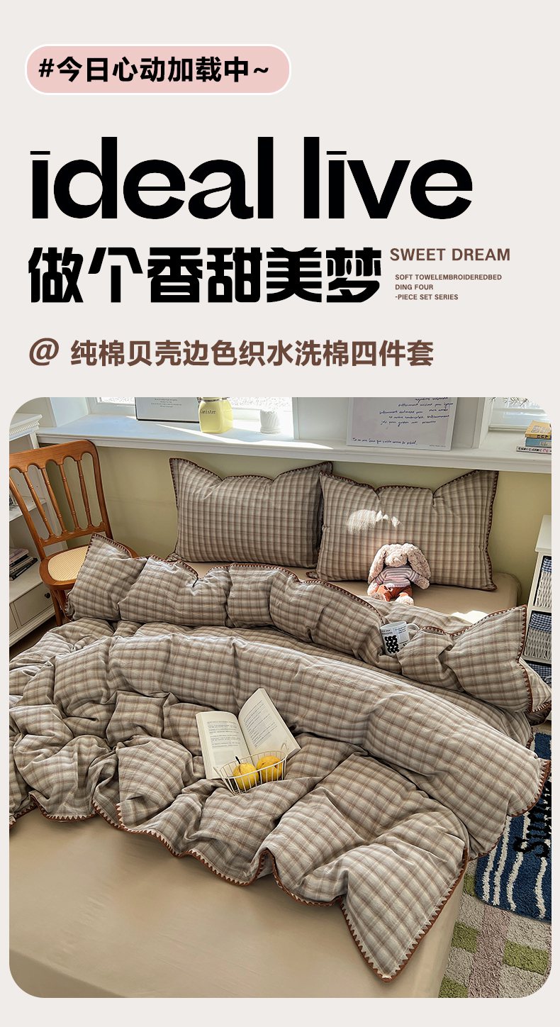 当前位置: 91家纺网 > 商品网购 > 床品套件 > 四件套 > 全棉普通四件套 > XIWEN-希文家纺 2026新款40支全棉色织水洗棉贝壳边四件套 黄昏-兰咖