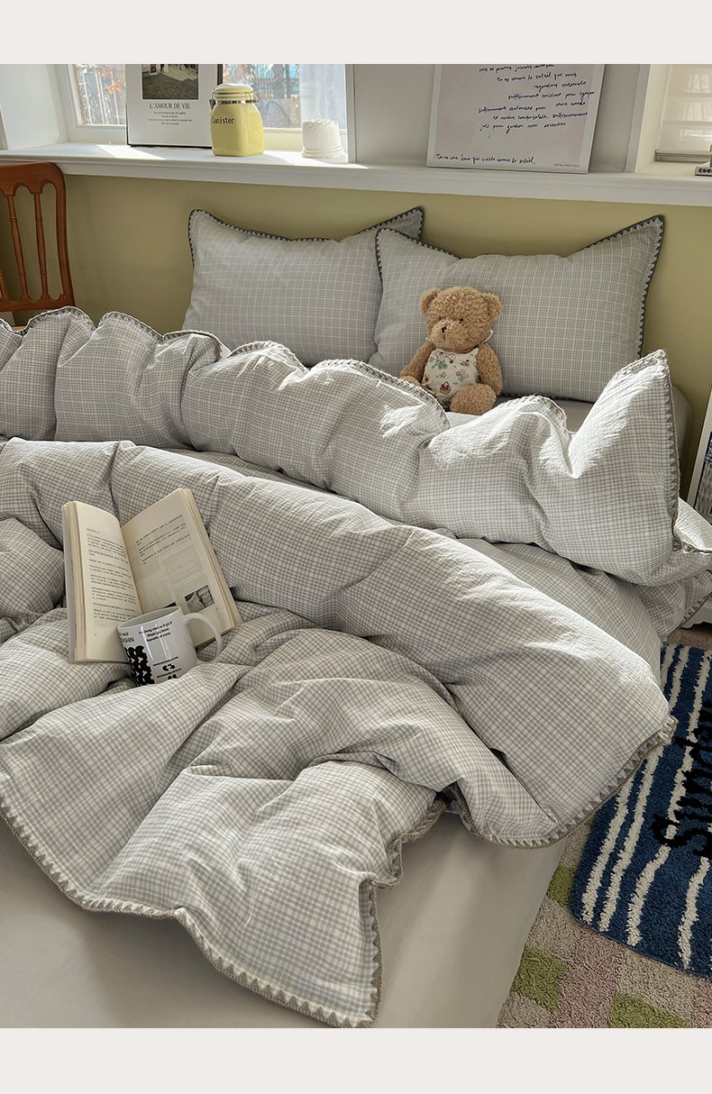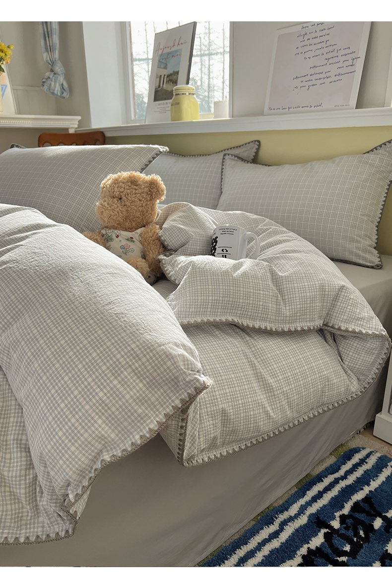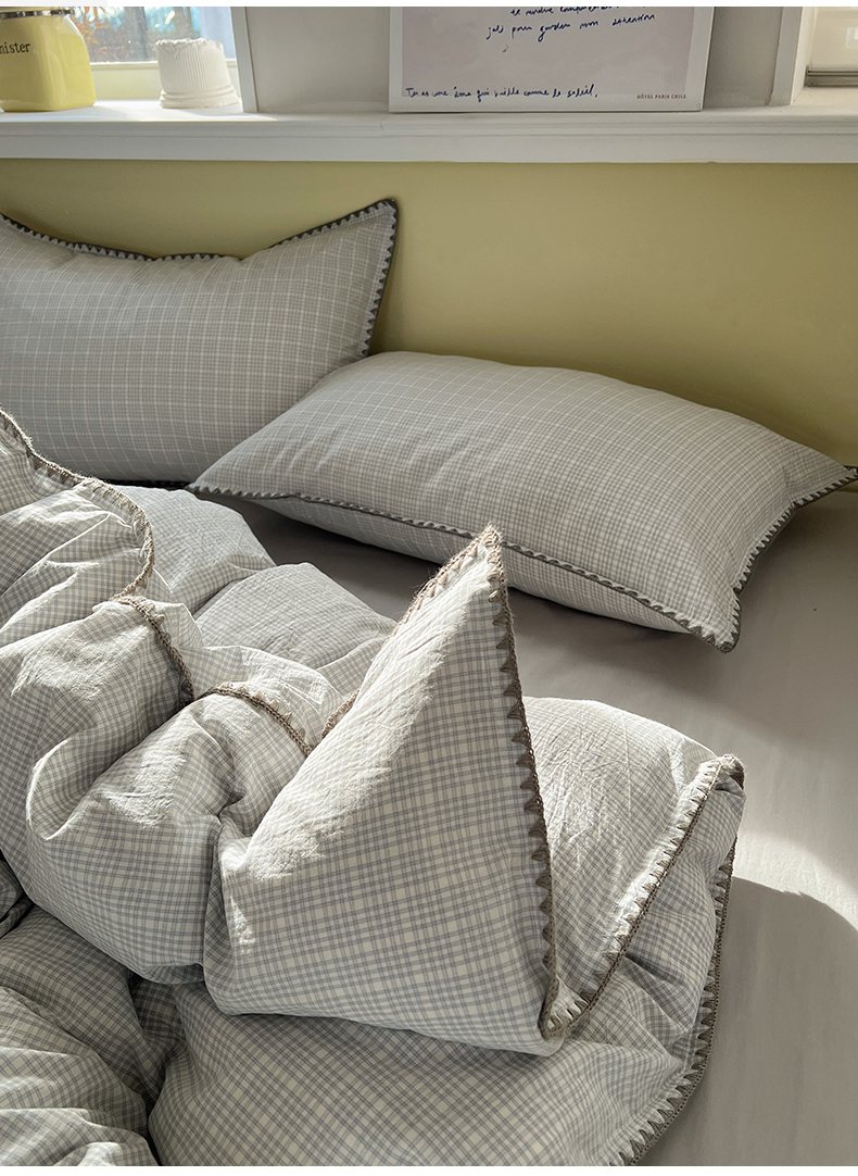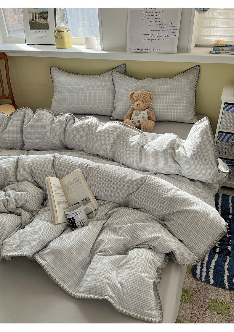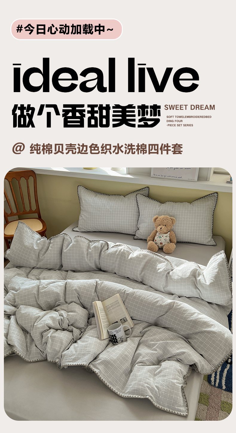 当前位置: 91家纺网 > 商品网购 > 床品套件 > 四件套 > 全棉普通四件套 > XIWEN-希文家纺 2026新款40支全棉色织水洗棉贝壳边四件套 叙白-灰
