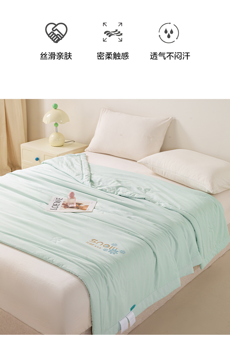 心悦家纺 2026新款简约有氧凉感冰丝夏被夏凉被空调被 薄荷绿