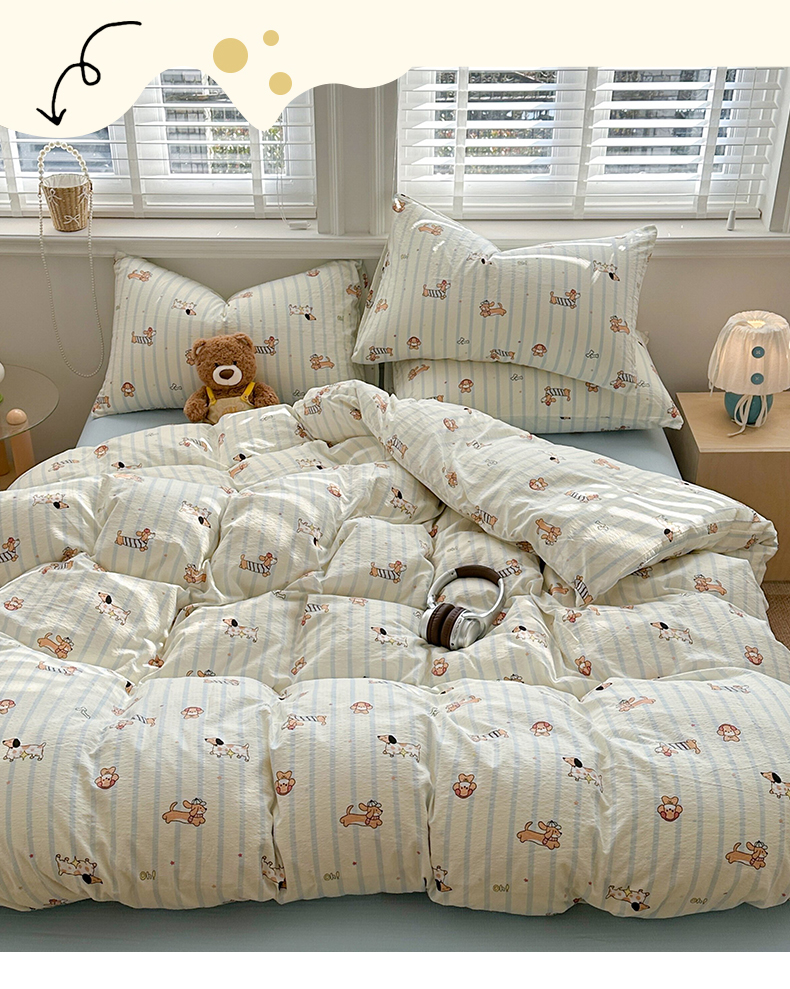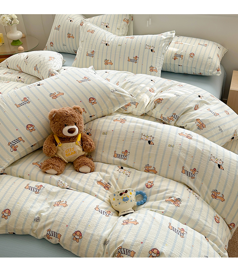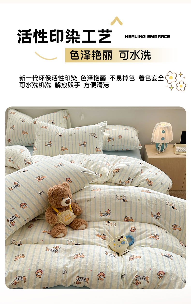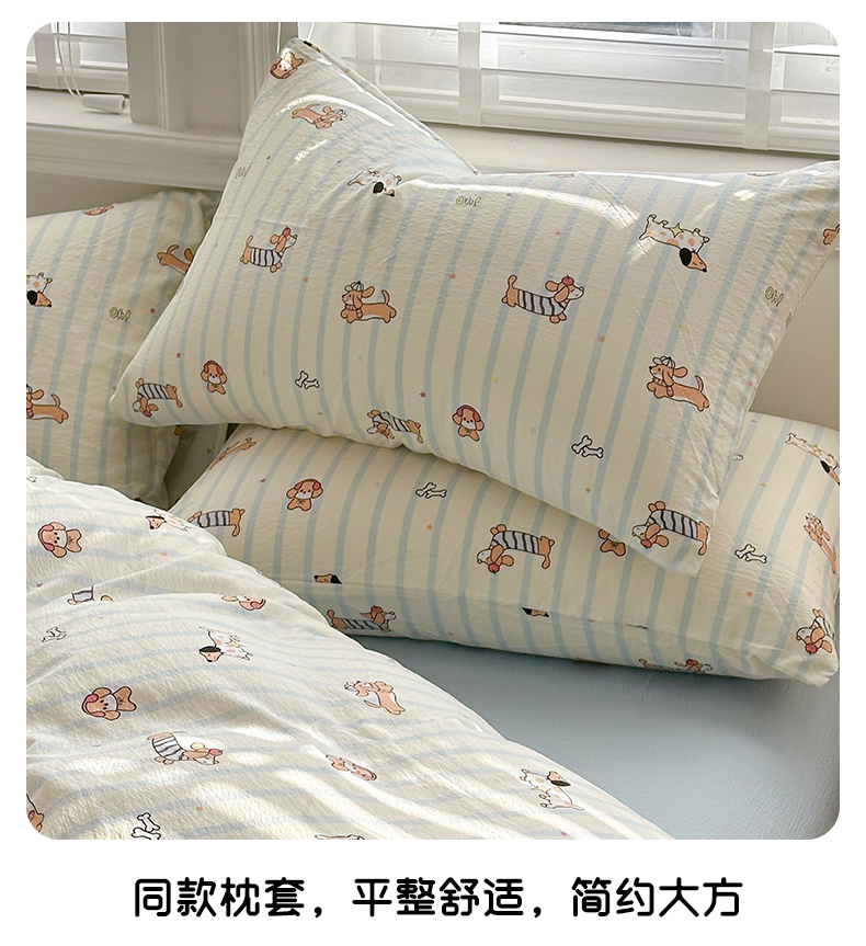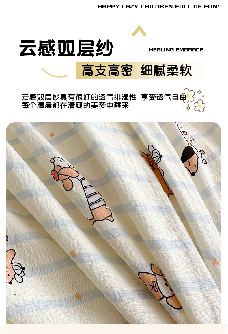 商品名称:多品家纺 2026新款奶呼呼超柔云感双层纱系列单被套 开心狗