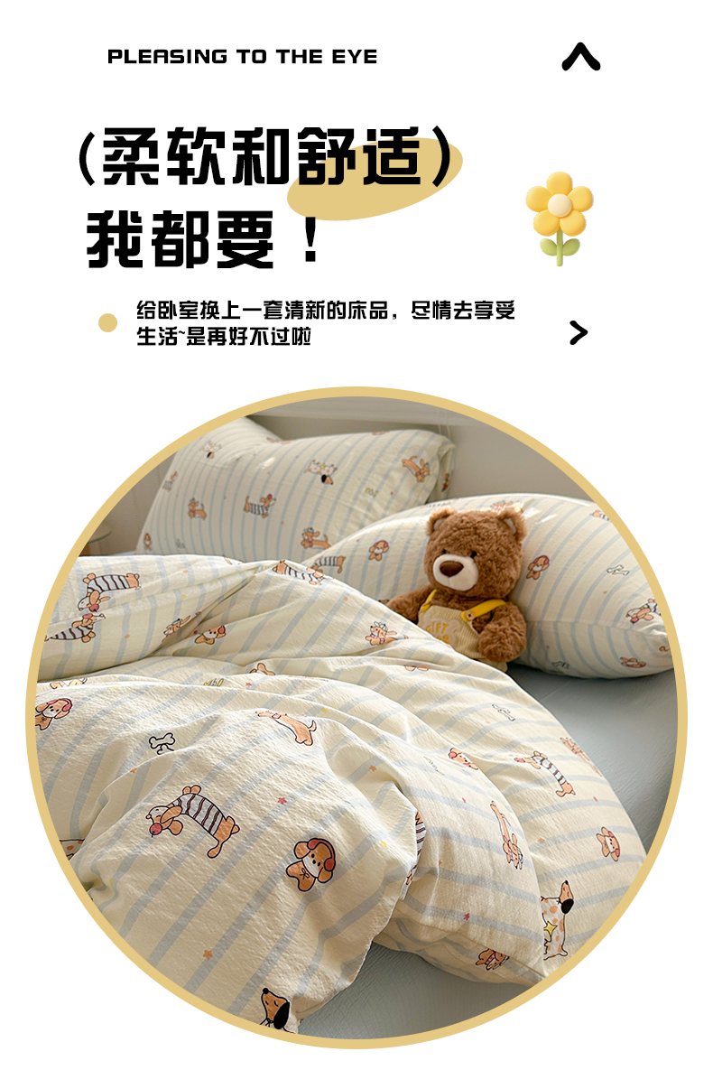 当前位置: 91家纺网 > 商品网购 > 床品套件 > 四件套 > 其它四件套 > 多品家纺 2026新款奶呼呼超柔云感双层纱系列四件套 开心狗