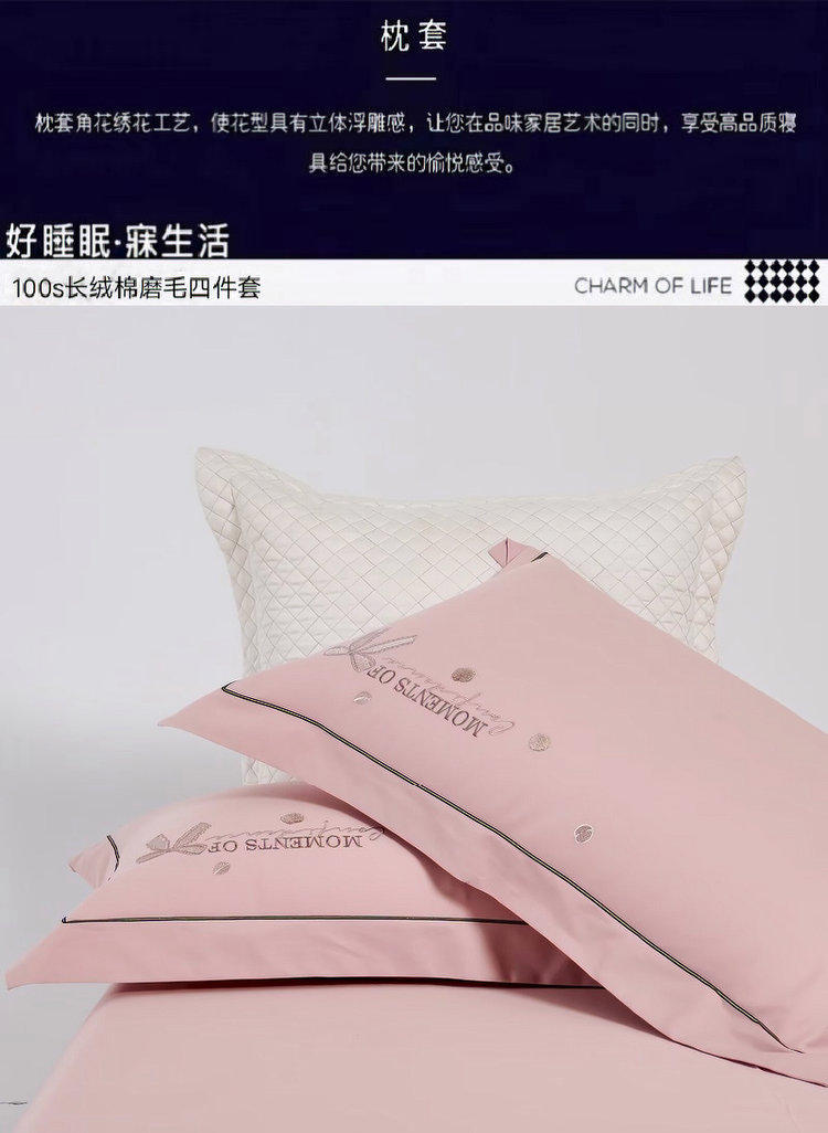 梦丝语家纺秋冬婚庆送礼居家高端100支长绒棉磨毛平绣加毛巾绣四件套