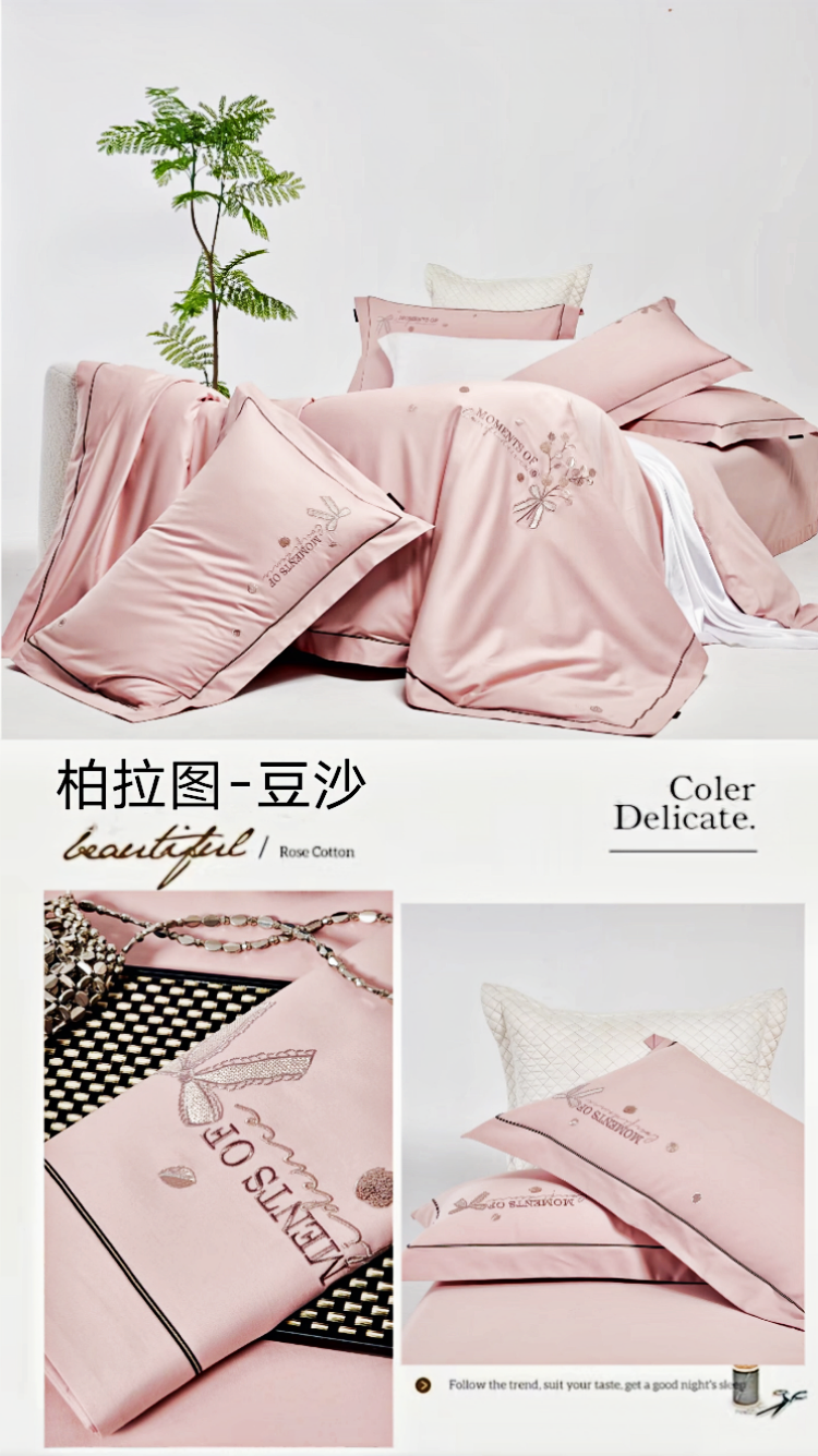2025米兰达糸列50双股100支长绒棉轻奢高端简约绣花圆角款四件套新品 ,米兰达-粉,米兰达-玉,米兰达-蓝,米兰达-香槟,米兰达-绿,米兰达-紫灰