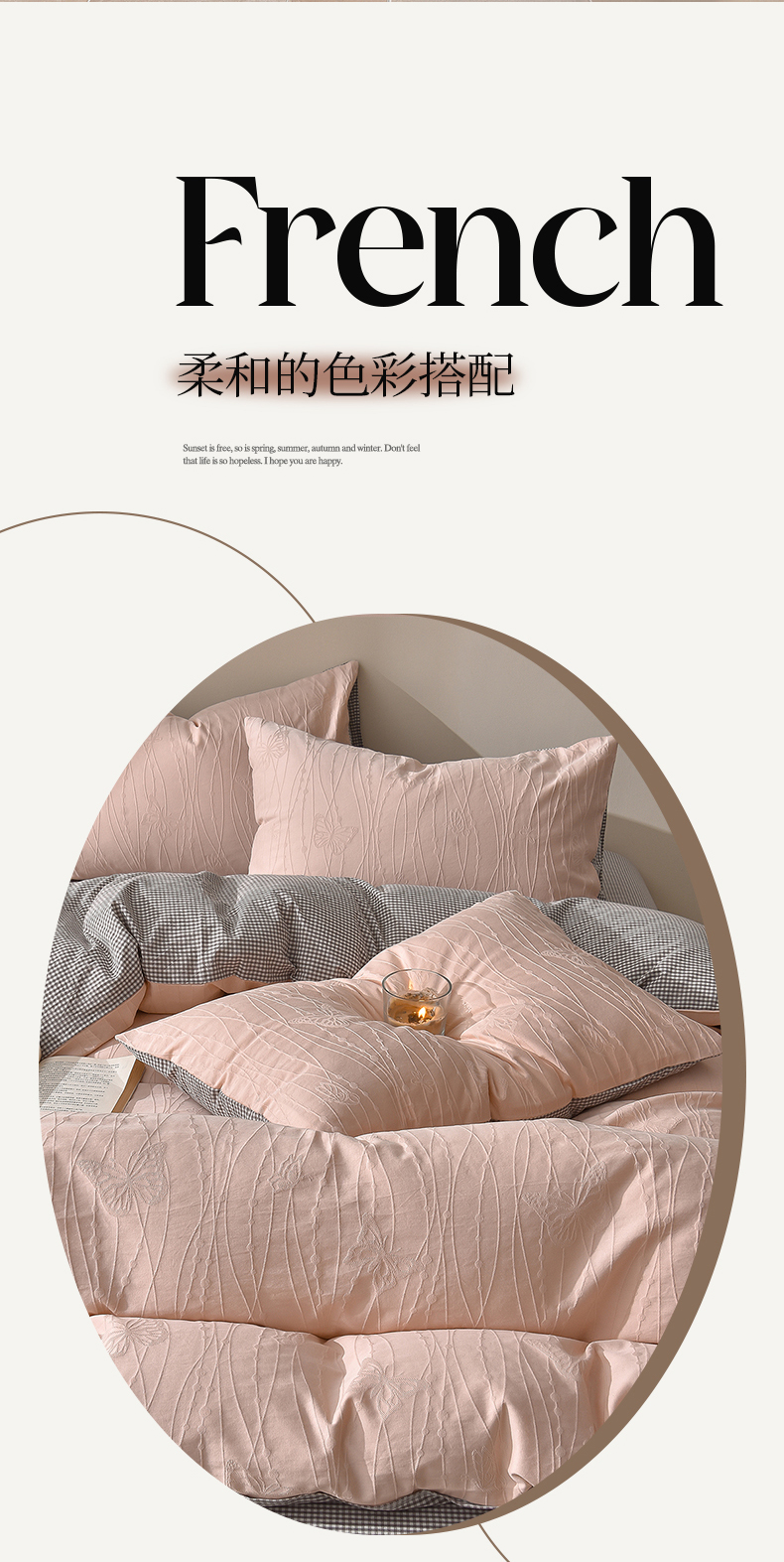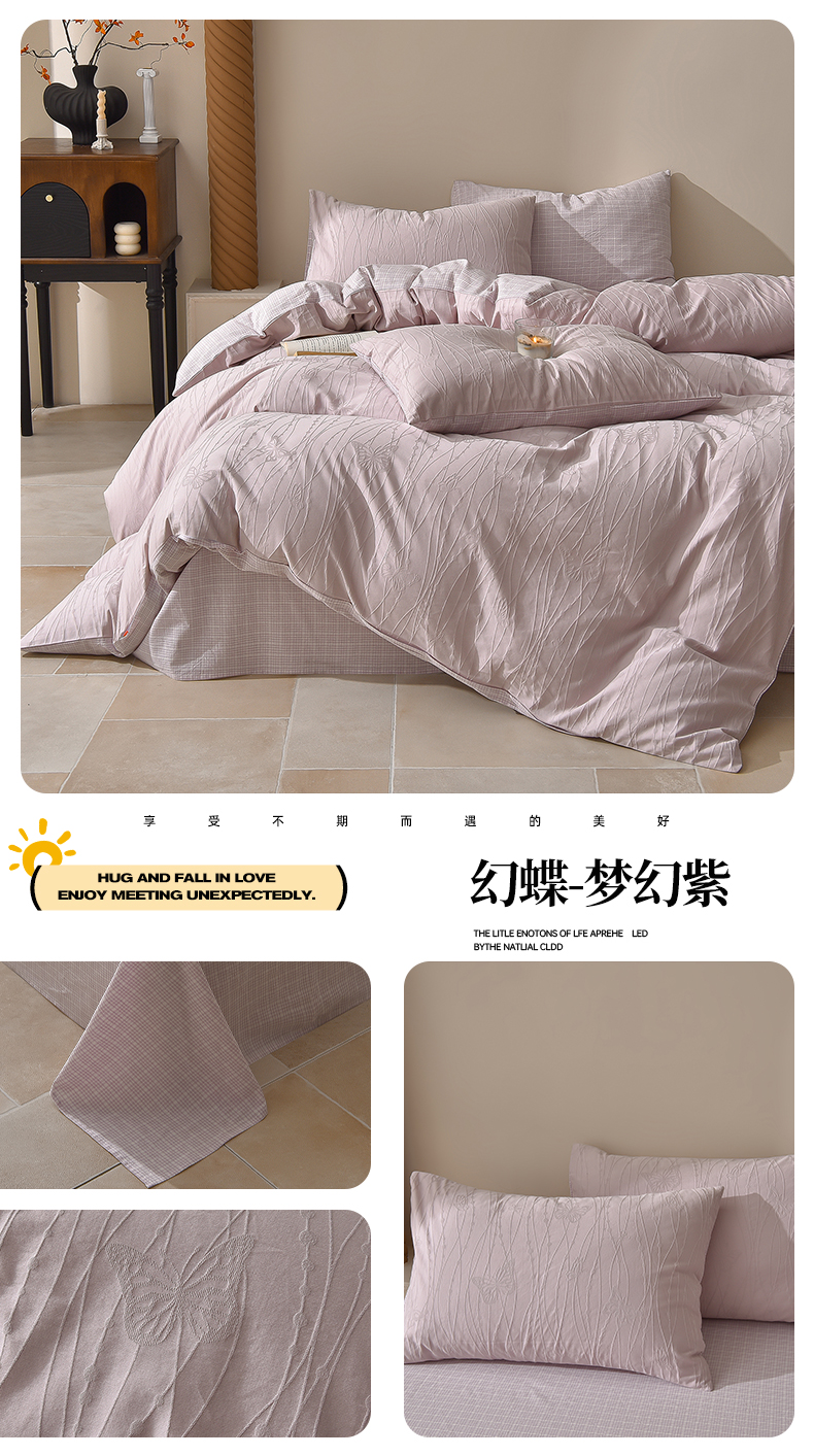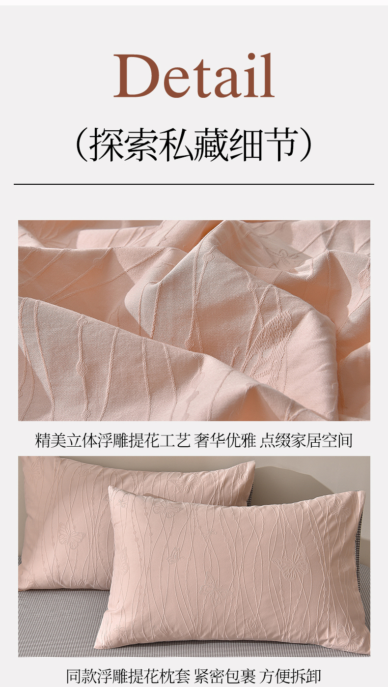 炫拼家纺 2026新款A类60支水洗棉立体浮雕提花全棉四件套-幻蝶系列 幻蝶-浪漫粉