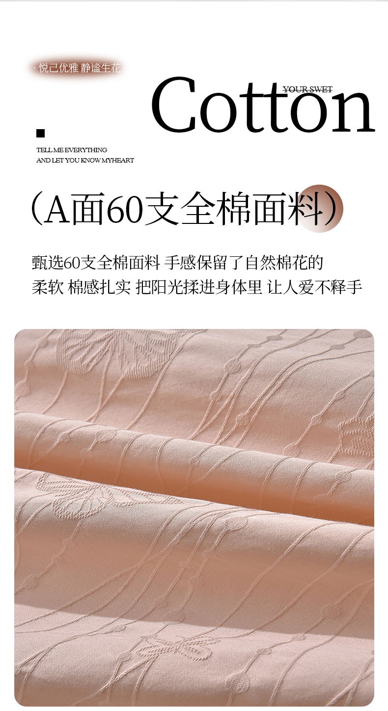 商品名称:炫拼家纺 2026新款A类60支水洗棉立体浮雕提花全棉四件套-幻蝶系列 幻蝶-浪漫粉