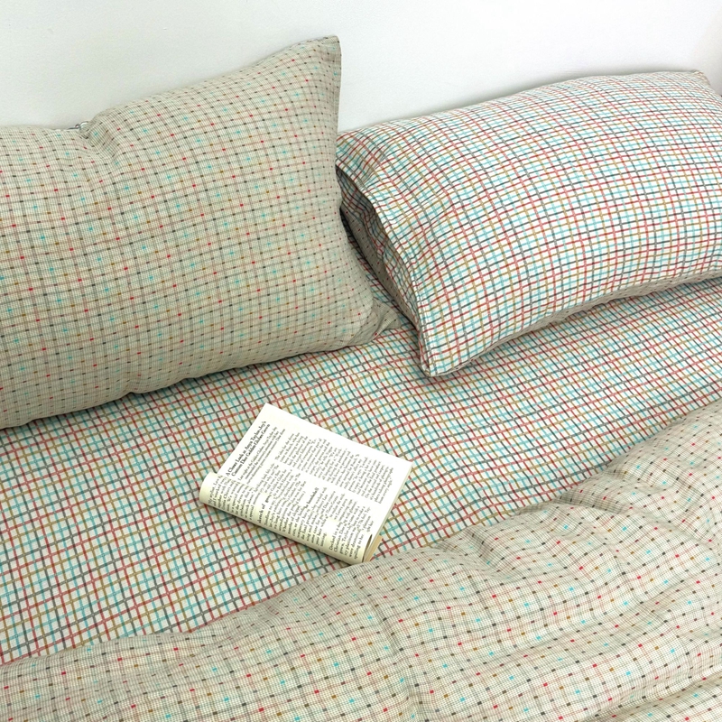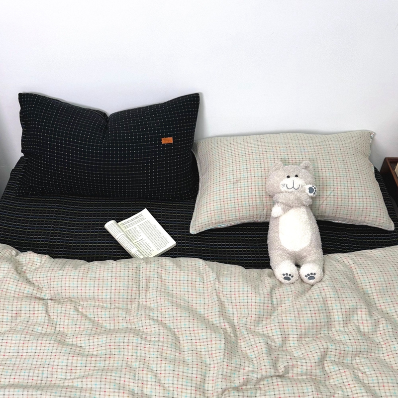 商品名称:双层纱家居 2025新款彩虹格全棉纯棉色织提花四件套 彩虹格黑+粉