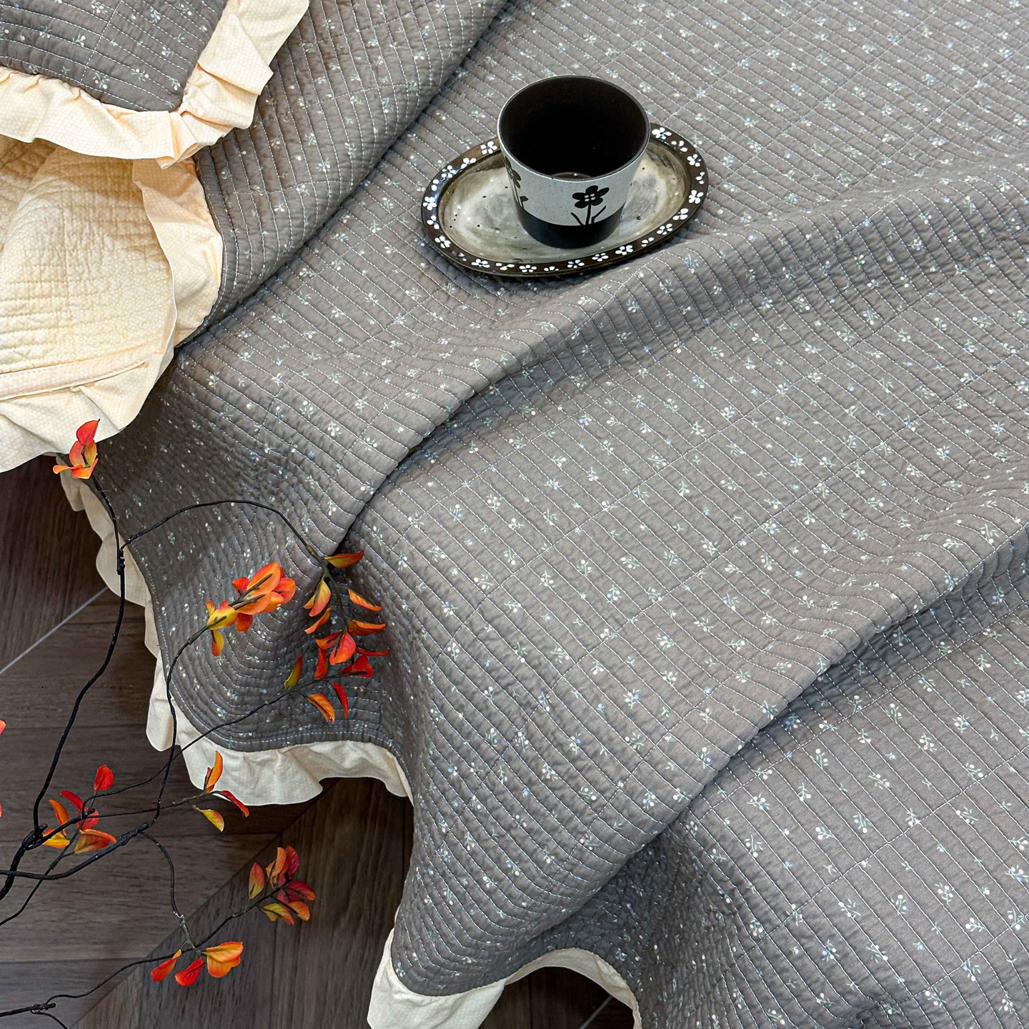 床盖工厂店 2026新款小花边双面全棉填充棉花床盖三件套 花园梦梦