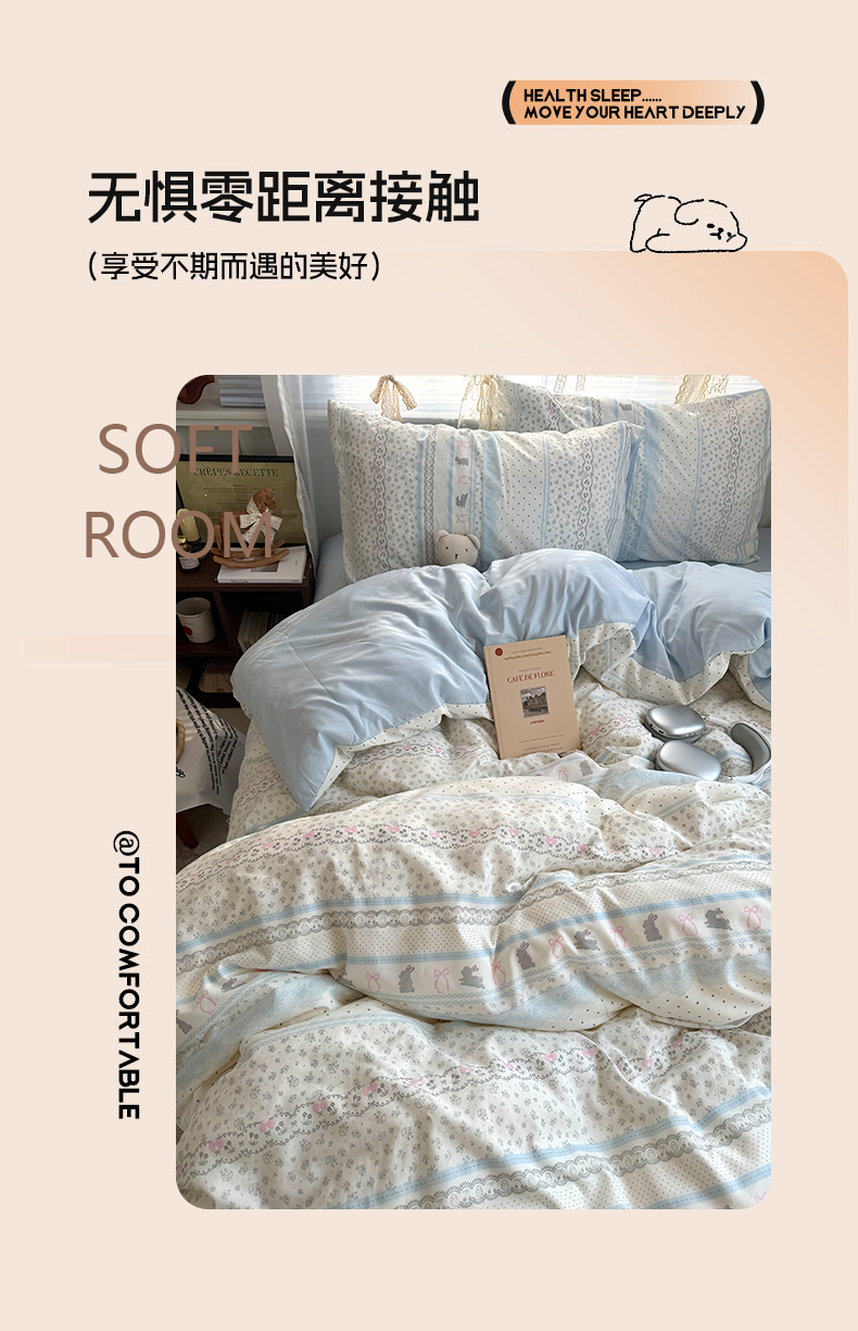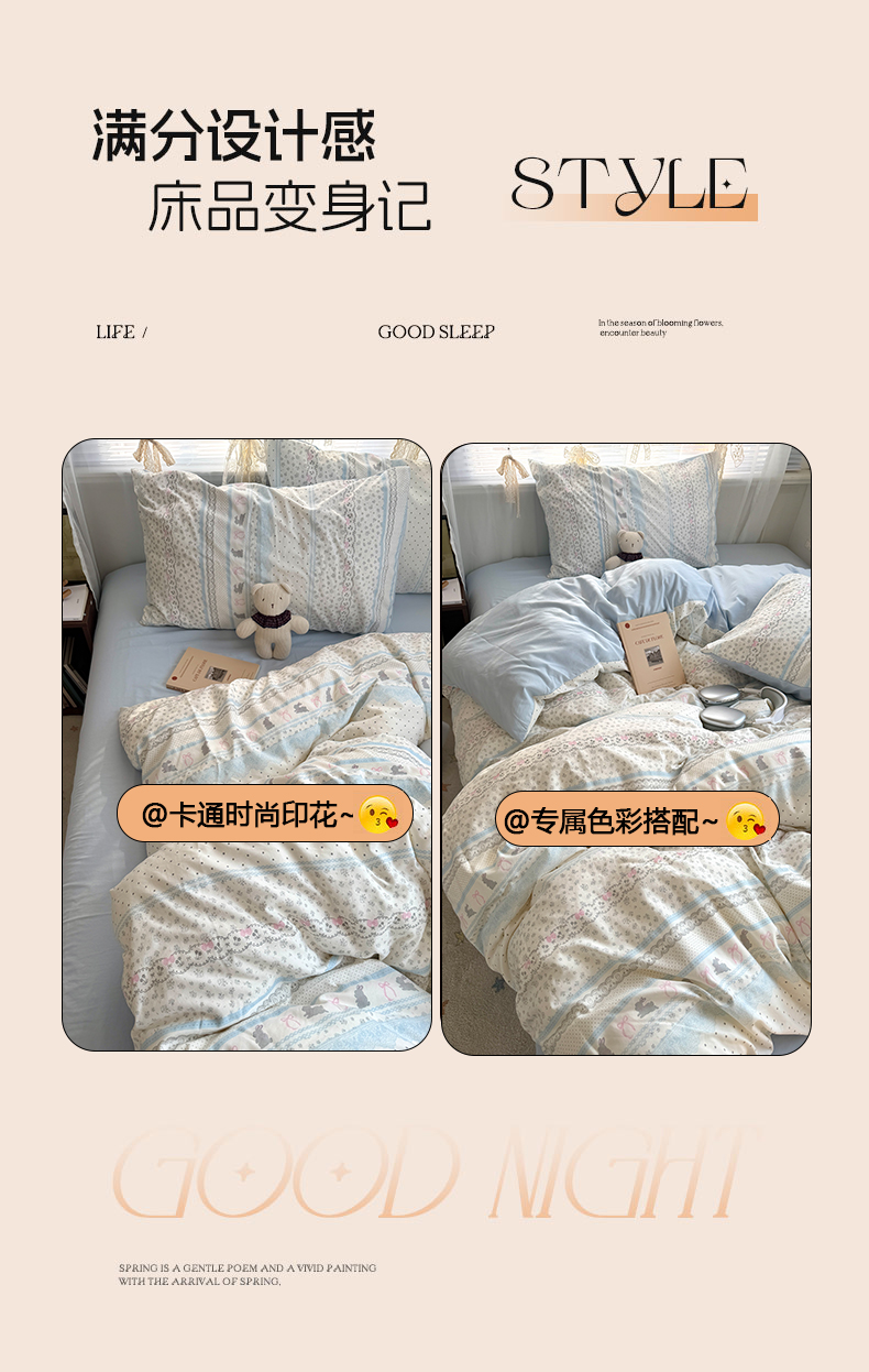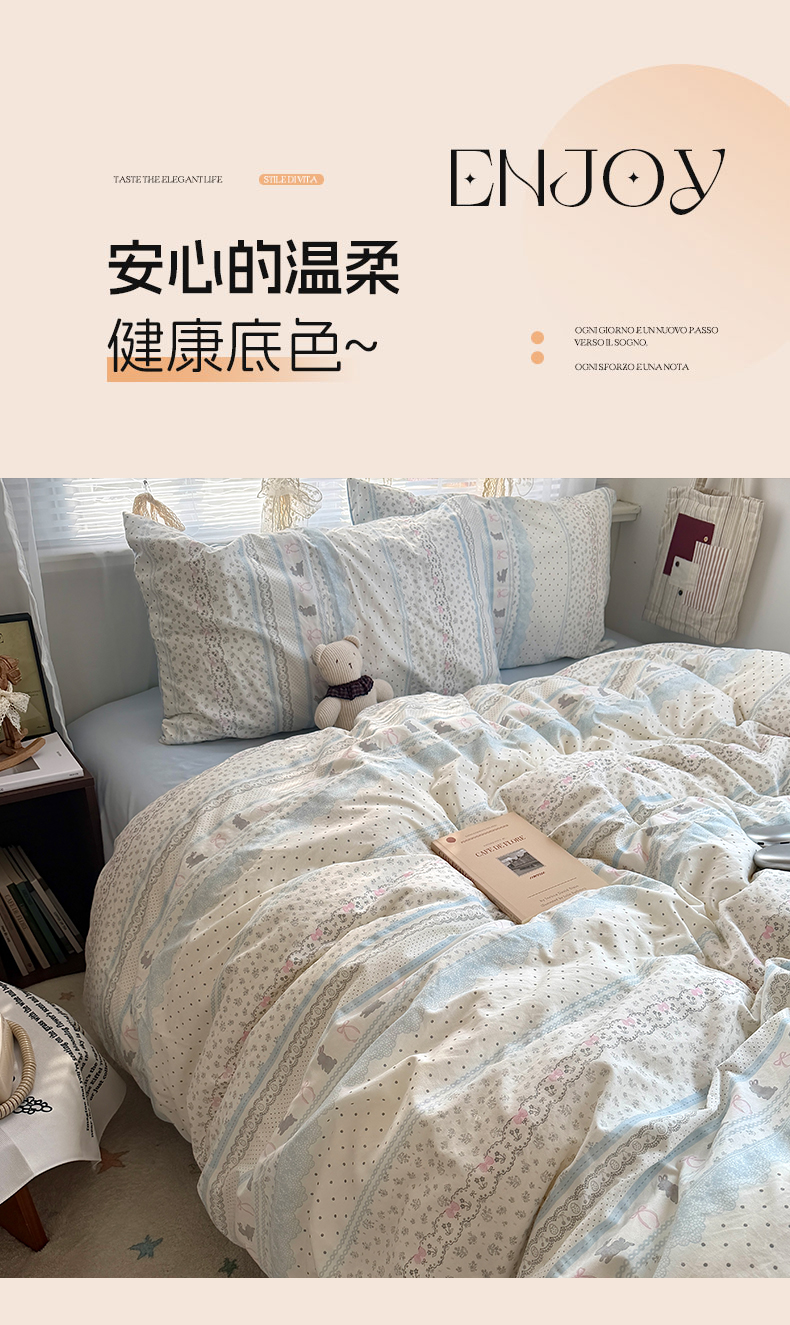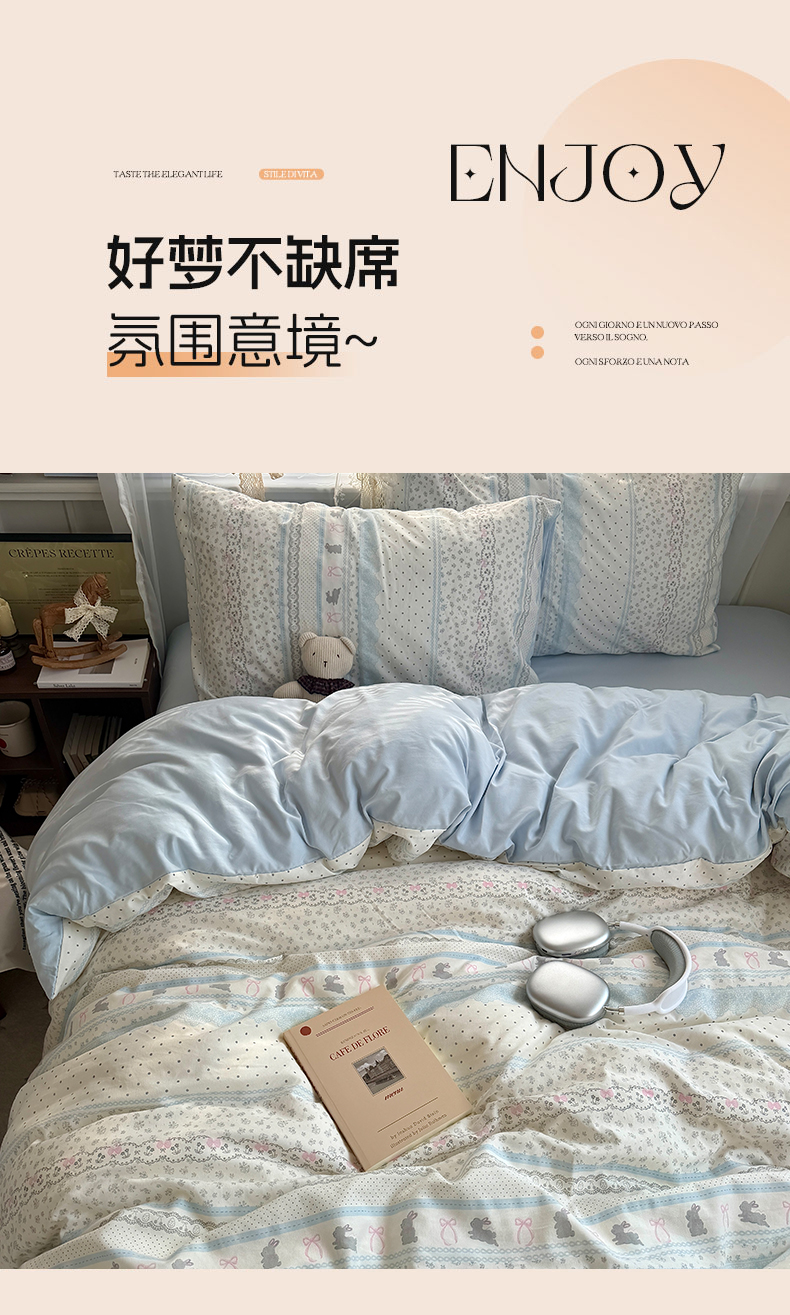 当前位置: 91家纺网 > 商品网购 > 床品套件 > 四件套 > 双层纱四件套 > 原素 2026新款小清新水洗双层纱四件套 费尔岛兔兔