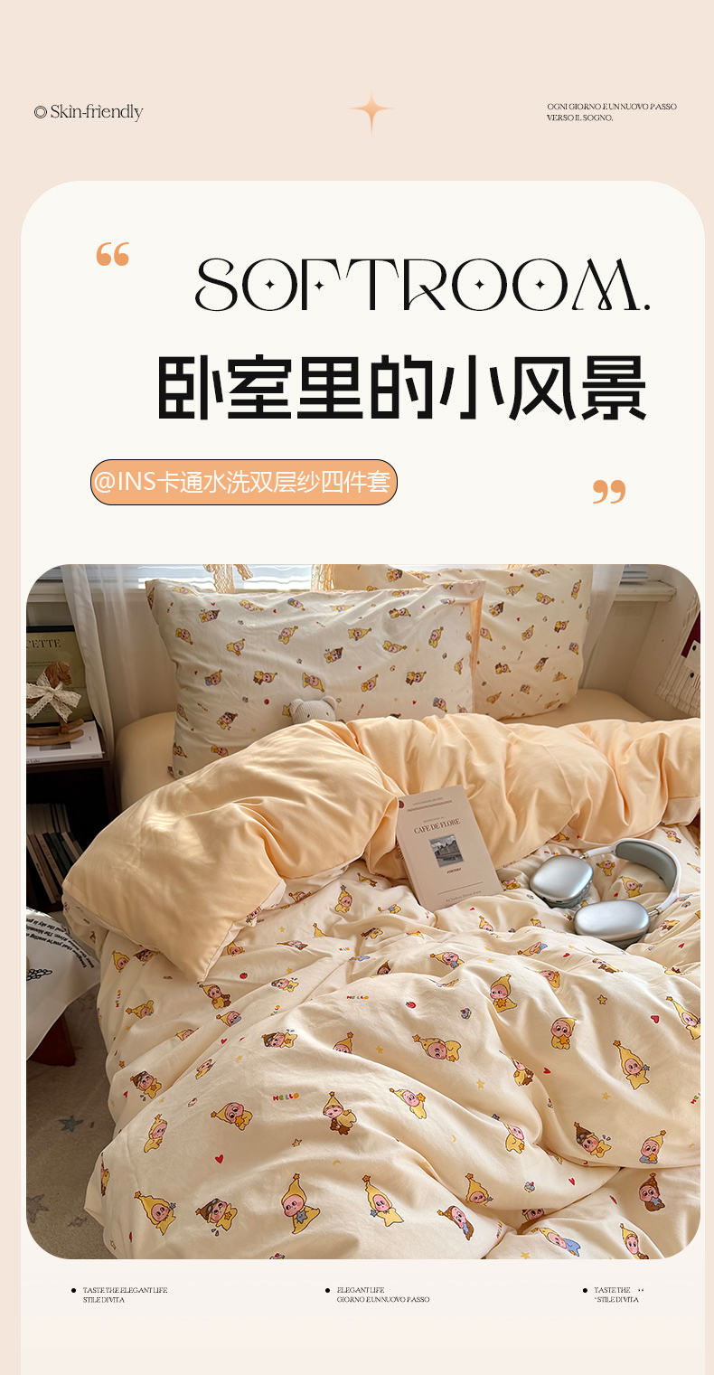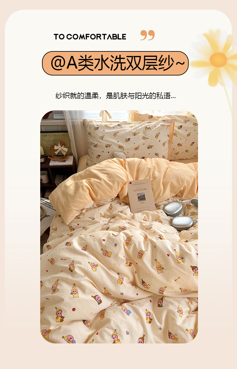 当前位置: 91家纺网 > 商品网购 > 床品套件 > 四件套 > 双层纱四件套 > 原素 2026新款小清新水洗双层纱四件套 小狗欢乐颂