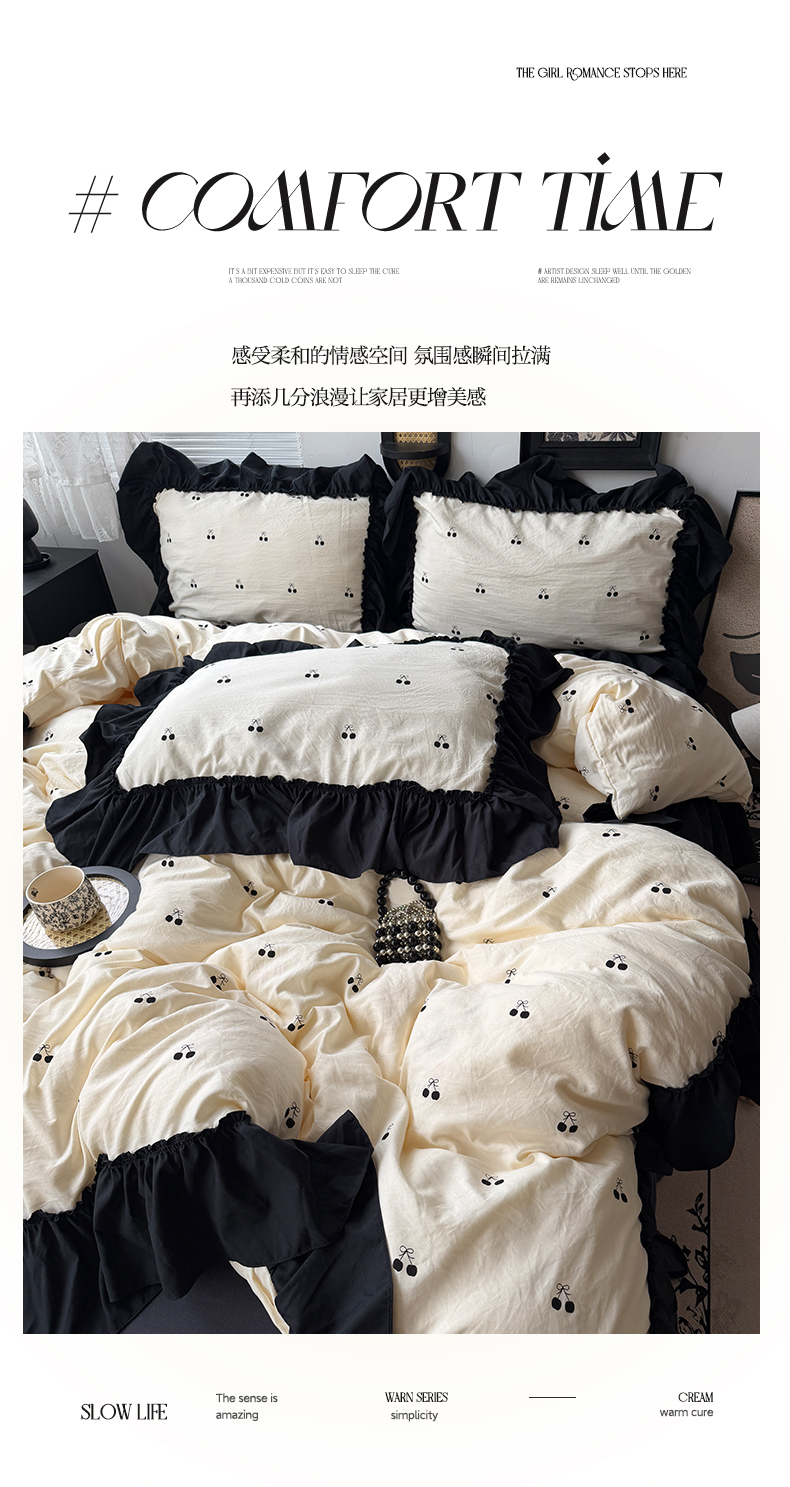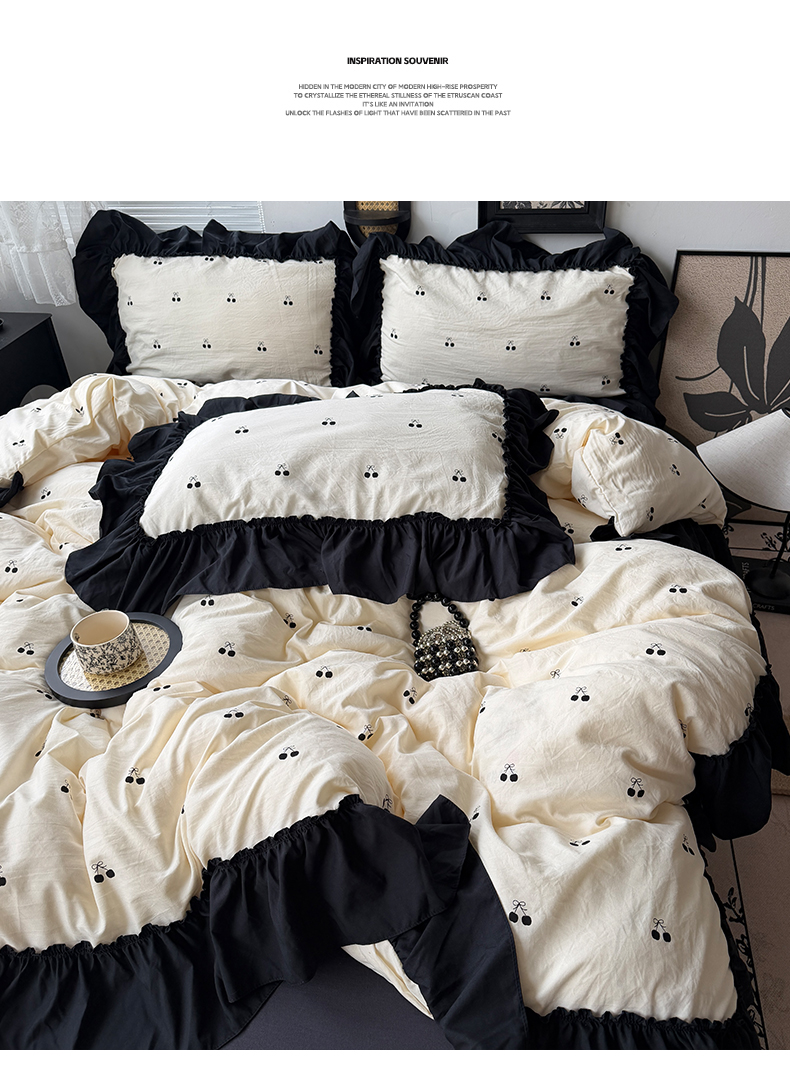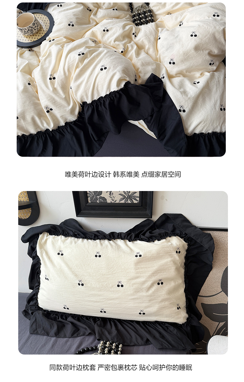 当前位置: 91家纺网 > 商品网购 > 床品套件 > 四件套 > 水洗棉四件套 > 原素 2026新款大黑边水洗棉四件套-安娜系列 安娜-樱桃