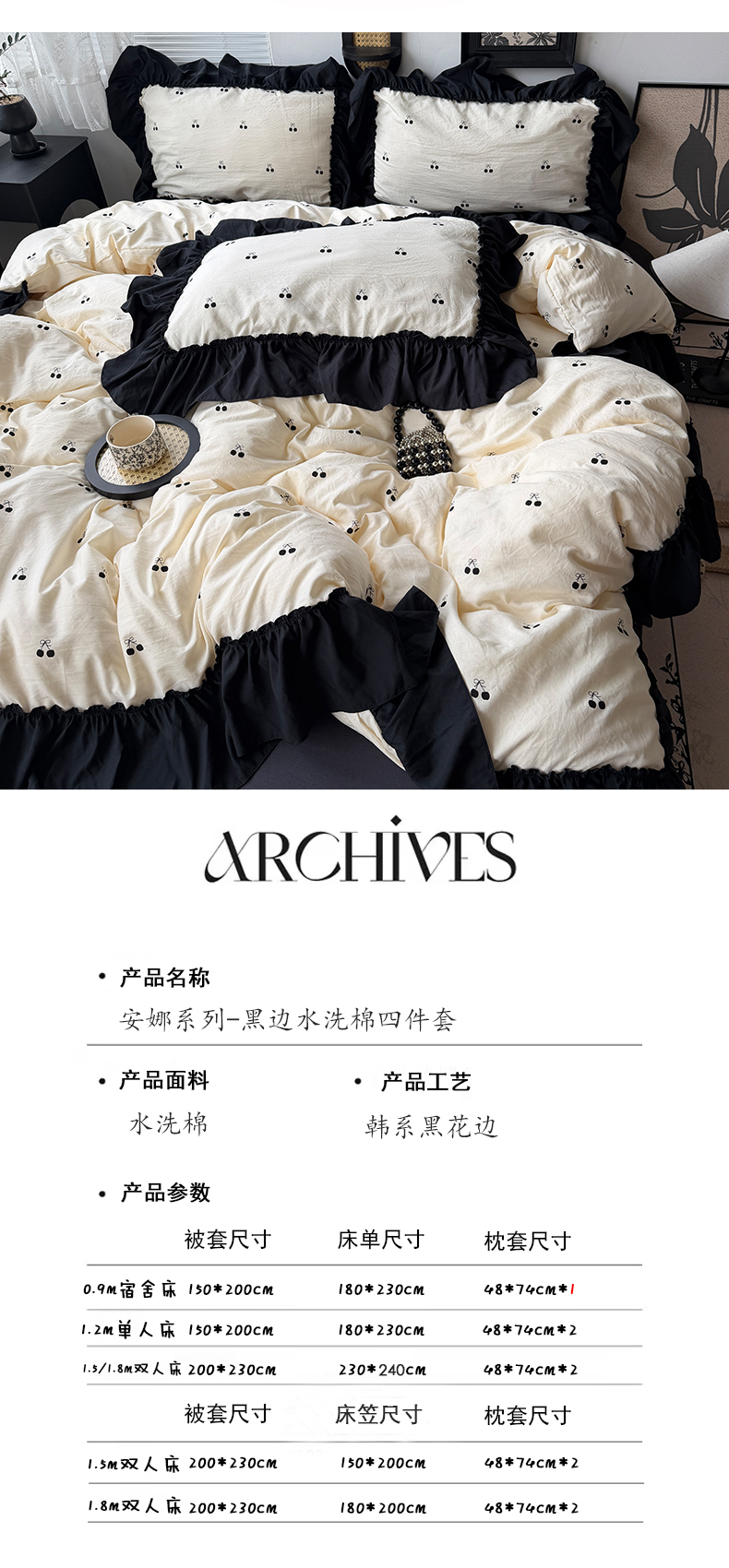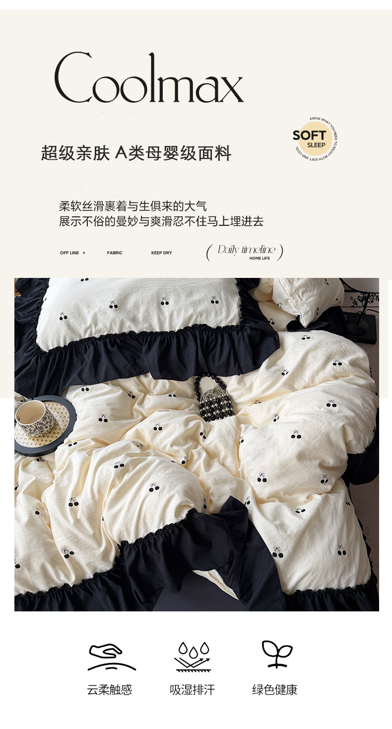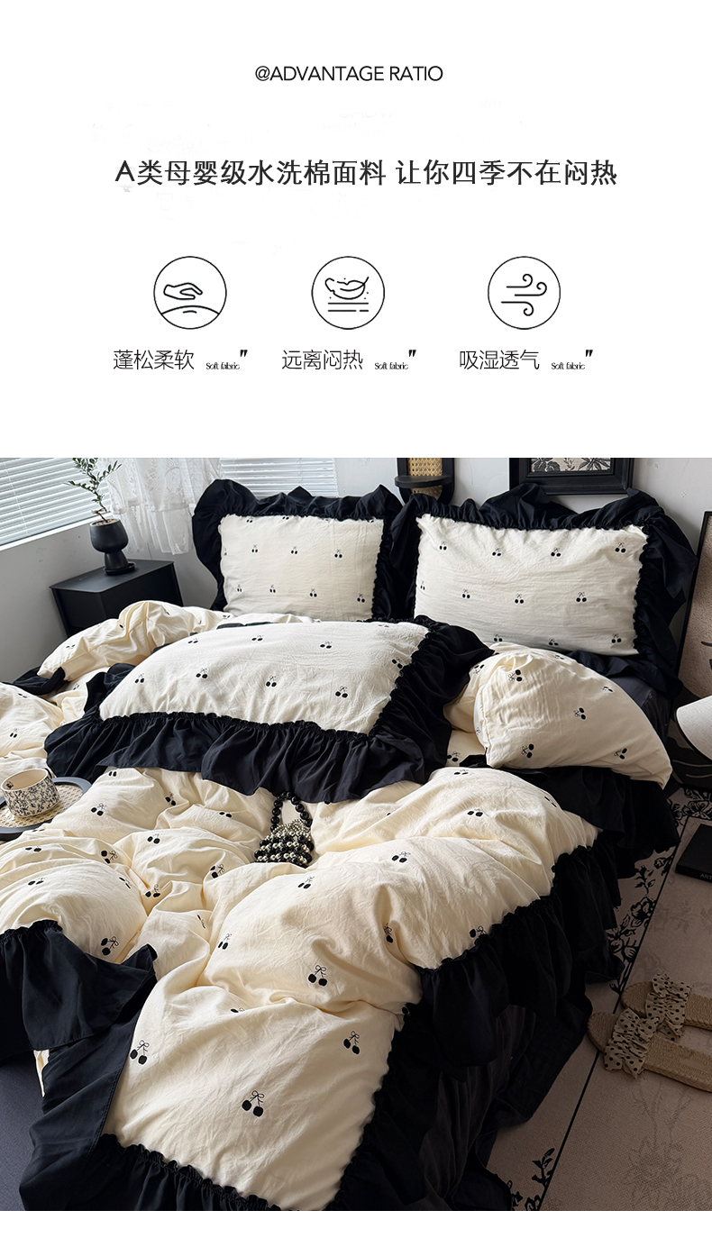 当前位置: 91家纺网 > 商品网购 > 床品套件 > 四件套 > 水洗棉四件套 > 原素 2026新款大黑边水洗棉四件套-安娜系列 安娜-樱桃