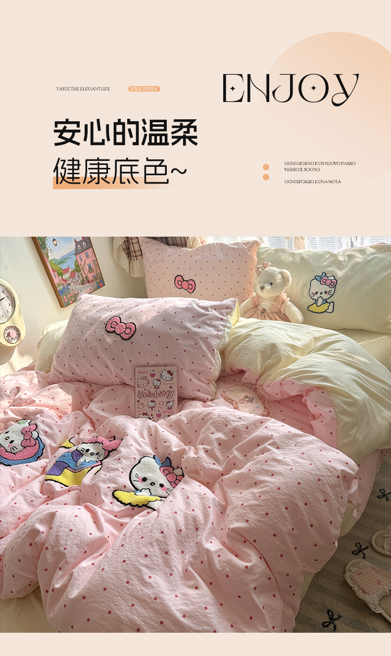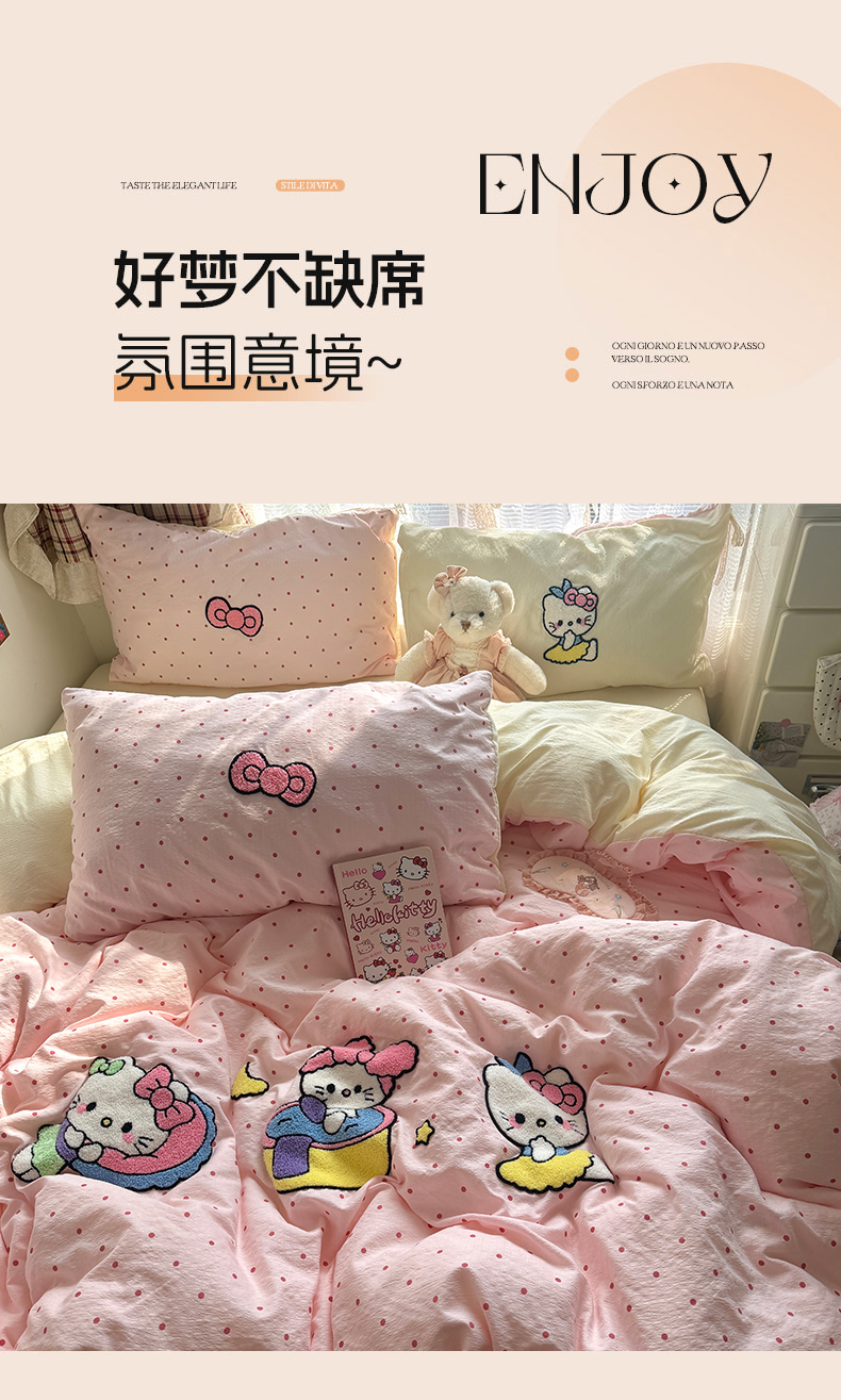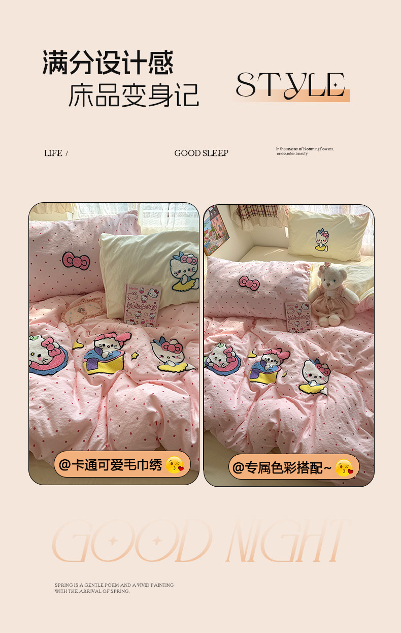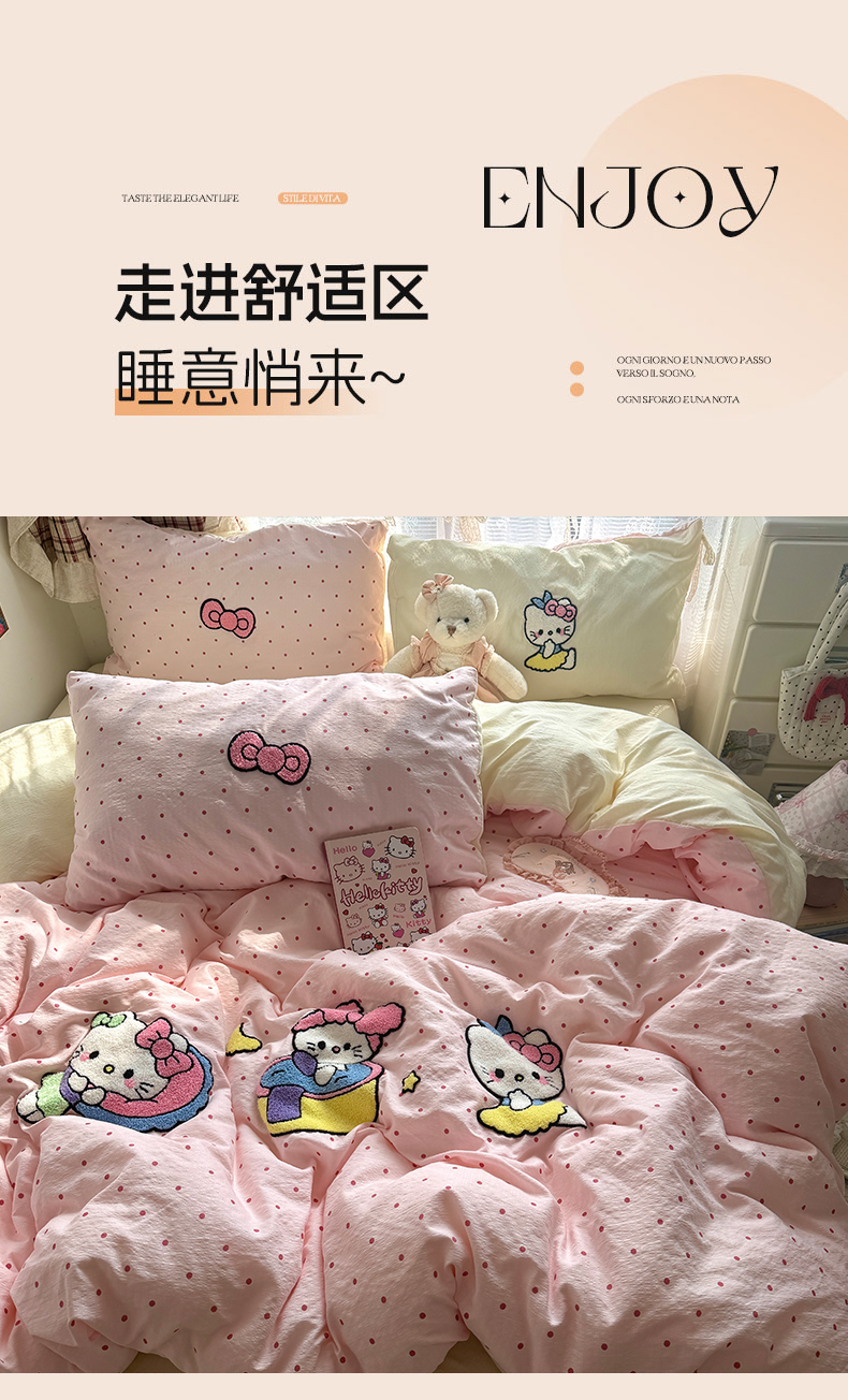 当前位置: 91家纺网 > 商品网购 > 床品套件 > 四件套 > 毛巾绣四件套 > 原素 2026新款新春卡哇伊毛巾绣四件套 猫咪日记