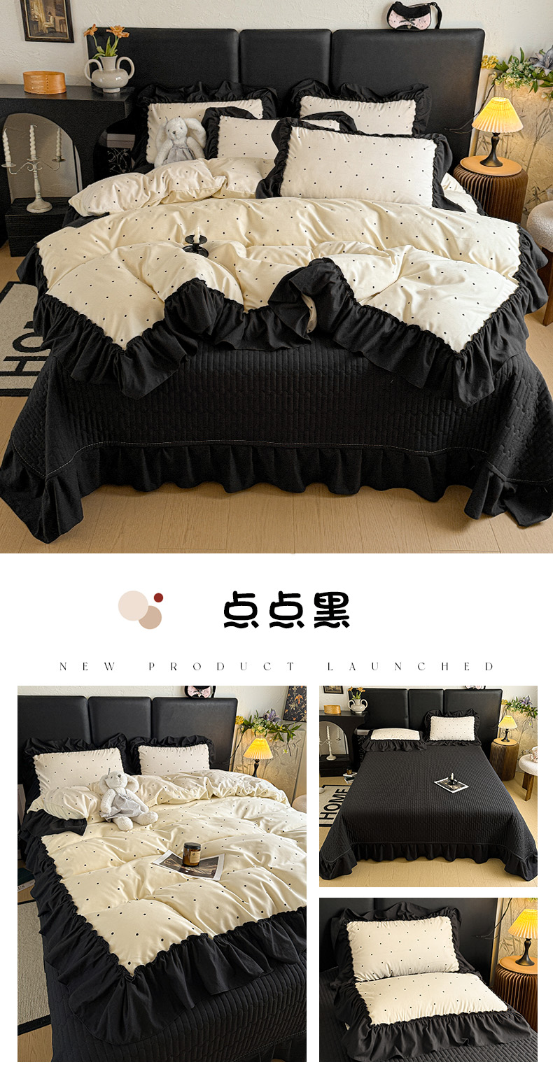 (总)富米莱(原臻工厂) 2026新款水洗棉波点黑格球球绝绝子床盖床裙四裙套,波点-粉,波点-蓝,波点-紫,波点-米白