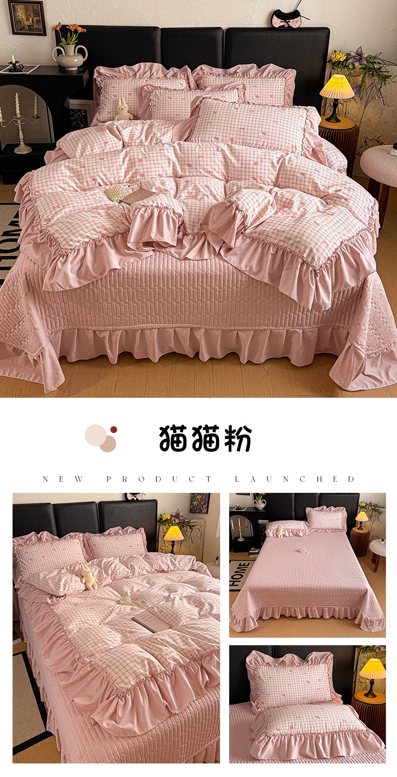 (总)富米莱(原臻工厂) 2026新款敲可爱奶呼呼云感双层纱韩国大布袋韩版大花边床盖床裙四件套-超级治愈,竹韵花语,暗夜玫瑰,大脸二胡猫-粉,大脸二胡猫-咖,见花则喜,焦糖樱桃,木马,苹果小怪,七宝,切块草莓猫,裙子小兔,时光一红,像素小猫,星眠云野,一口青苹果,摘星,组合图
