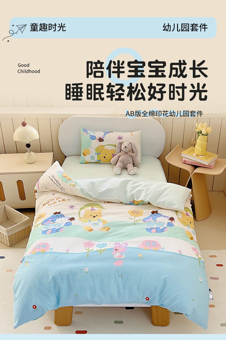 当前位置: 91家纺网 > 商品网购 > 床品套件 > 四件套 > 全棉普通四件套 > 御棉坊 2026新款AB版全棉纯棉印花幼儿园三件套儿童午睡被宝宝入园含芯多件套 向日葵伙伴