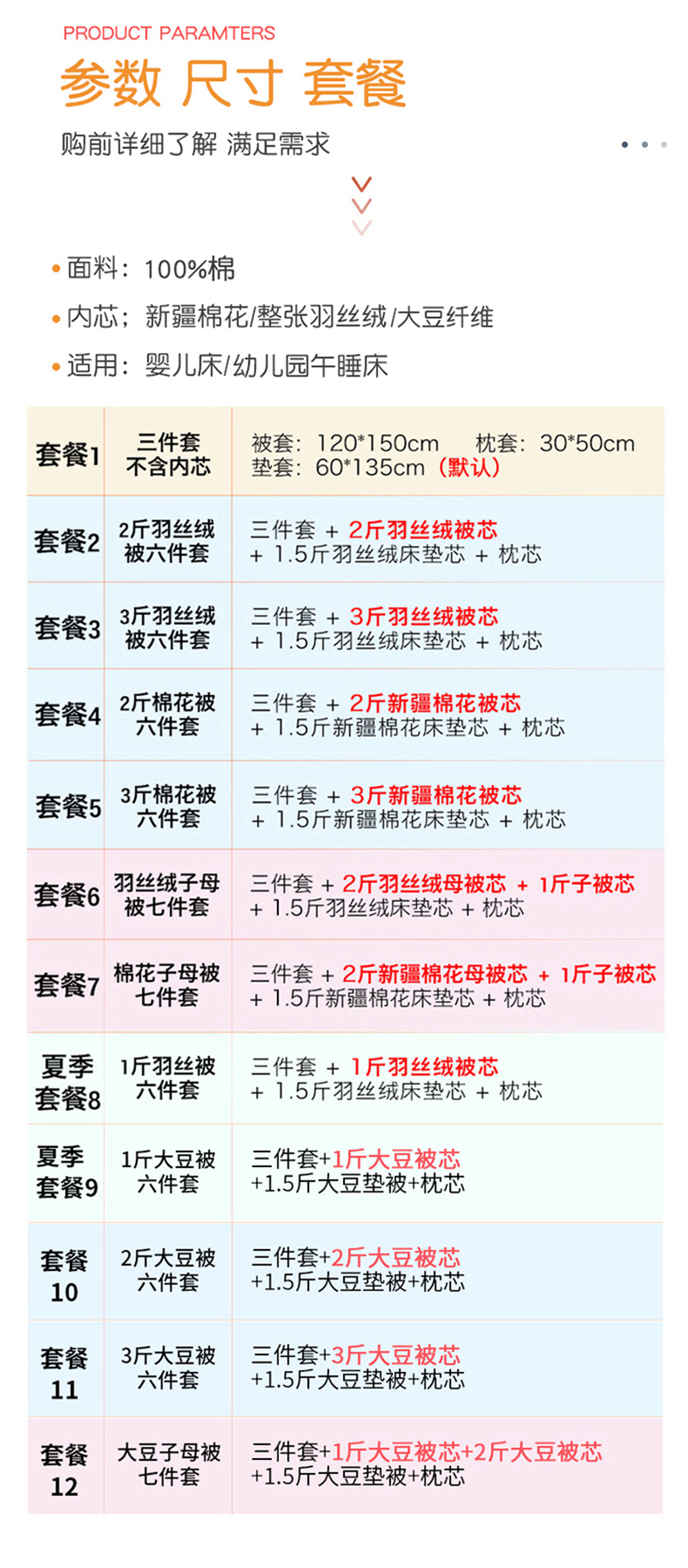 棉花七件套(三件套+1斤棉花被芯+2斤棉花被芯+1.5斤棉花垫芯+丝绵枕芯) | ¥133.00 |