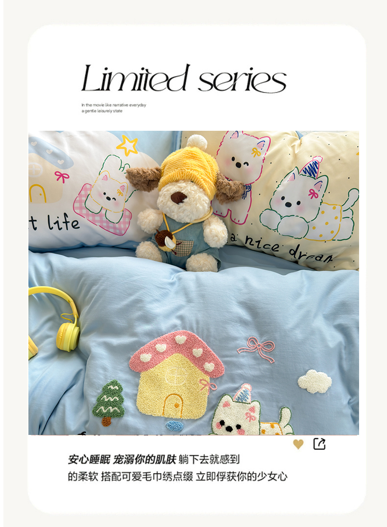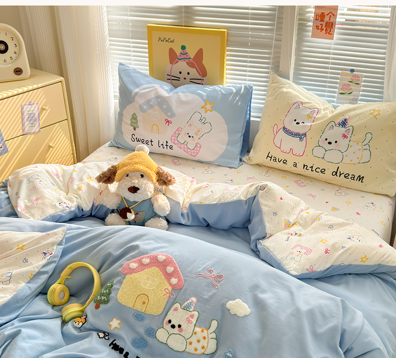 当前位置: 91家纺网 > 商品网购 > 床品套件 > 四件套 > 其它四件套 > 一霖家纺 2026新款云朵棉毛巾绣小清新猫咪系列四件套 可爱猫咪粉