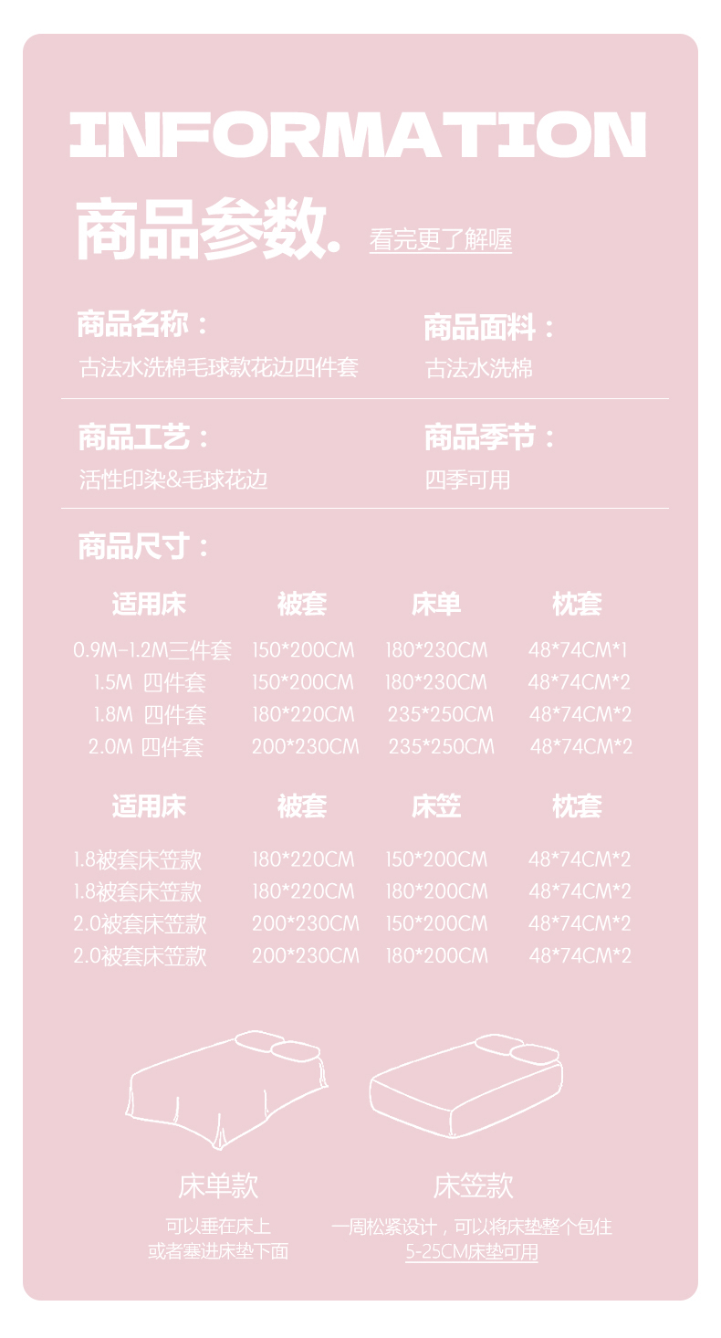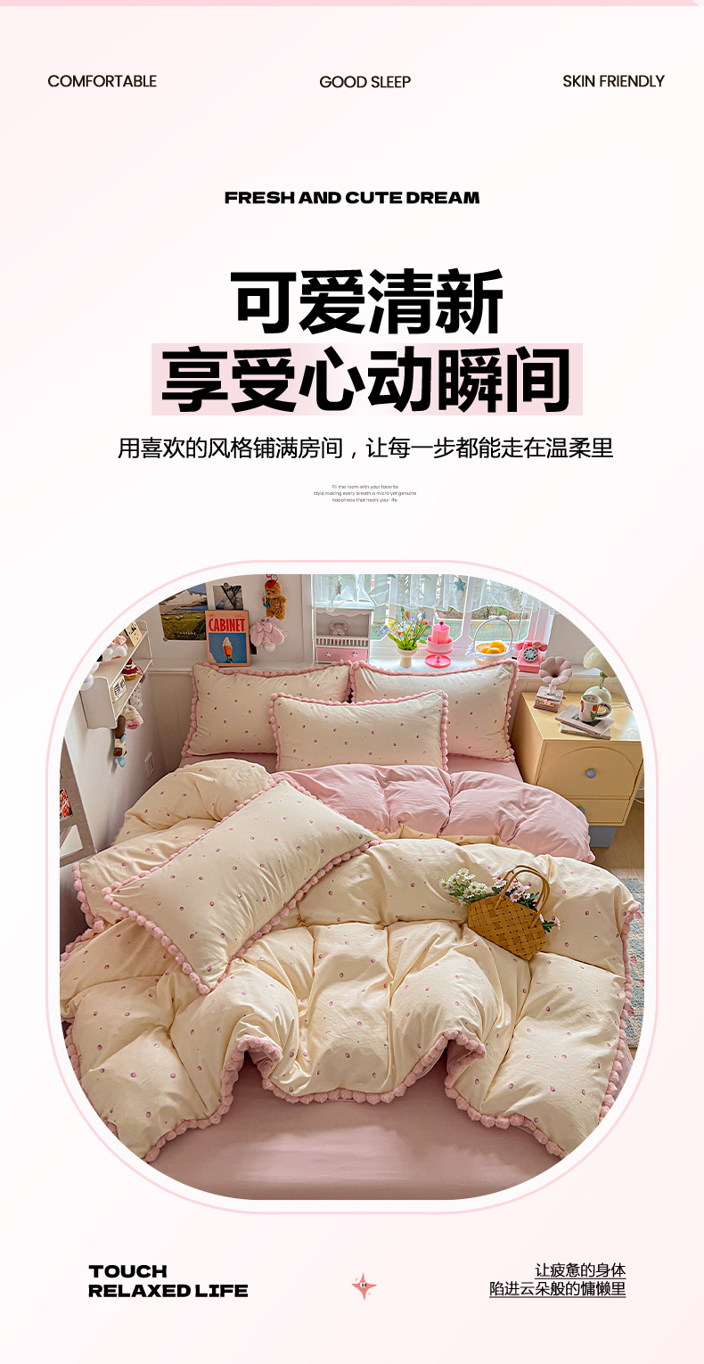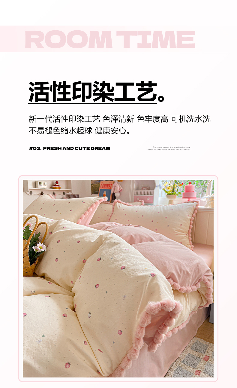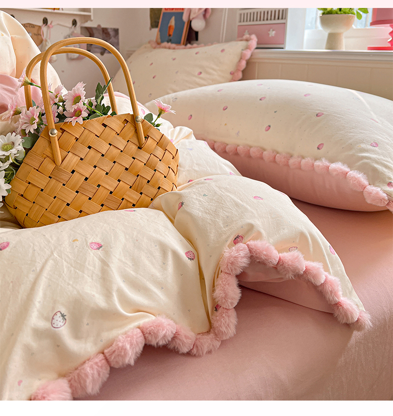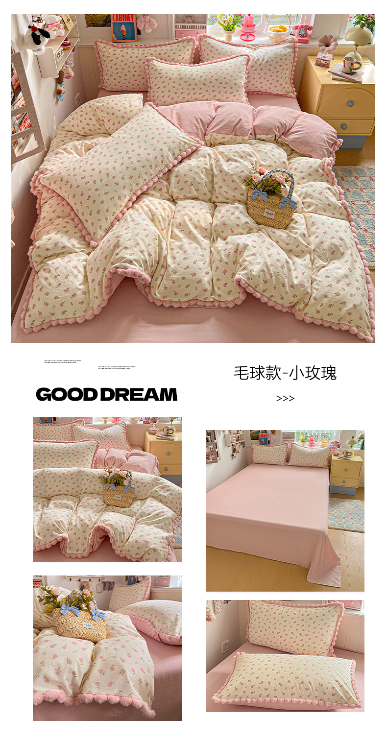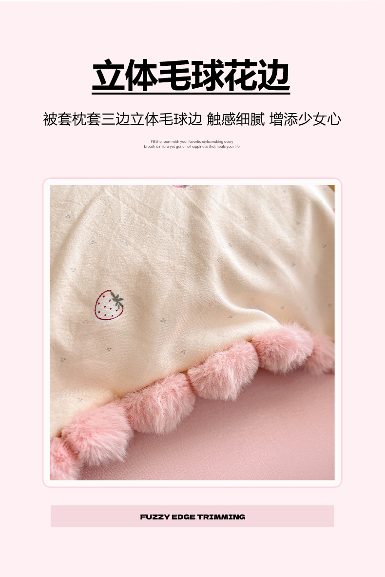 当前位置: 91家纺网 > 商品网购 > 床品套件 > 四件套 > 化纤普通四件套 > 鑫利来家纺 2026新款毛球款四件套古法水洗棉韩式法式花边四件套被套学生床单三件套 毛球款-草莓