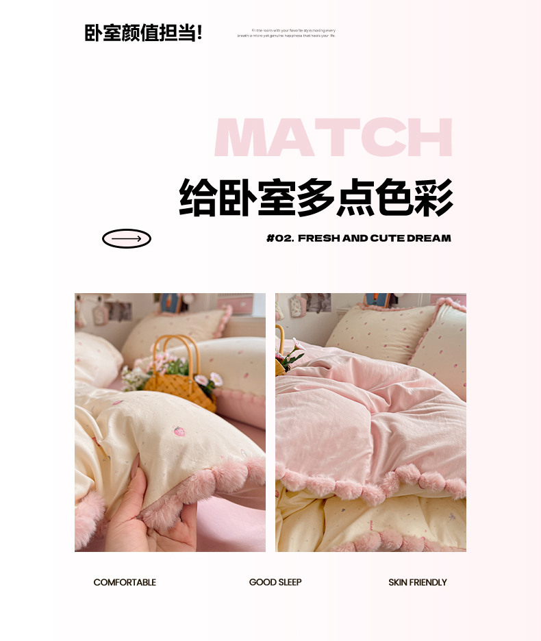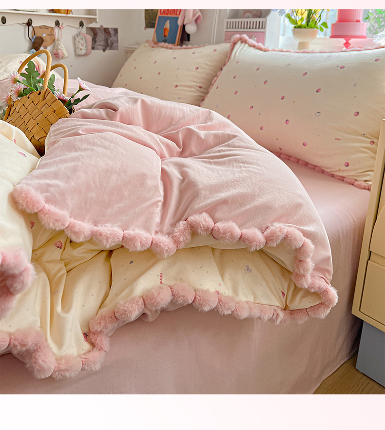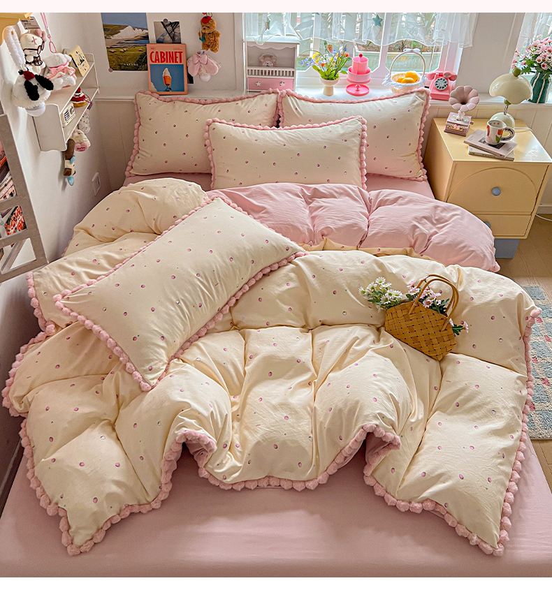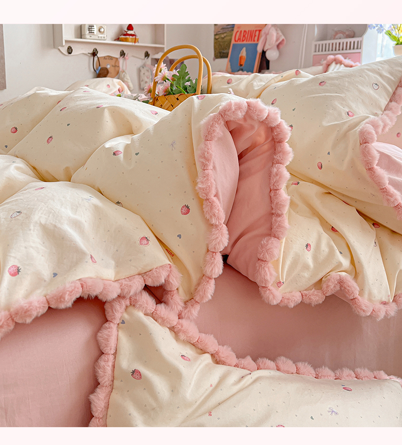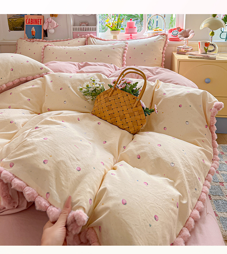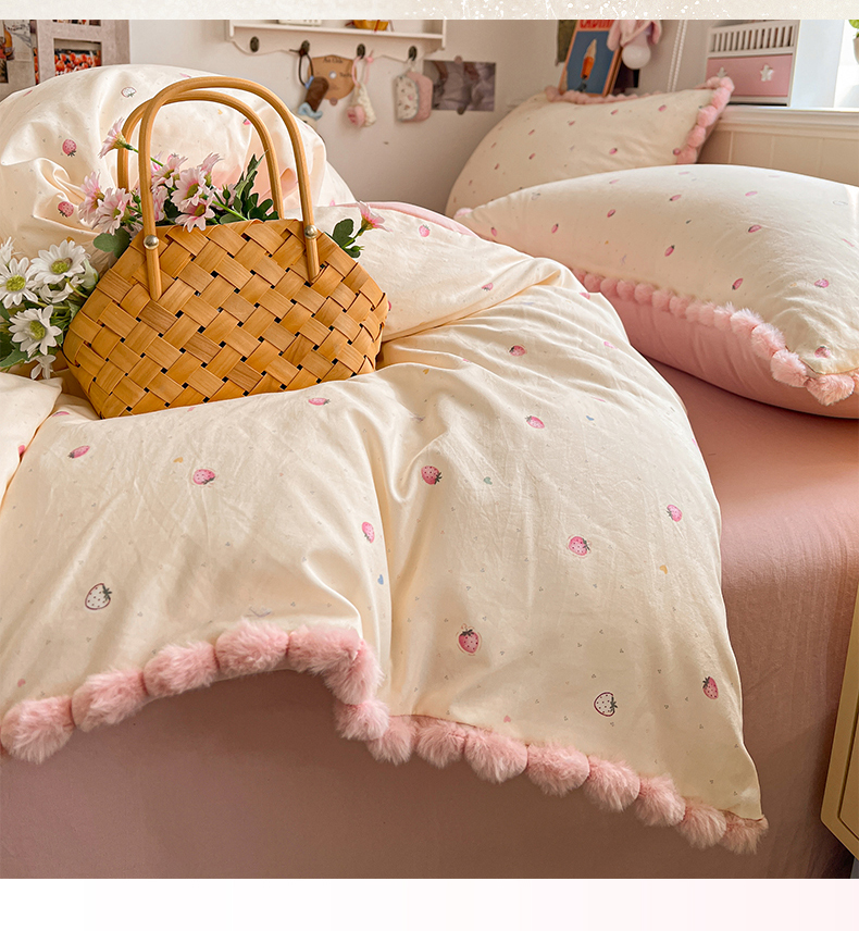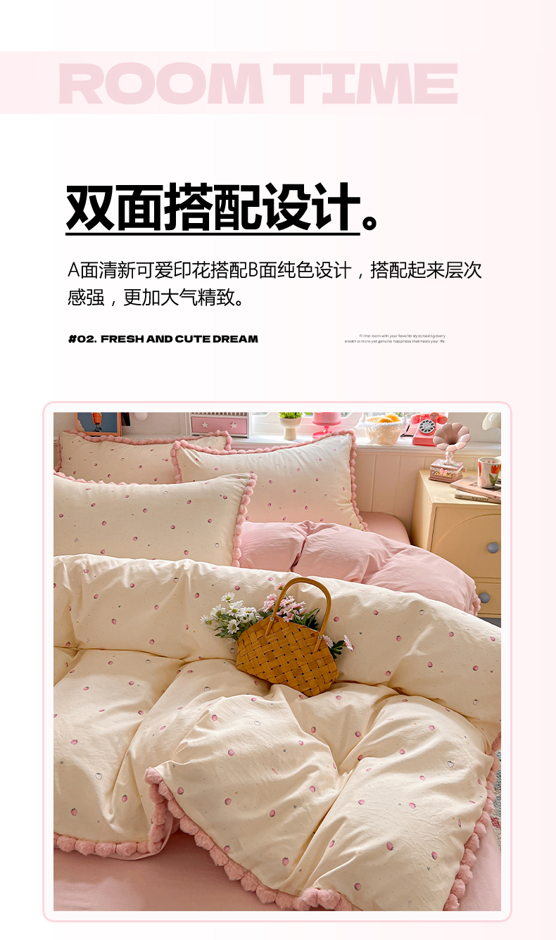 当前位置: 91家纺网 > 商品网购 > 床品套件 > 四件套 > 化纤普通四件套 > 鑫利来家纺 2026新款毛球款四件套古法水洗棉韩式法式花边四件套被套学生床单三件套 毛球款-草莓