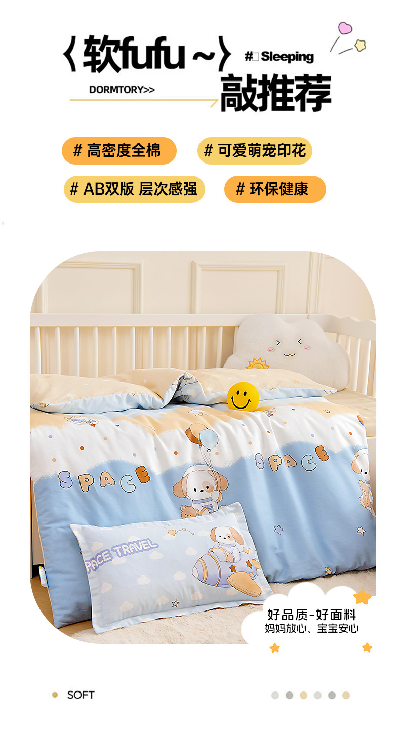 当前位置: 91家纺网 > 商品网购 > 床品套件 > 四件套 > 其它四件套 > 芭伯妮 2026新款全棉AB版幼儿园三件套宝宝午睡被子六件套儿童被套多件套(第一批) 汪汪宇航记