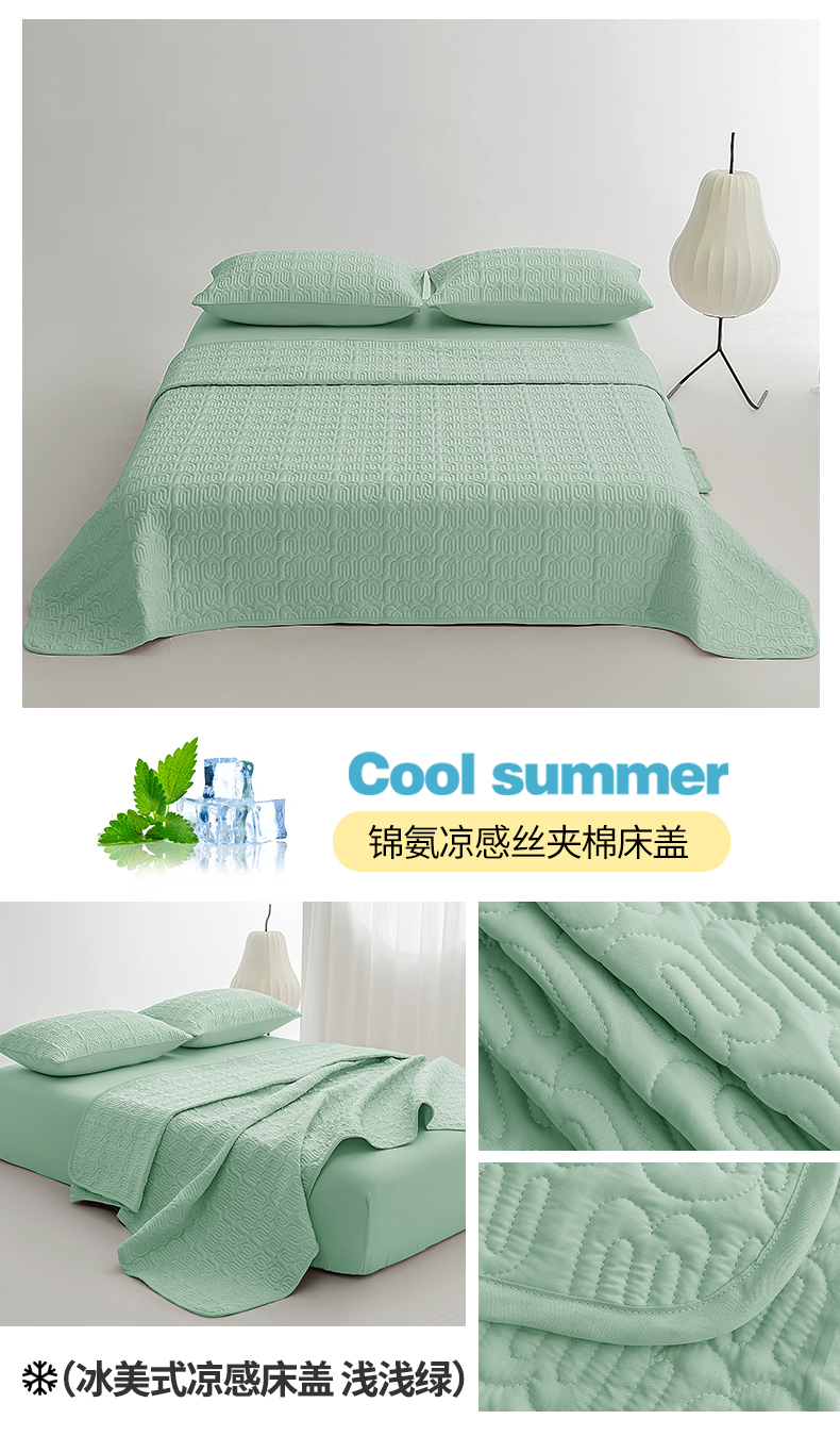 恩和家纺 2026新款锦氨凉感丝夹棉床盖 冰美式凉感床盖 浅浅绿