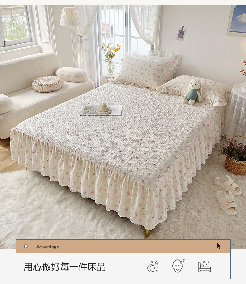 忘忧草 2026新款13372全棉夹棉款床笠式床裙 1屋顶花园