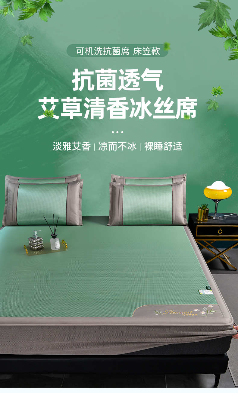 • 91家纺网 家纺一手货源 找家纺 小牛席业 2026新款艾草清香冰丝席(床笠款)凉席藤席冰藤席冰丝席竹席草席空调席乳胶席豆豆席 艾草清香冰丝席(床笠款)-绿色