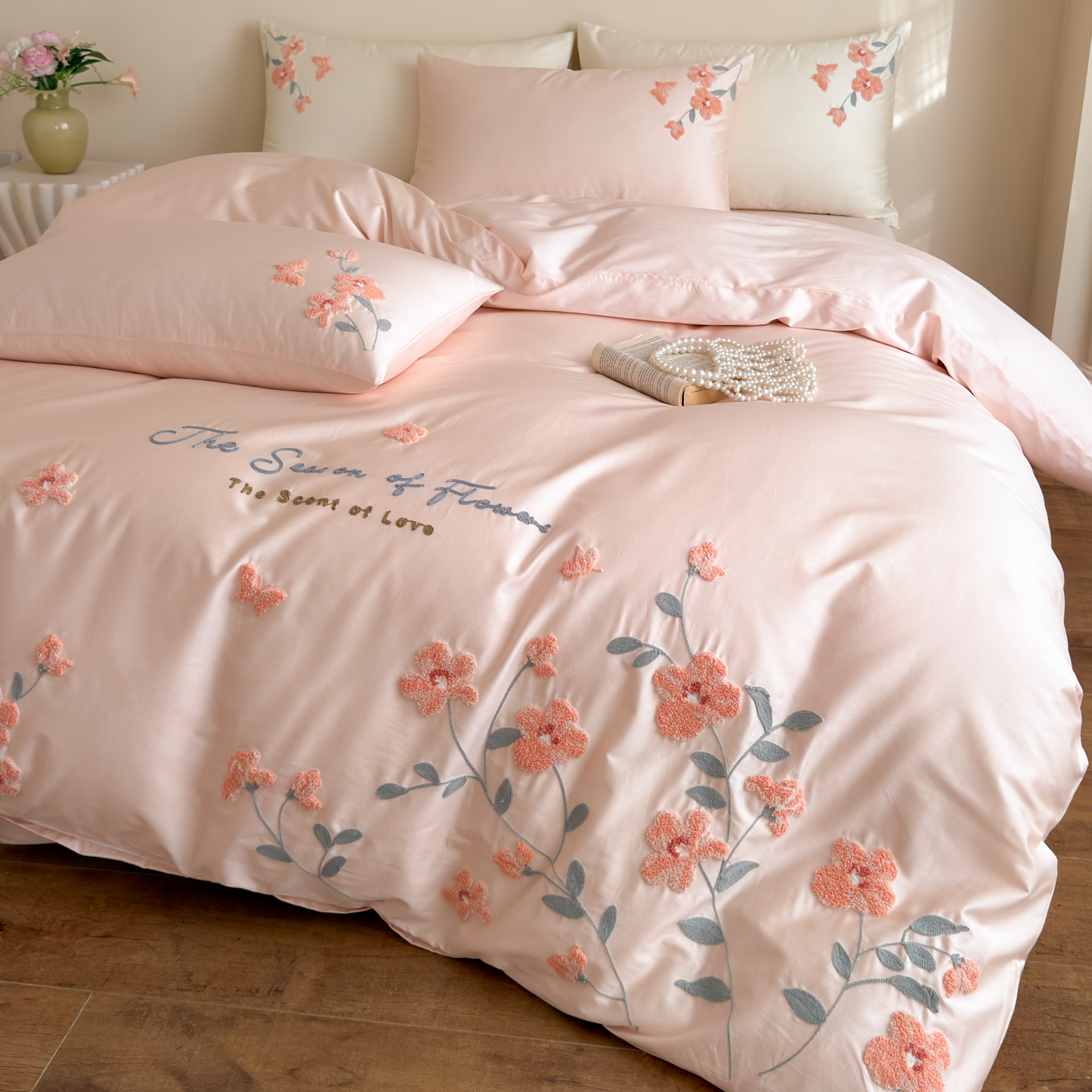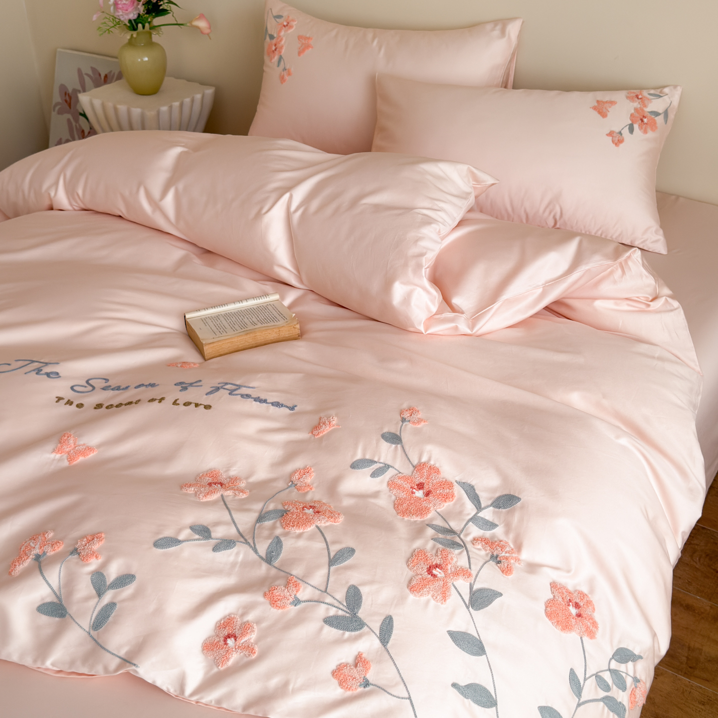 当前位置: 91家纺网 > 商品网购 > 床品套件 > 四件套 > 长绒棉四件套 > 优彩 2026春夏新款A类100支长绒棉毛巾绣四件套系列 满庭芳-冰莓粉