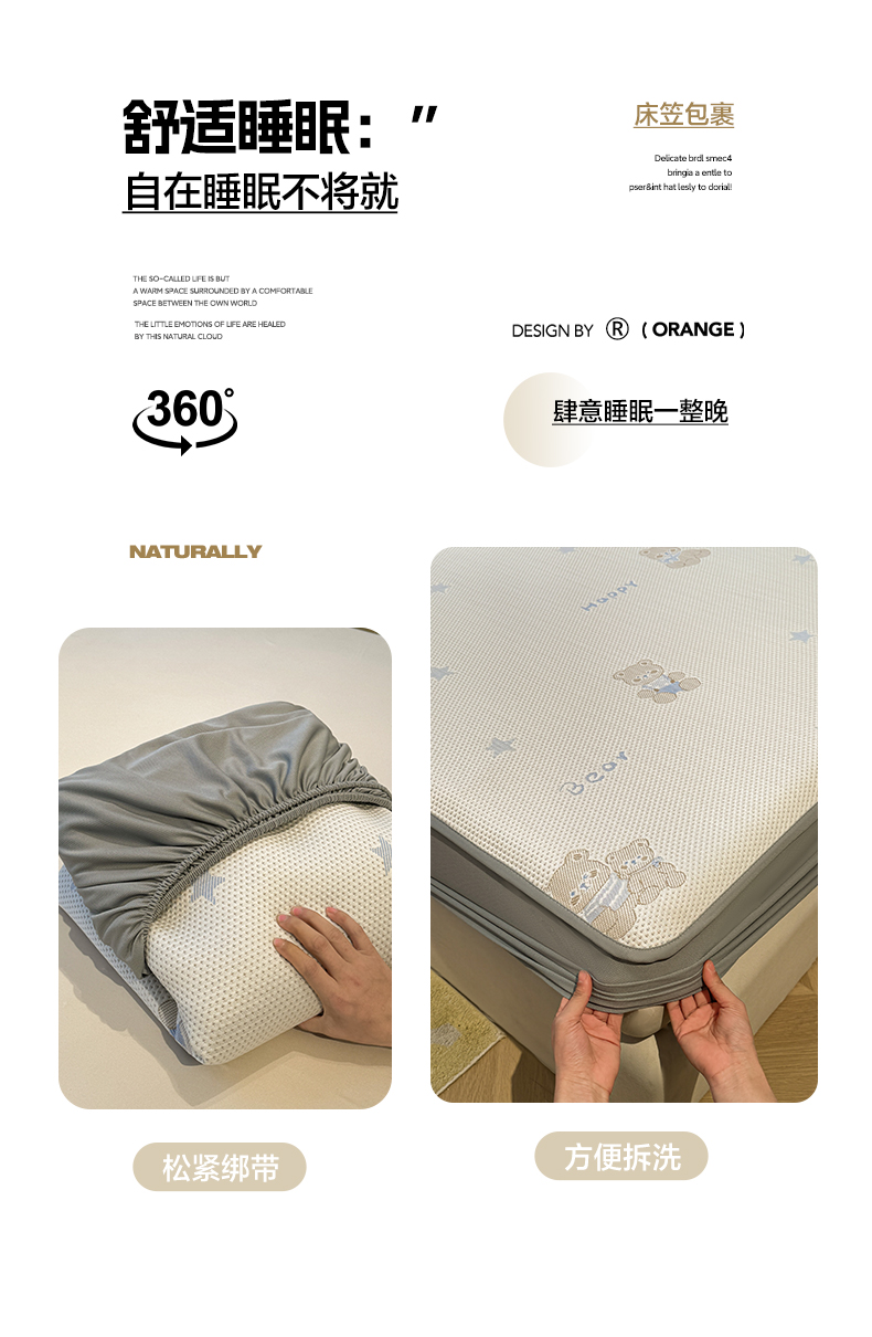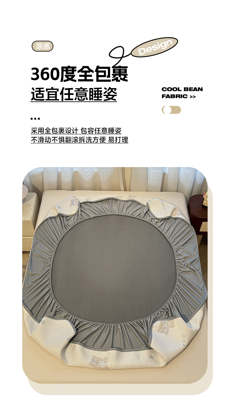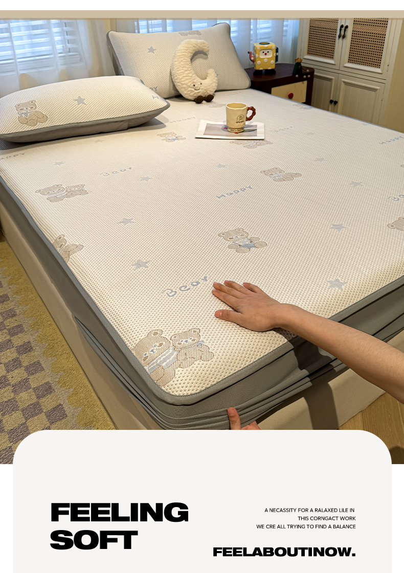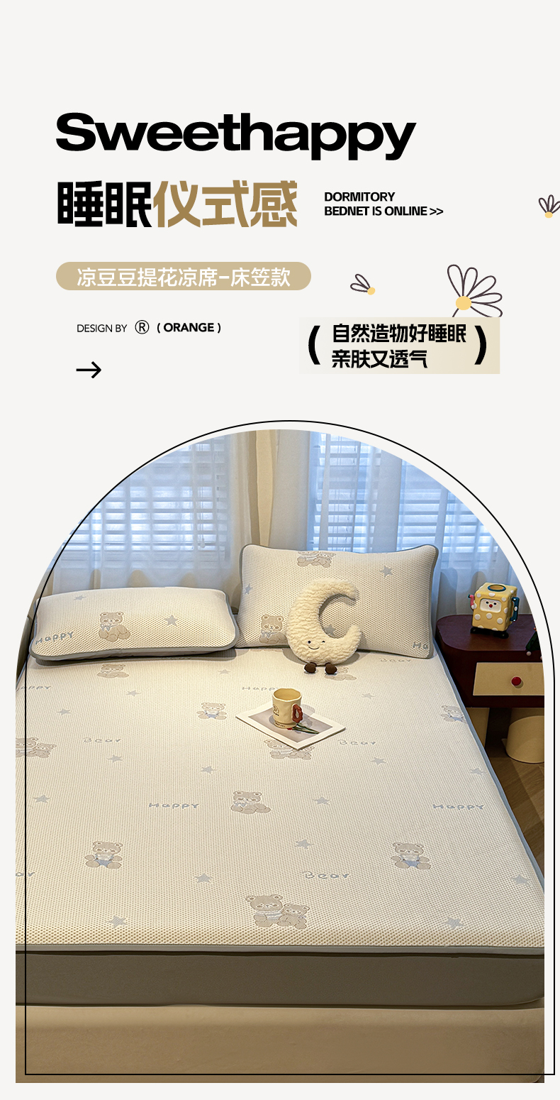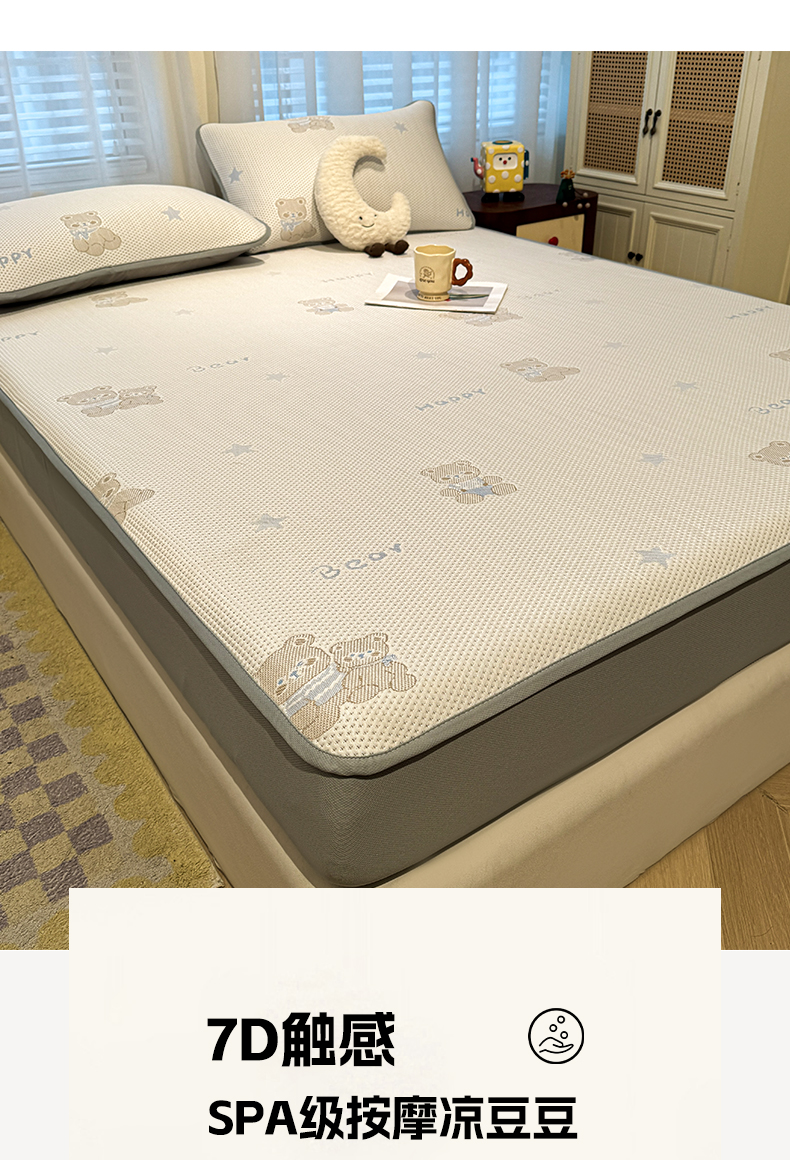 商品名称:凯罗 2026新款卡通实拍小红书爆款凉豆豆绣花凉席床笠可水洗床笠席子 布丁萌萌熊