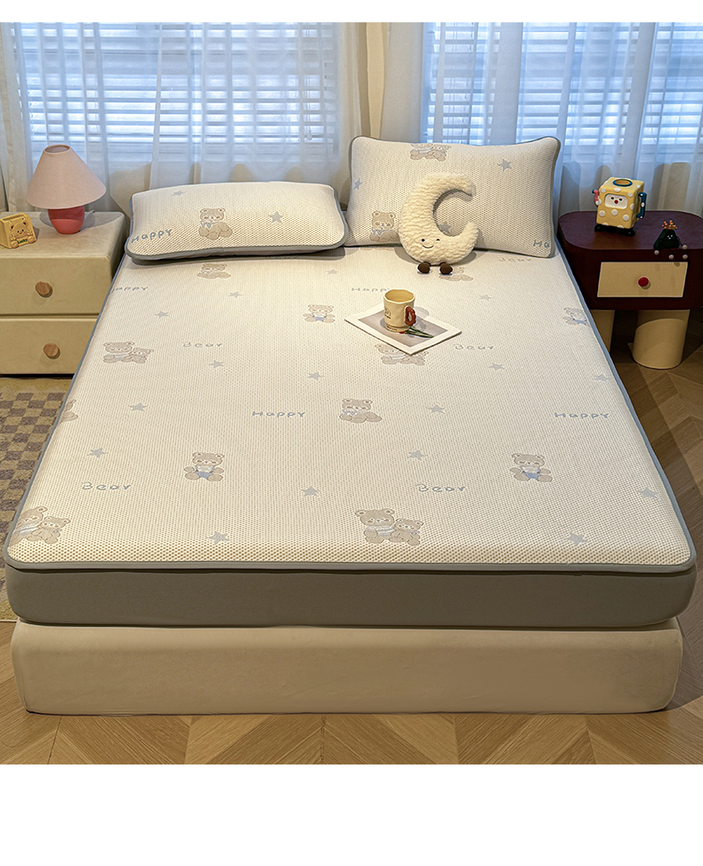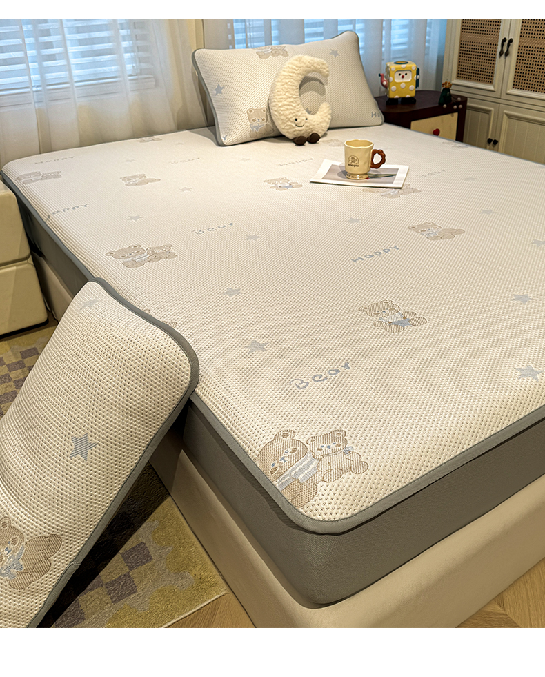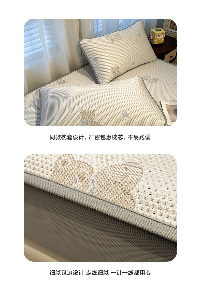 (总)凯罗 2026新款可水洗凉豆豆夏季席子凉席三件套,Hello--熊,爱心小熊--浅粉,敦敦熊--浅粉,敦敦熊--蓝灰,爱心小熊-咖,花儿朵朵--浅粉