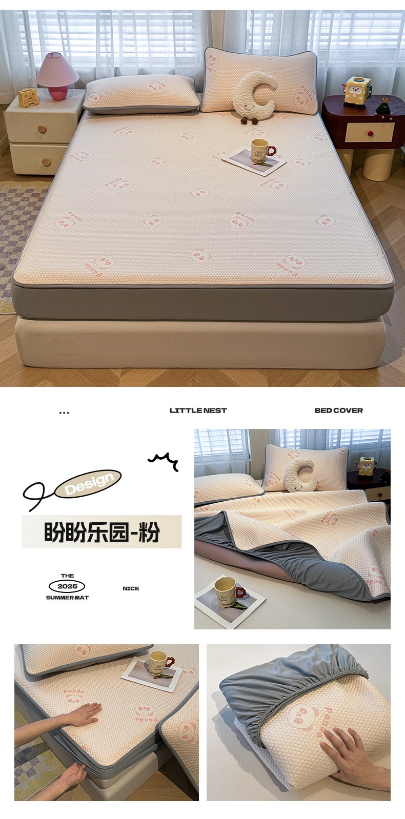 (总)凯罗 2026春夏凉豆豆小红书爆款A类乙纶PE凉豆豆床席款可水洗床席,波点草莓-粉,布丁萌萌熊,小萌狗,小南瓜-桔