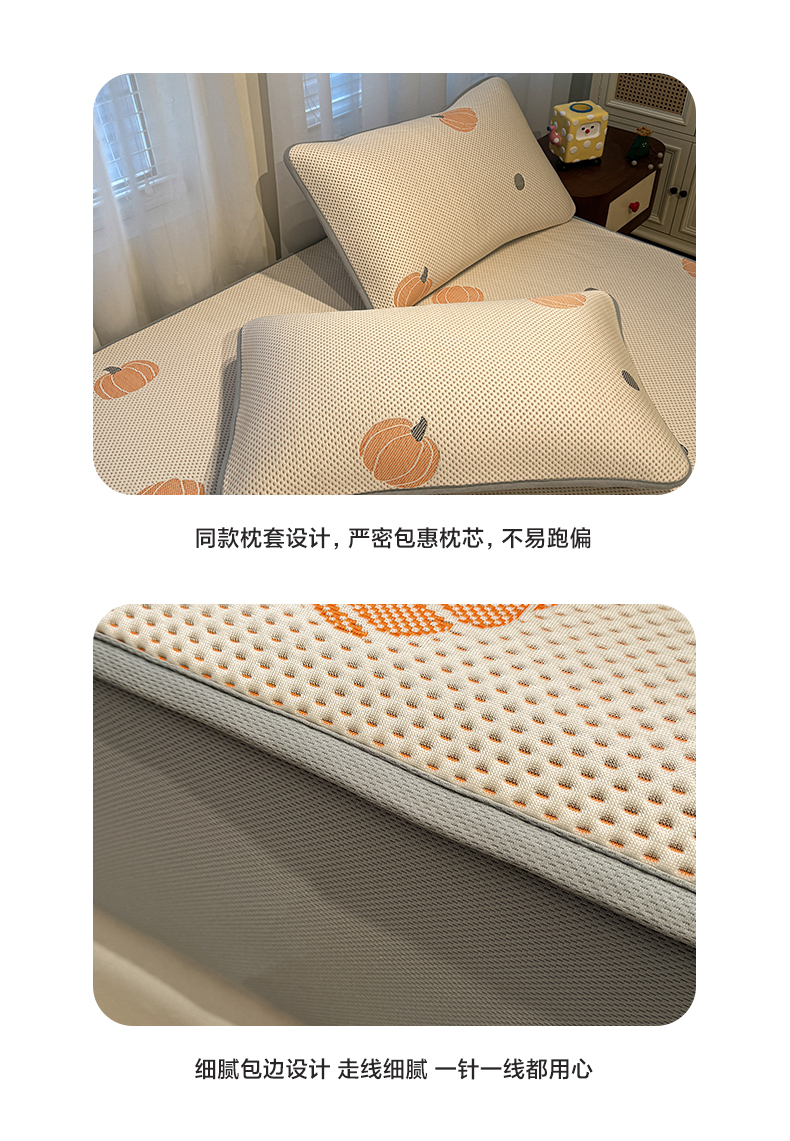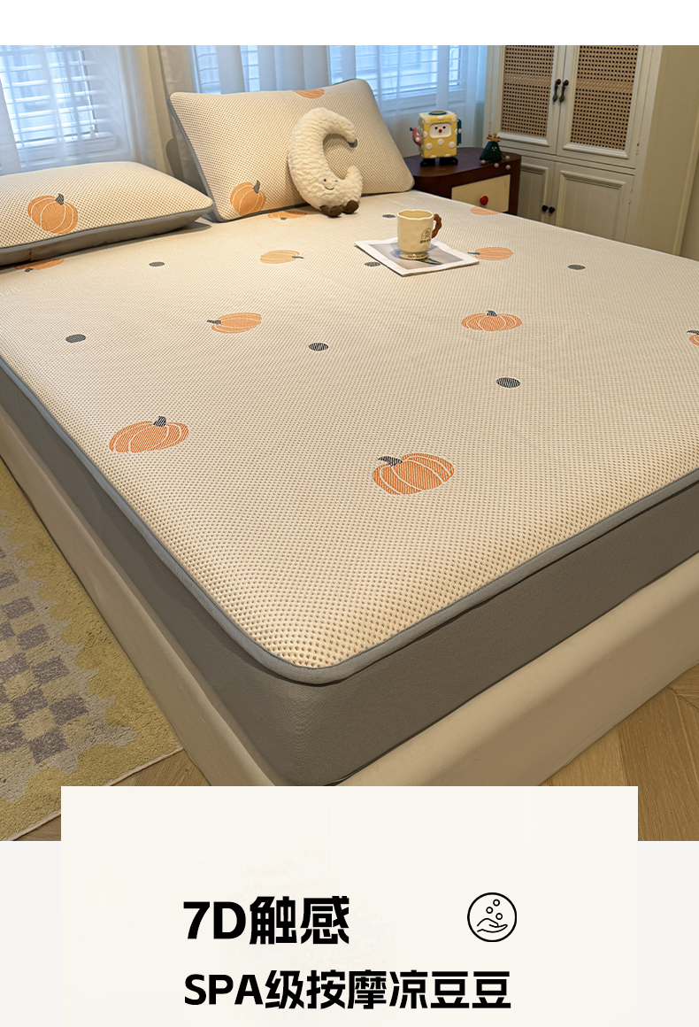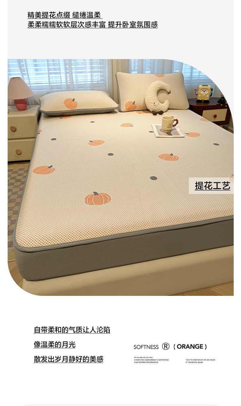 商品名称:凯罗 2026新款卡通实拍小红书爆款凉豆豆绣花凉席床笠可水洗床笠席子 小南瓜-桔