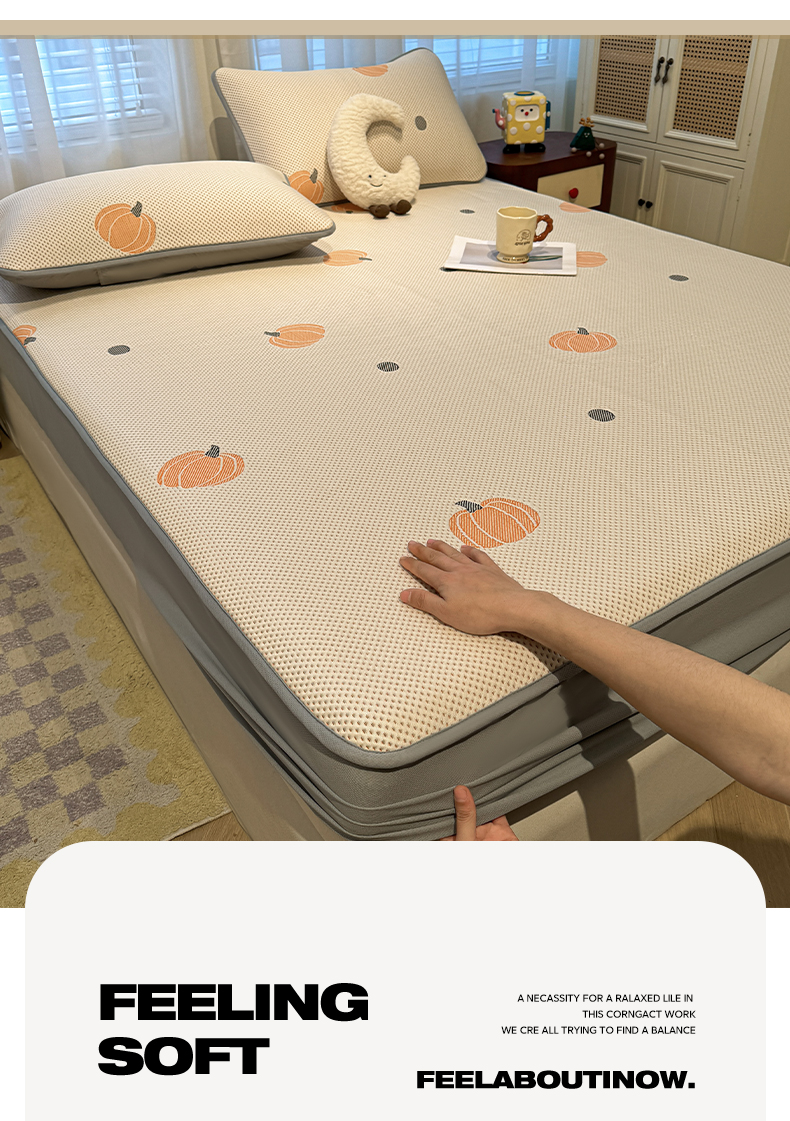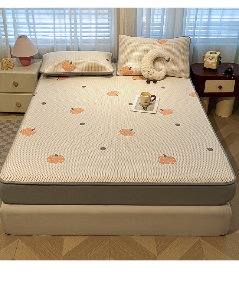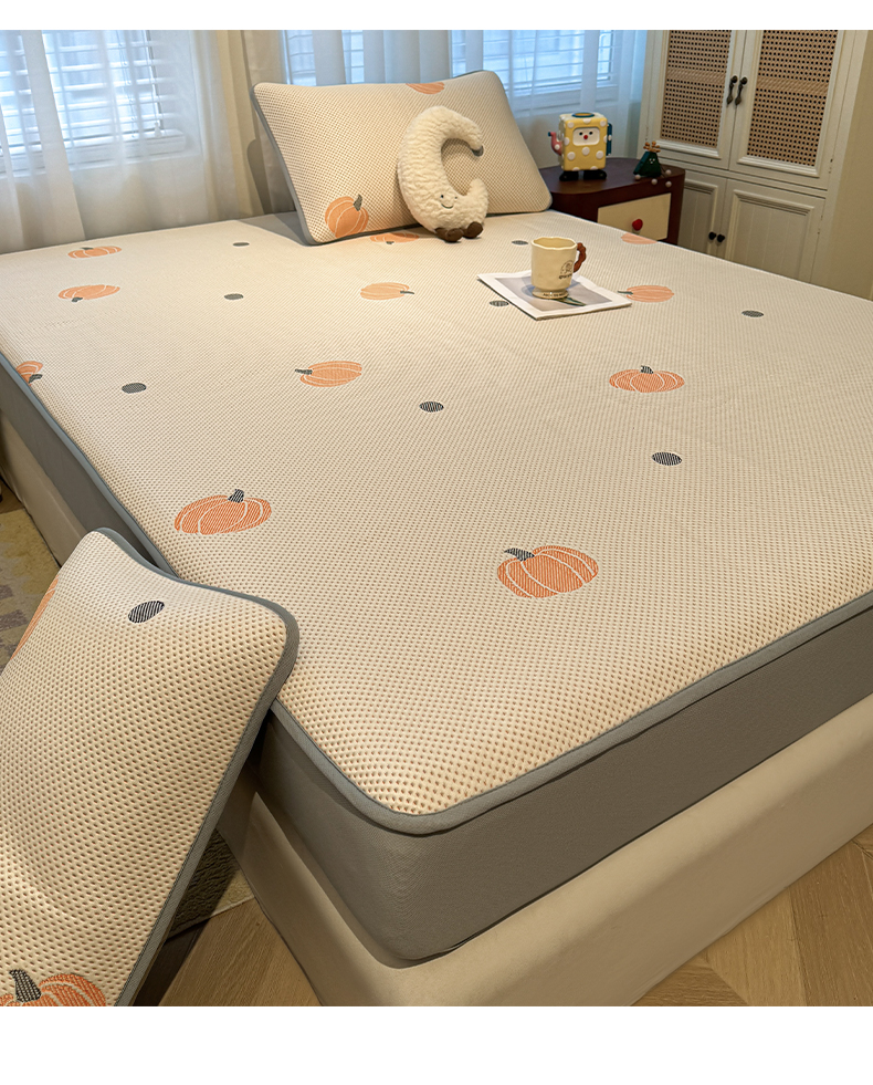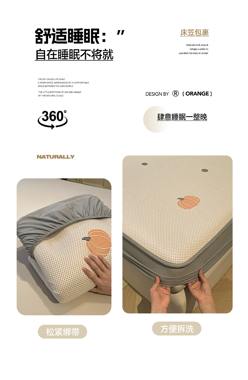 商品名称:凯罗 2026新款卡通实拍小红书爆款凉豆豆绣花凉席床笠可水洗床笠席子 小南瓜-桔