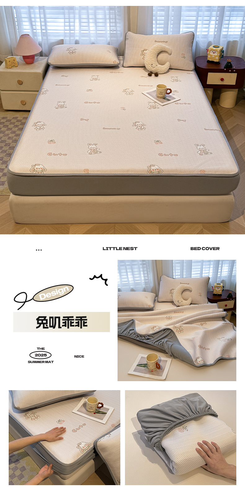 (总)凯罗 2026新款可水洗凉豆豆夏季席子凉席三件套,Hello--熊,爱心小熊--浅粉,敦敦熊--浅粉,敦敦熊--蓝灰,爱心小熊-咖,花儿朵朵--浅粉