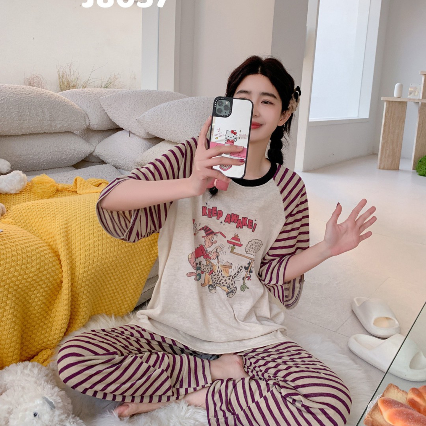 妍景家居生活馆 2026新款午后原野套装 紫色条