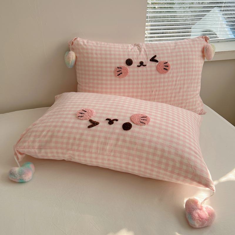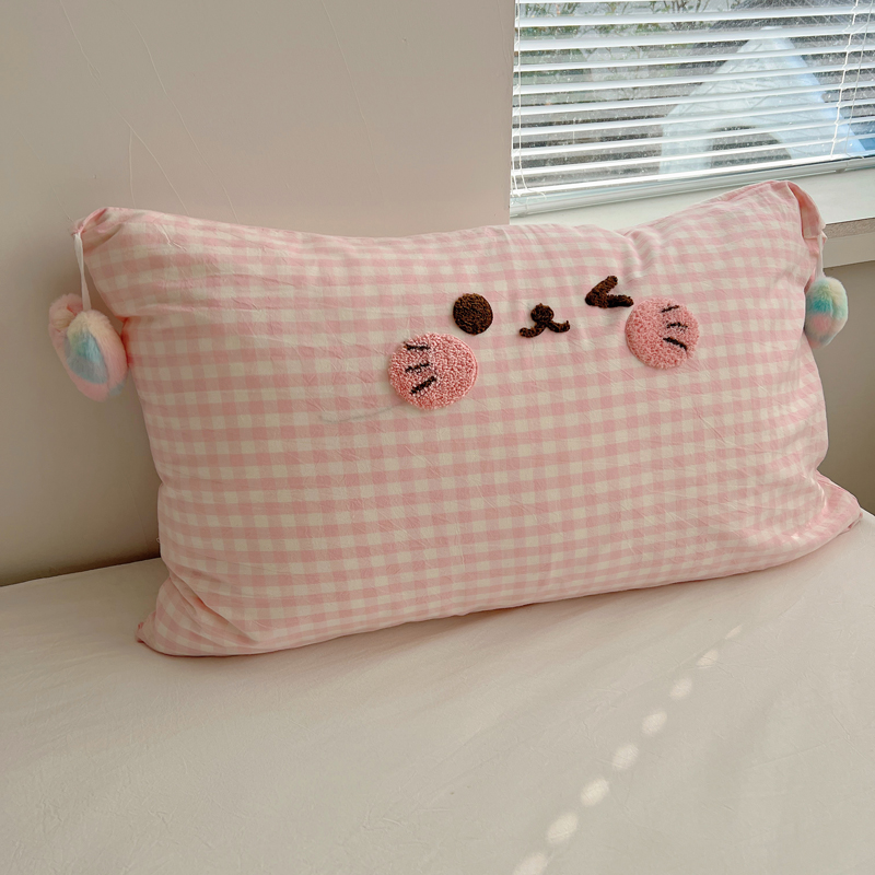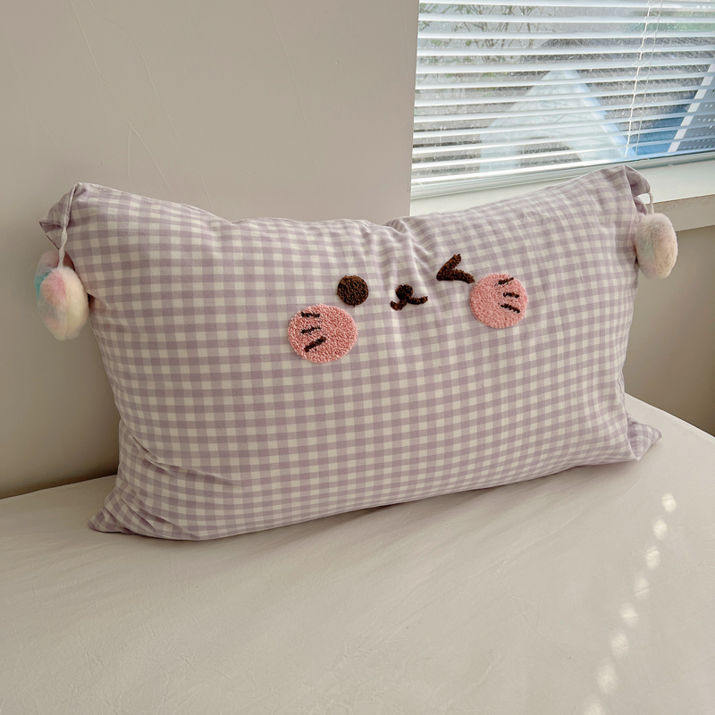 (总)丽涵家纺 2026新款全棉纯棉色织水洗棉单品枕套--爱心兔毛球,笑脸猫咪-粉格,笑脸猫咪-黄格,笑脸猫咪-蓝格,笑脸猫咪-紫格,蝴蝶结-奶黄,甜蜜一天-粉,甜蜜一天-蓝,甜蜜一天-奶黄