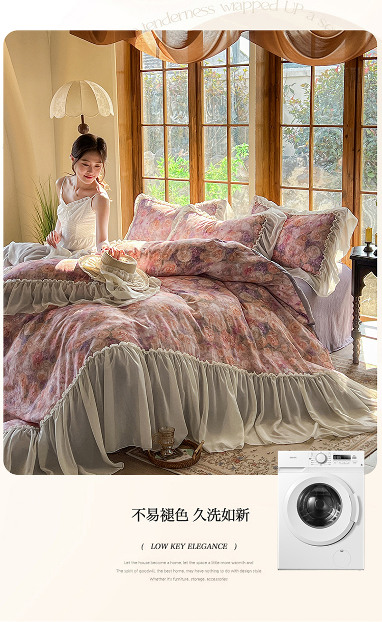 (总)【苏东来】2026高端韩版法式花边纯棉全棉双层纱四件套复古赫本公主风浪漫荷叶边花卉纯棉四件套被套床单,青黛,芳菲,花隐,拾光里里,木槿,蔷薇恋人,虞美人,疏影,暮色玫瑰,爱丽丝