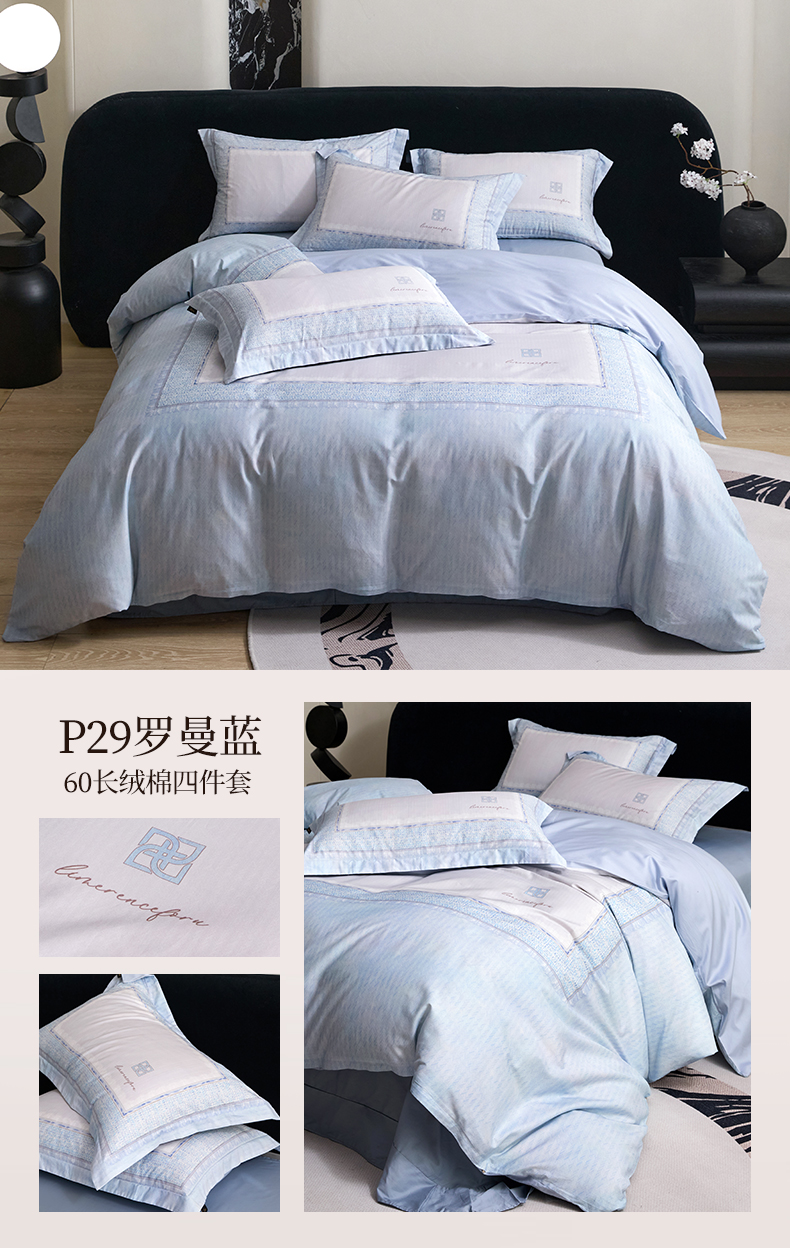 商品名称:梧桐树 2026新款60长绒棉平网大版系列四件套 P29罗曼蓝