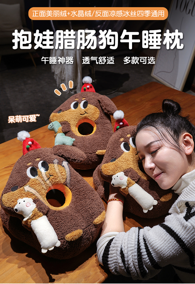商品名称:(总)仟亿莱 2026新款抱娃腊肠狗双面午睡枕 枕头枕芯