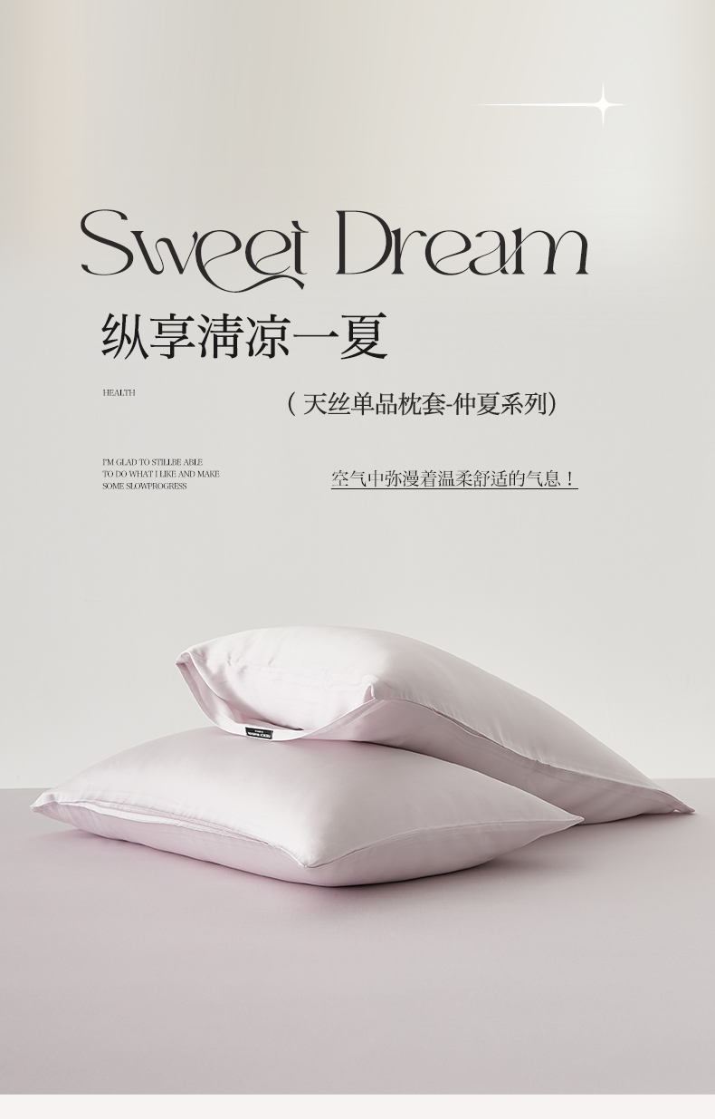EH家居 2026春夏新款简约纯色天丝单品枕套(AA版)(床单床笠同款) 月见粉