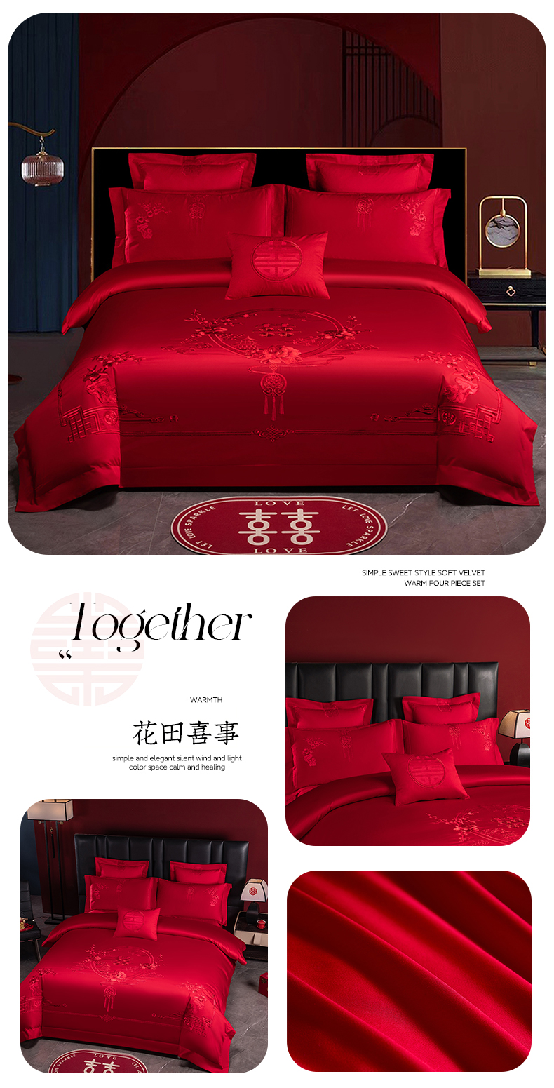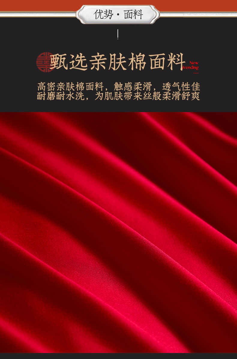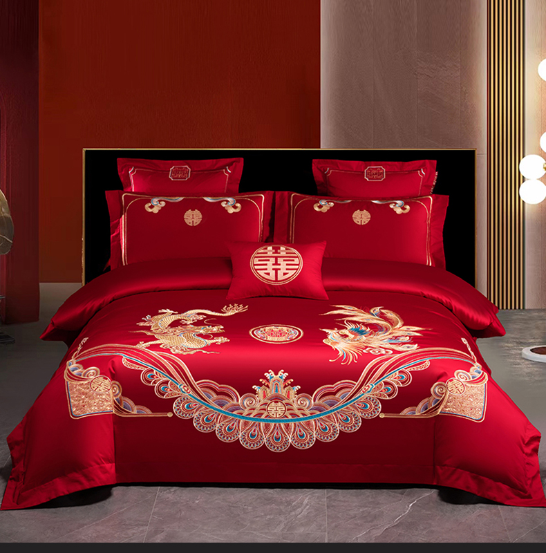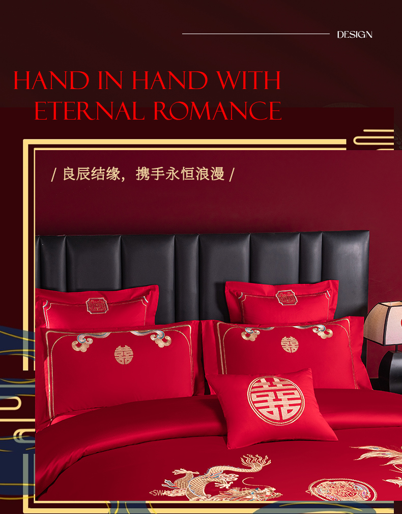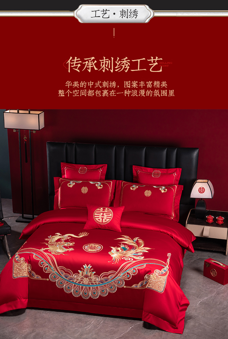 当前位置: 91家纺网 > 商品网购 > 床品套件 > 四件套 > 婚庆四件套 > 博之洋婚庆 2026新款新中式亲肤棉婚庆大红刺绣系列四件套 龙凤九霄